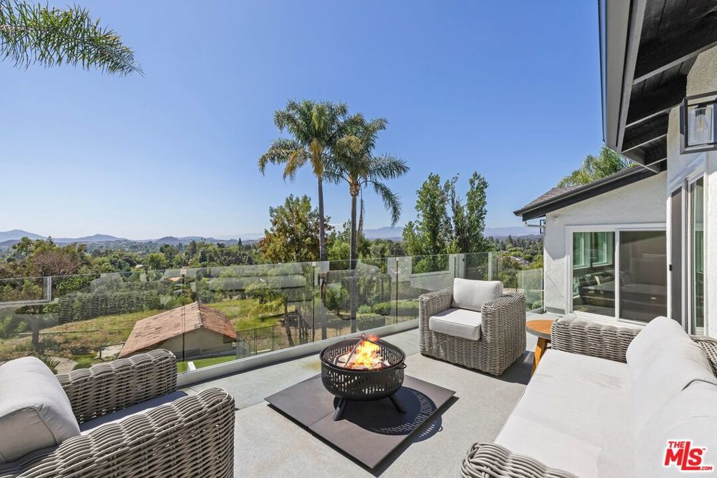 Privately positioned at the end of a long driveway on a quiet cul-de-sac, this fully reimagined 1.23 acre estate has undergone a comprehensive down to the stud renovation, offering the quality and feel of a brand new home. A dramatic entry opens to expansive living spaces highlighted by soaring ceilings, vaulted wood details, floor-to-ceiling windows, and sweeping views. The formal dining room and redesigned chef's kitchen featuring a large center island, built-in refrigeration, and breakfast area flow seamlessly to multiple balconies, creating effortless indoor-outdoor living. The private bedroom wing includes two secondary bedrooms and a stunning primary suite retreat with vaulted ceilings, sitting area, private balcony, walk-in closet, and spa-like bath. The lower level offers three additional bedrooms, two full baths with exterior access, office or gym space, generous storage, and a large bonus room with fireplace opening to a covered patio. Outdoors, the grounds have been transformed into a resort-style setting with a brand-new jacuzzi and oversized salt water pool that was designed to play volleyball. Below that you have expansive flat land with potential for, ADU and any sport court that you desire. Equestrian amenities include a potential barn and arena, all surrounded by scenic views. Additional highlights include a three-car garage, extended driveway with possible RV parking, exceptional privacy, no HOAs, a prime location near main water supply for Thousand Oak, top-rated schools, shopping, and the Civic Arts Plaza.