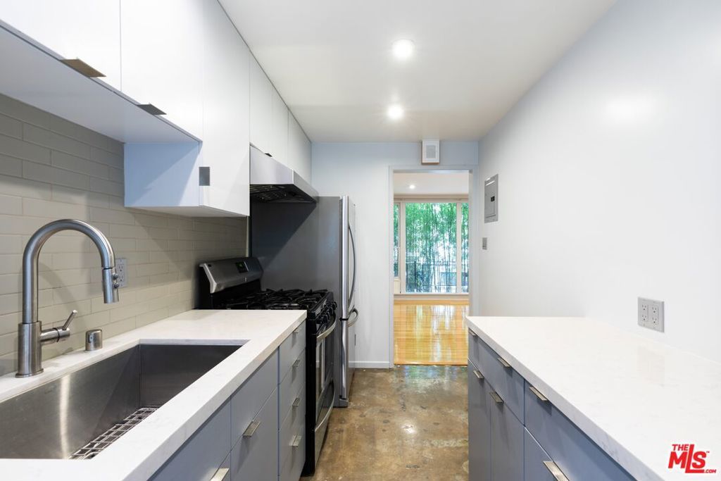 Perched just above the pulse of the Sunset Strip, on a quiet hillside street moments from the iconic Whisky A Go Go...this Whimsical WeHo Oasis feels like a hidden retreat in the sky! Ascend the staircase from your designated covered, open garage space, and leave the noise behind. Inside the unit, sunlight pours through dramatic floor-to-ceiling windows, illuminating warm hardwood floors and clean recessed lighting throughout. The living space flows effortlessly and opens to a balcony that stretches the entire length of the apartment. Your own elevated perch for morning coffee rituals, golden hour wine, or simply watching the city hum below. The layout is generous and flexible, giving you room to create a living area, work-from-home nook, or dreamy dining setup-- depending on your vibe. Storage lovers, rejoice! The bedroom features an entire wall of built-in cabinet closet storage with sleek, streamlined, and surprisingly spacious. The kitchen is sparkling and thoughtfully updated, with ample cabinetry, a dishwasher, a stainless steel refrigerator, and a beautiful gas-range stove that makes staying in feel like a choice, not a compromise. The bathroom is modern and quietly luxurious, featuring polished concrete floors, a large glass-enclosed shower, and (YES!) your own private steam unit. Spa energy, anytime. This intimate building has a friendly, community feel, with convenient on-site coin-op laundry tucked in the back. And then there's the location: this gem places you right between the Sunset Strip and Norma Triangle. Cafes, cocktail lounges, yoga studios, late-night bites, iconic music venues... all just moments from your door. Easy access to Santa Monica Blvd and the 101 makes getting anywhere effortless, but you may never want to leave the neighborhood. This one has that rare WeHo magic: elevated, peaceful, and just a little bit rock-and-roll.