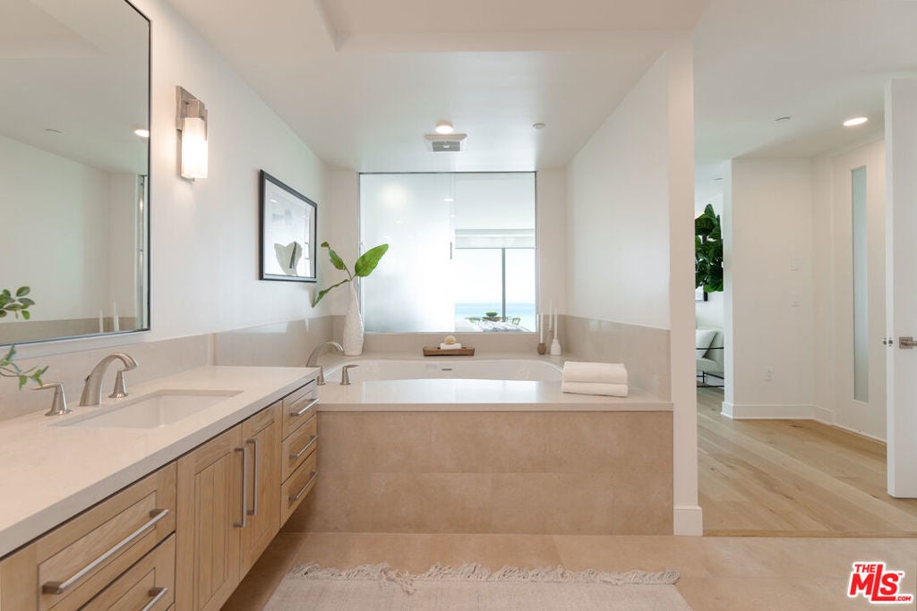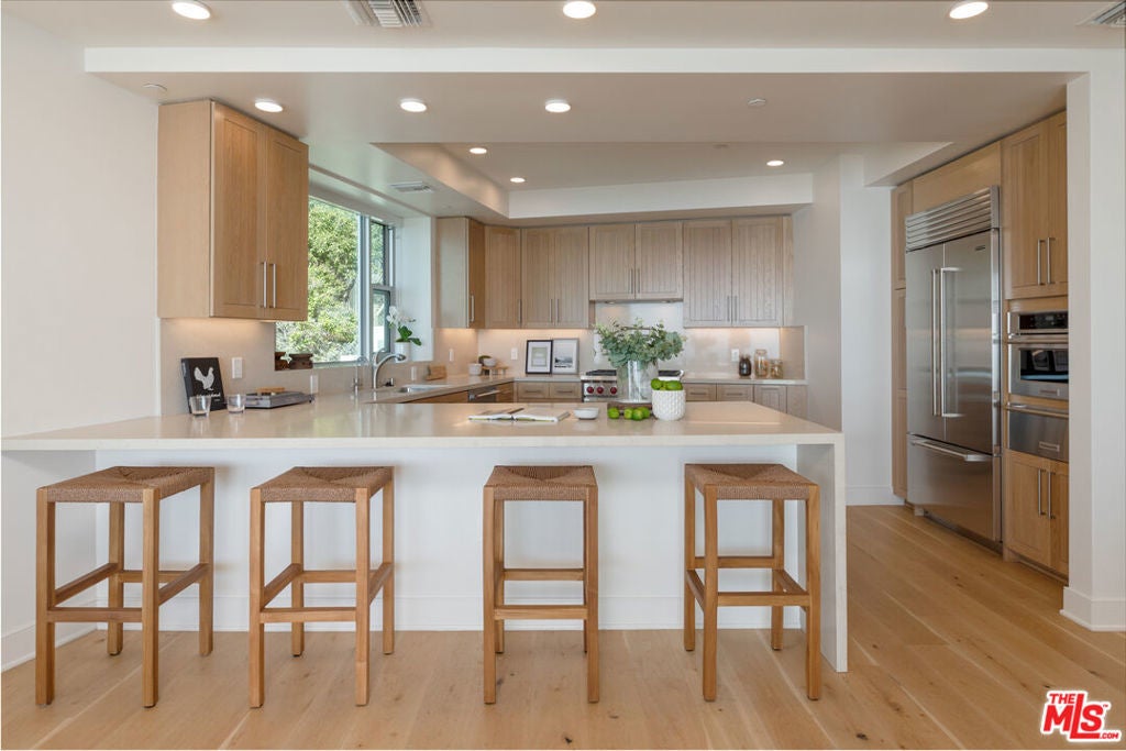 In Pacific Palisades, a brand new level of luxury and exclusivity awaits at Sea View Villas. This gorgeous contemporary building can be seen from miles away on Pacific Coast Highway. With only 27 3-bedroom residences for lease, Sea View Villas is a one of a kind all inclusive building with ocean views and world-class amenities. This 3 bedroom, 3 bath corner unit home spans 2900+ SF with breathtaking panoramic Pacific and coastal views of the Santa Monica Pier, Palos Verdes, and Catalina Island. The open-concept floor plan with high ceilings leads to an expansive view deck with a built-in Lynx BBQ perfect for entertaining and watching sunsets. Designed with the finest finishes, the home includes a chef's kitchen with stainless steel appliances (including Wolf range and SubZero refrigerator), white oak cabinetry and travertine countertops. Other highlights: Plank white oak floors, ensuite bathrooms clad in travertine, large great room with fireplace, ocean view master with spa bath, dressing room, walk-in closets with custom built-ins, laundry room, and a private 3-car garage. Sea View Villas amenities include full-service concierge, pool and spa, 24 hour on-site health club, billiard room, conference room, resident lounge, and snack room and ALL utilities included in rent. Electicity, gas, water, trash, cable, internet, we will cover it all making it easy living for you! Security gated and guarded in one of the best locations in Los Angeles. Sea View Villas is a one of kind building on the West side. This unit is furnished.