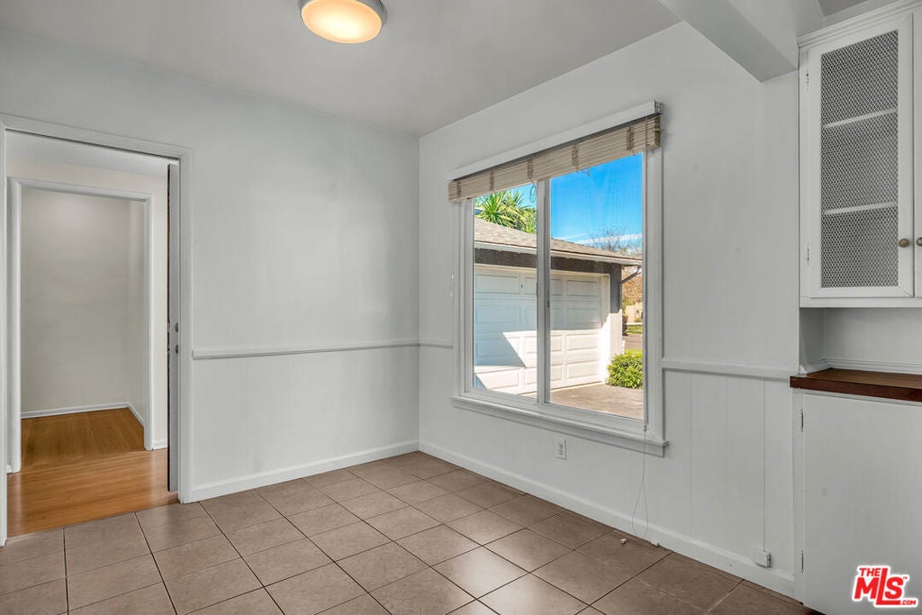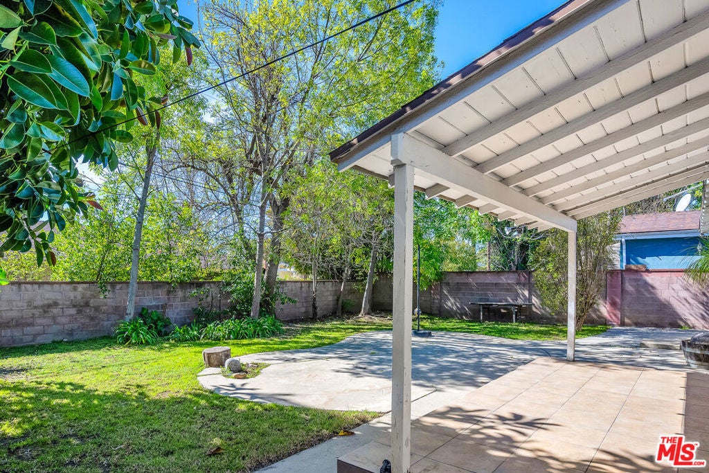 Charming single-level residence nestled in the heart of Valley Glen. Light-filled interiors showcase hardwood floors throughout, with an inviting living and dining area centered around a wood-burning fireplace and expansive sliding glass doors that open to a covered patio and generous backyard ideal for indoor-outdoor living. The cheerful kitchen preserves its Mid-Century character with an original Western Holly oven, yellow tile accents, and distinctive period cabinetry, complemented by modern conveniences including a stainless steel refrigerator, dishwasher, five-burner gas cooktop, and double farmhouse sink. Just off the kitchen, a delightful breakfast nook with a picture window offers the perfect spot for morning coffee. Public records reflect two bedrooms; however, an additional third bedroom or office with closet is located just off the living room behind double doors, offering flexible living options. Down the hallway are the secondary bedroom and a full bath, while the primary suite features an ensuite bathroom and dual closets. Additional amenities include central air and heat, ceiling fans in all three bedrooms and above the dining area for added comfort and energy efficiency, a two-car garage, and side-by-side washer and dryer with laundry sink.