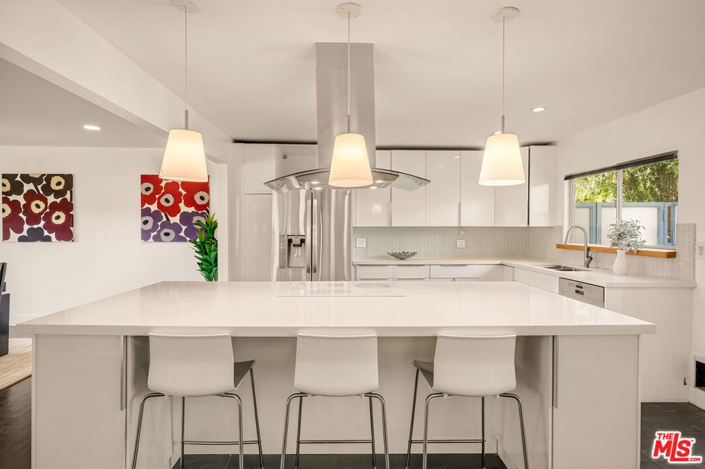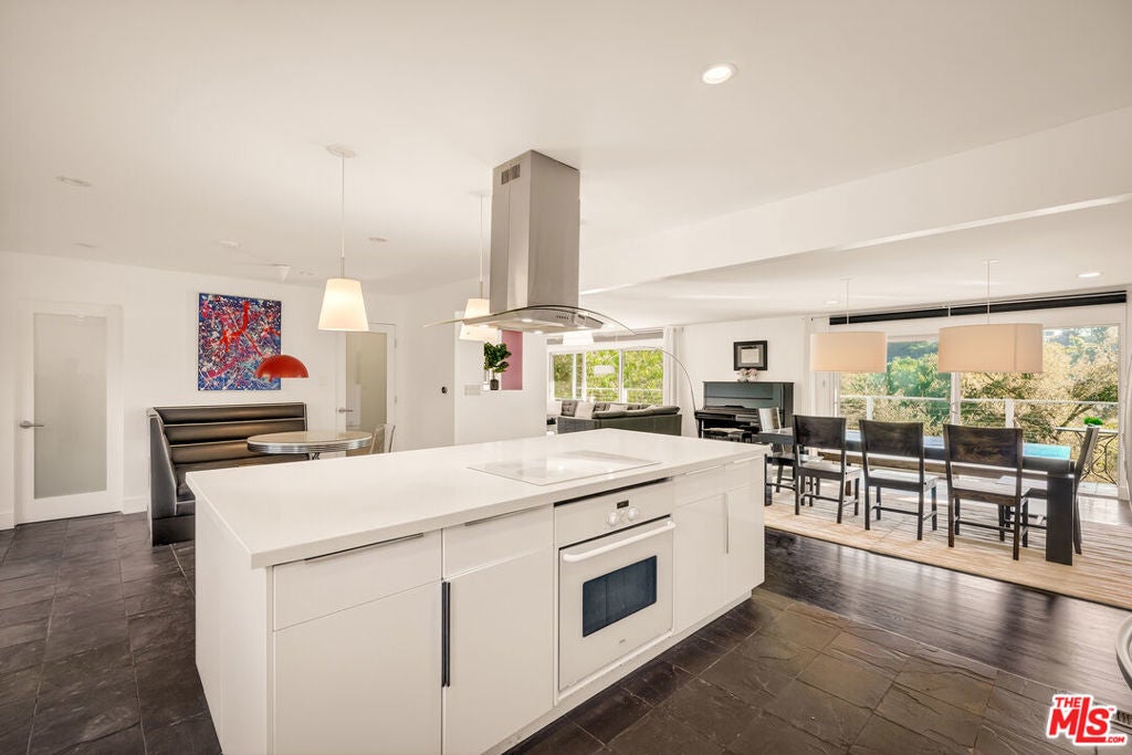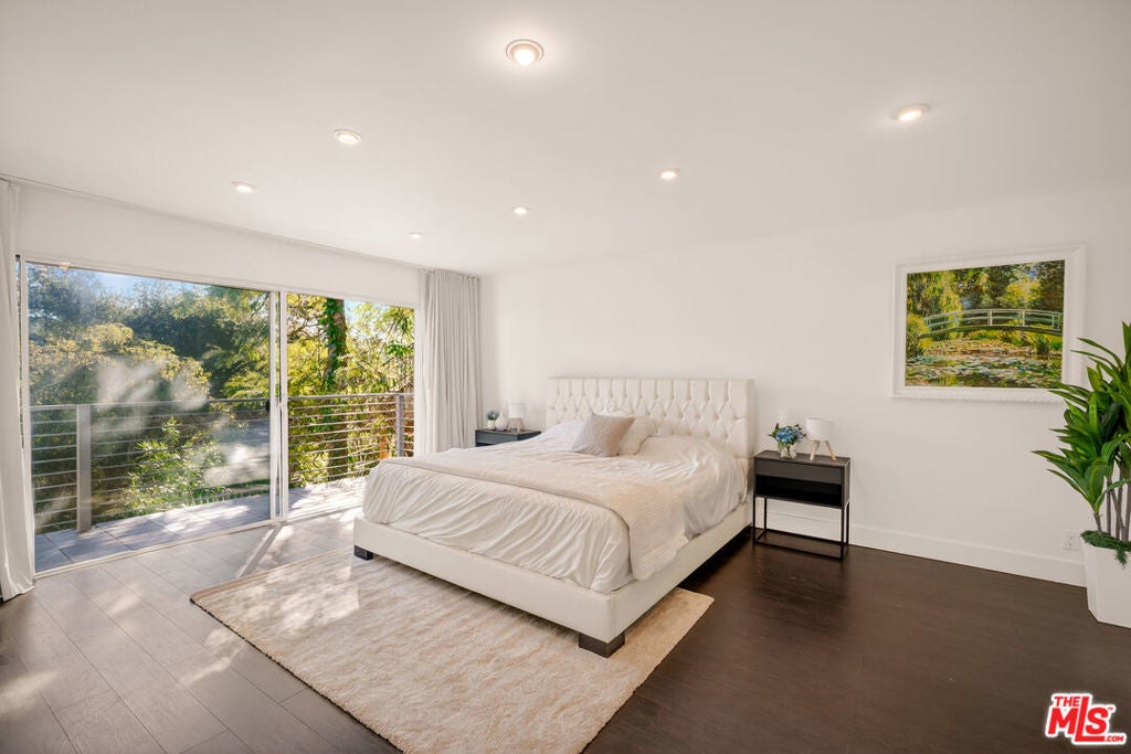Perched on a quiet cul-de-sac, this serene three-story contemporary residence spans approximately 3,544 square feet and offers 6 bedrooms and 6.5bathrooms. Thoughtfully designed and filled with natural light, the expansive open-concept living and dining areas flow seamlessly into a sleek eat-in kitchen highlighted by an oversized center island. Walls of glass and sliding doors frame scenic vistas and open to a full-length balcony and a spacious, sun-drenched patio, creating an effortless indoor-outdoor lifestyle. The primary suite serves as a private retreat, featuring its own balcony, a soaking tub, separate shower, dual vanities, and an expansive walk-in closet. All bedrooms are located on the lower levels, most with their own en-suite bathroom, and most enjoy tranquil views. One bedroom and bathroom have been partitioned into a separate guest suite complete with its own kitchen, laundry, and private entrance, offering exceptional flexibility for visitors, extended family, or rental income. Additional highlights include an attached oversized two-car garage and a prime location with convenient access to Beverly Hills, the Valley, Coldwater Canyon, Mulholland Drive, and the City, offering the perfect balance of privacy, views, and connectivity.
