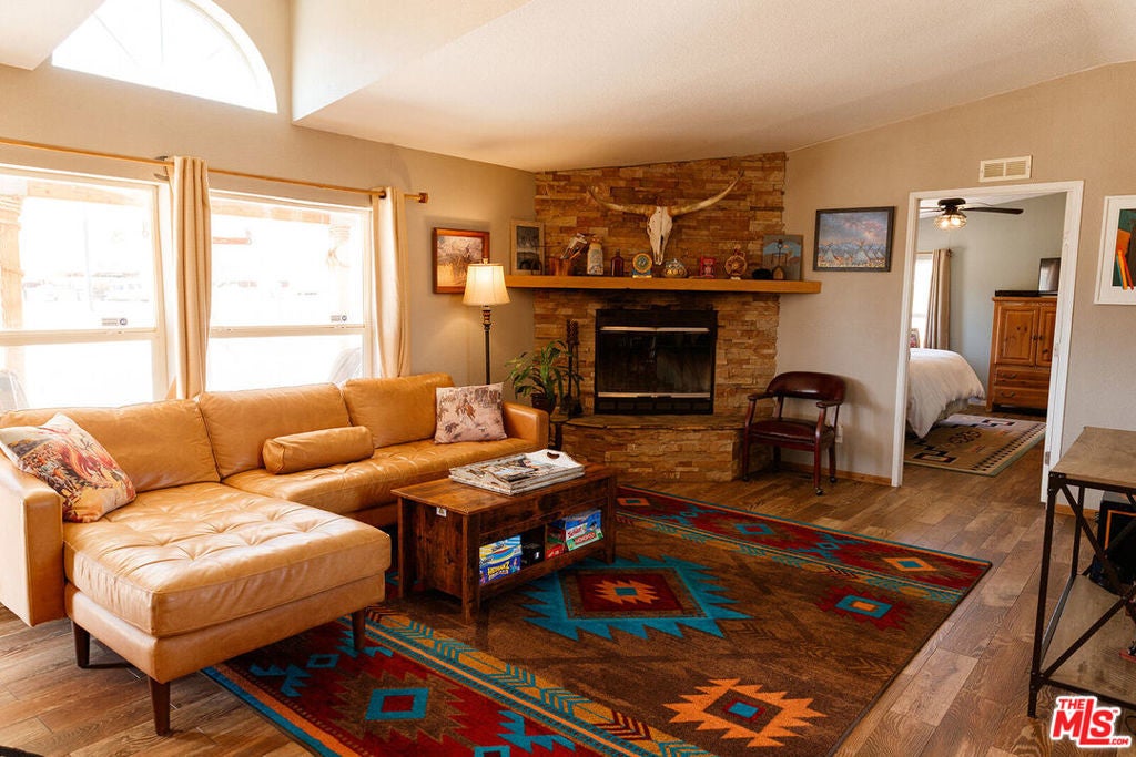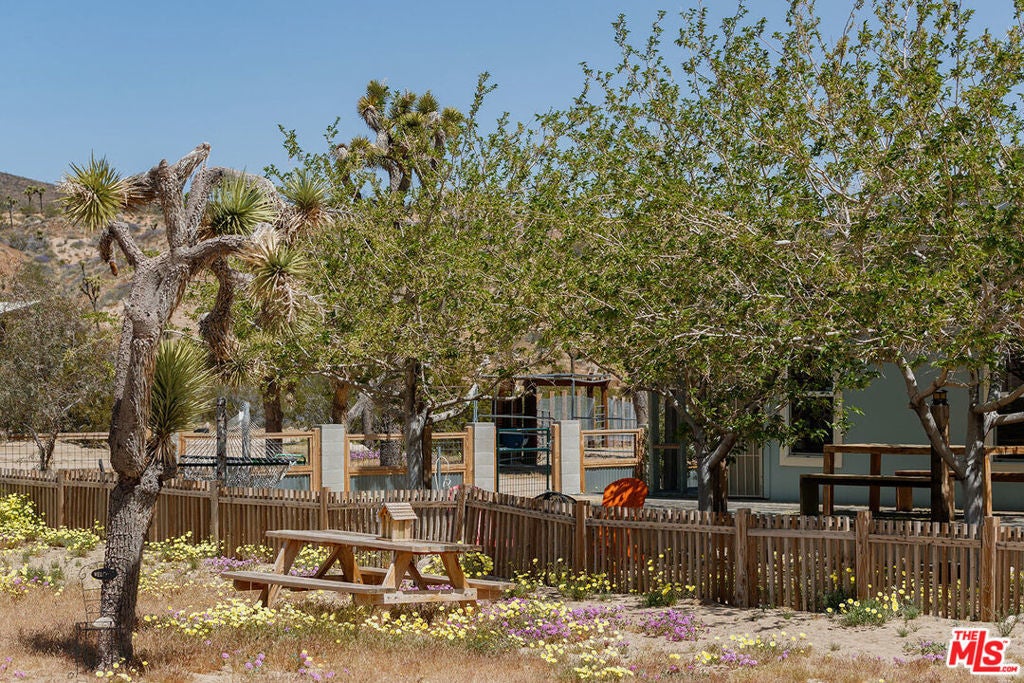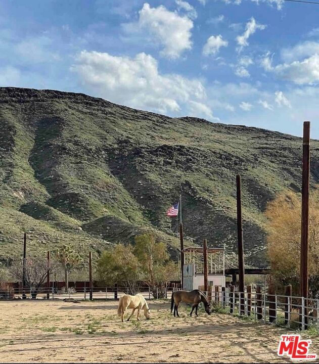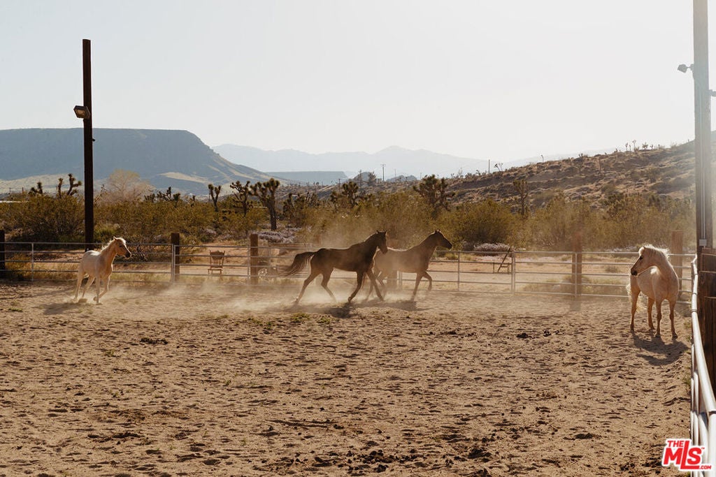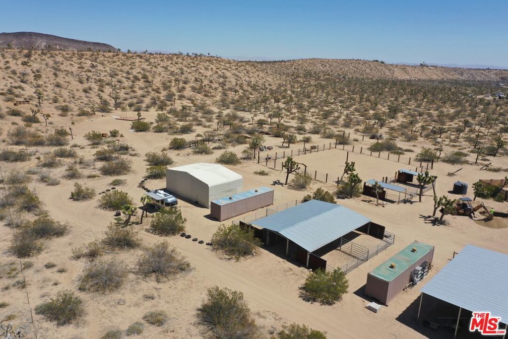 True equestrian estate in Pipes Canyon spanning nearly 10 acres across two legal parcels with sweeping views of towering lava buttes and expansive High Desert skies. The ranch is anchored by a rare one-acre lighted horse arena with viewing booth designed for training, clinics, and events. Infrastructure includes a 4-stall mare manor, large turnout with additional stalls, tack and hay storage, three 40-foot shipping containers, and four 80-foot covered bays providing significant shade and operational flexibility. The property is fully fenced and serviced by a private well. Two separate ranch-style residences each offer 3 bedrooms and 2 baths, totaling approximately 3,009 square feet combined. Both homes feature vaulted ceilings, wood-burning fireplaces, central heat and air, spa-style soaking tubs, and fenced yard areas ideal for privacy. Outdoor amenities include a shaded wraparound porch, hot tub, fire pit, BBQ area, and RV hookups, creating a turnkey desert retreat.Currently operating as a successful Airbnb property, the estate offers consistent income potential while preserving its identity as a fully functional working ranch. Located between Yucca Valley and Pioneertown with convenient access to Joshua Tree National Park, dining, and shops, this is a rare opportunity to own a built-out equestrian compound with lifestyle and revenue in one of the High Desert's most dramatic settings.