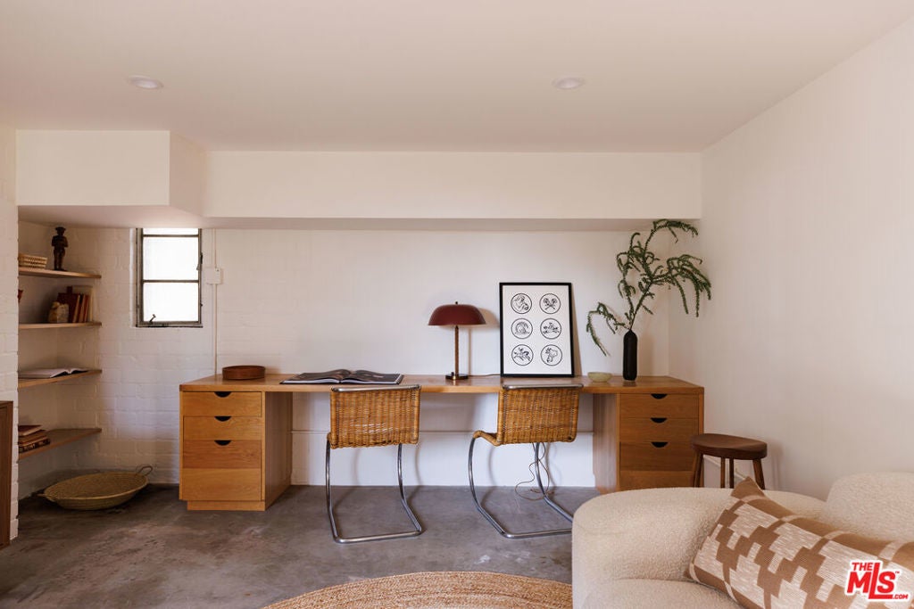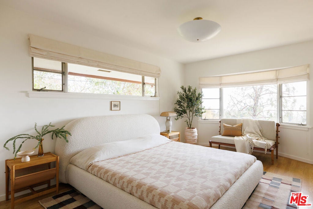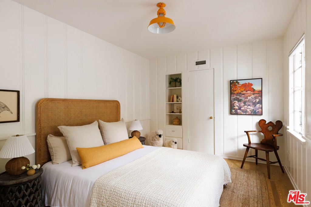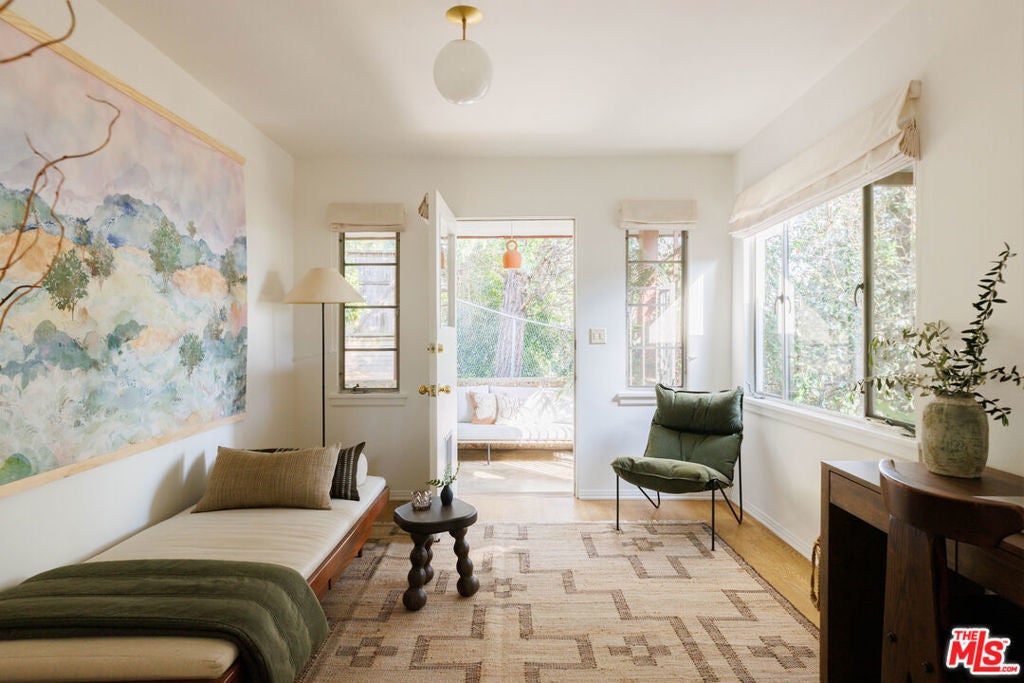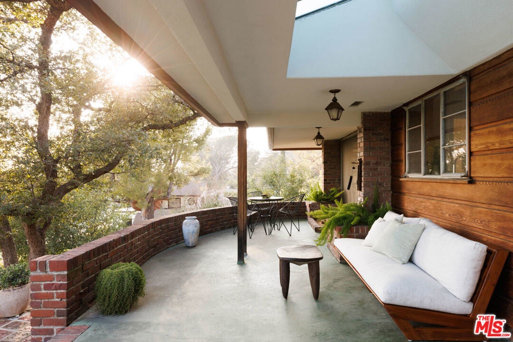 Altadena has long been defined by its beauty, strength, and close-knit community, this classic 1950s mid-century home reflects that enduring spirit. Positioned on a corner lot, the single-story residence enjoys sweeping 180-degree views of Downtown Los Angeles and a lush garden filled with fruit trees. Inside, timeless mid-century design is paired with thoughtful upgrades that make daily living comfortable and effortless. The home features paid off solar panels to help lower utility costs, along with central air and heat and a tankless water heater delivering year round comfort and modern efficiency. Natural light and clean architectural lines create a calm, grounded atmosphere throughout. A private 225 sq ft bonus room with its own entrance, reached by a charming garden path, offers the perfect setting for a home office, studio, gym, or versatile flex space. A detached two-car garage is accessed via a covered breezeway and includes an EV charger for added convenience. Entry is provided by a private shared driveway serving only this home and the neighboring Folly Bowl property. The home is currently offered unfurnished. Furnished photos from 2024 are licensed and provided for reference to illustrate scale and layout.