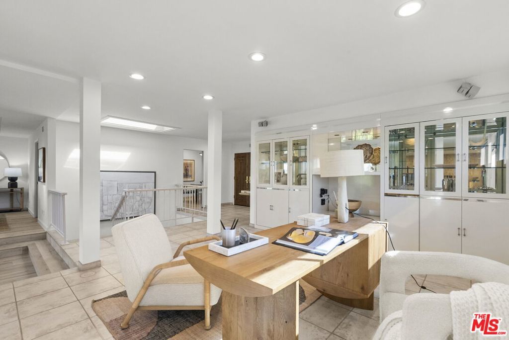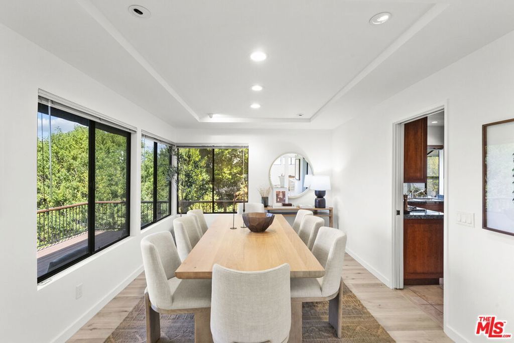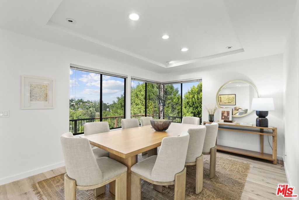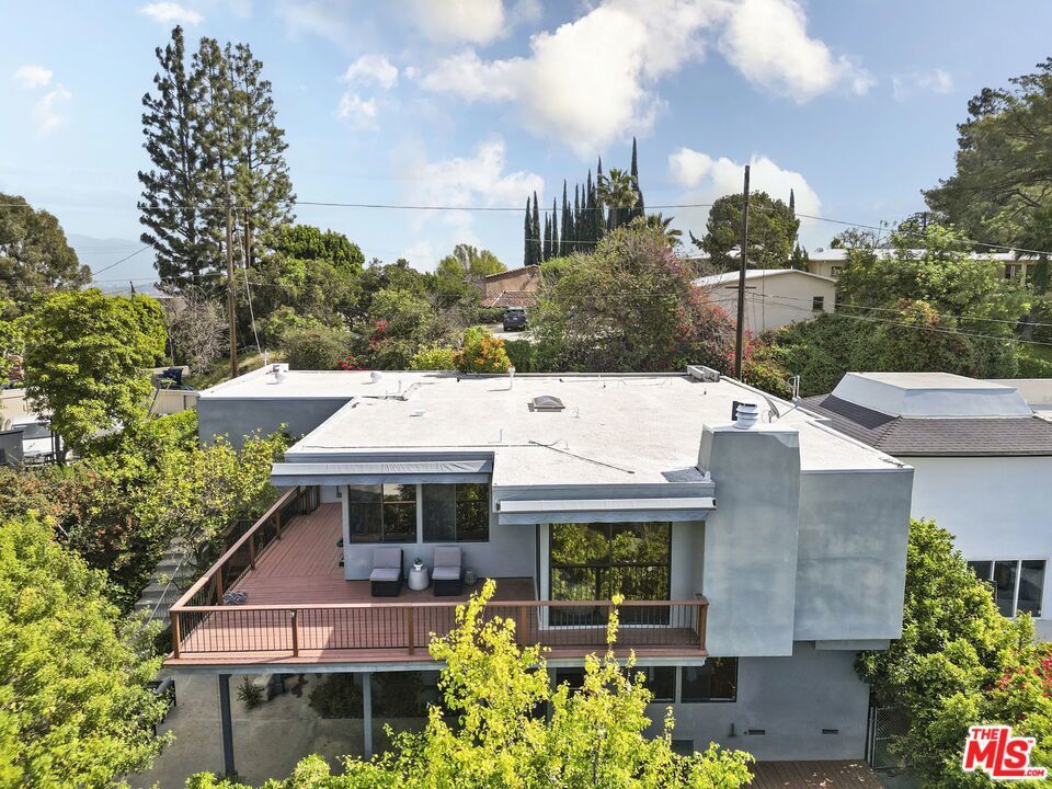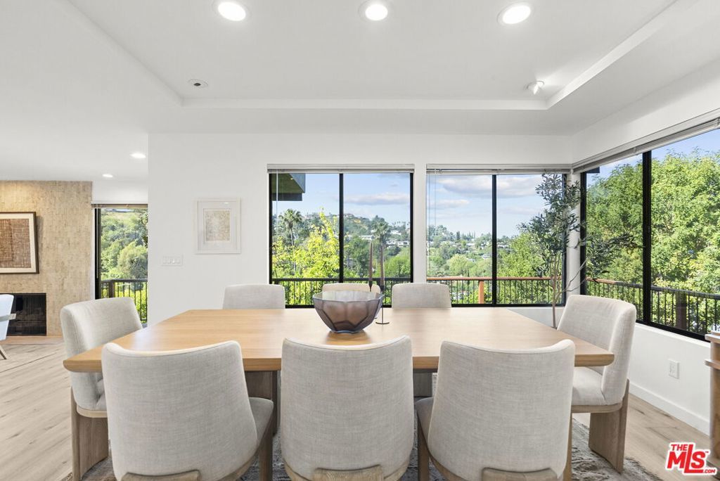 Commanding sweeping hillside views from its prime location south of Ventura Boulevard, this private mid-century retreat in Sherman Oaks offers elevated California living at its finest. Spanning approximately 2,500 square feet across two levels, the home features 3 bedrooms and 3 bathrooms with a floor plan designed for both comfortable daily living and effortless entertaining.Natural light fills the open-concept living spaces, where a striking fireplace anchors the main living room. Sliding doors open to a full-length view deck, creating seamless indoor-outdoor flow and a spectacular backdrop for sunset evenings and weekend gatherings. The dining room sits just off the kitchen, framed by windows and scenic outlooks that make every meal feel special.The kitchen is appointed with stainless steel appliances, generous counter space, and a bright breakfast area that welcomes the morning sun. A bedroom on the main level offers flexibility for guests, a home office, or additional living space. Downstairs, the private primary suite provides a tranquil retreat with sweeping views and an en-suite bath. An additional bedroom and versatile bonus room offer options for a media room, gym, or creative workspace. Outdoors, mature landscaping surrounds a peaceful patio ideal for relaxing or entertaining. The grounds provide room to further enhance the outdoor lifestyle, including potential space for a pool. A rare opportunity to own a view home that blends mid-century character, privacy, and convenience in one of Sherman Oaks' most desirable hillside neighborhoods just moments from dining, shopping, and commuter access.