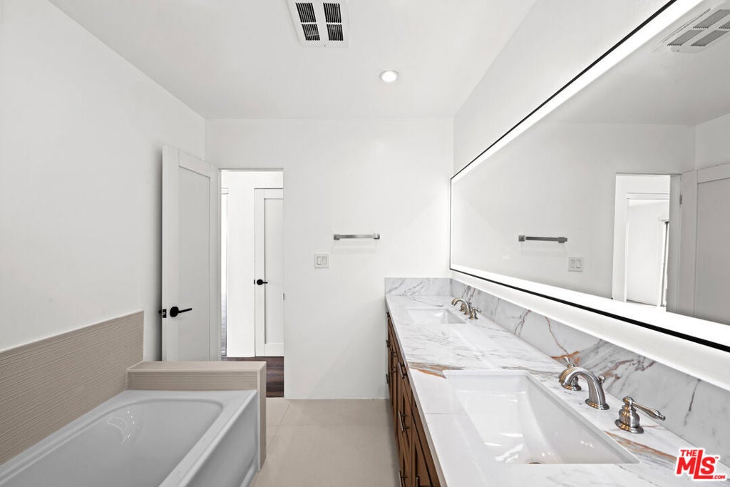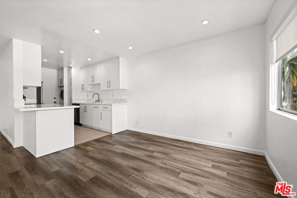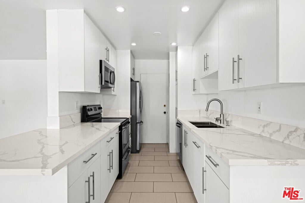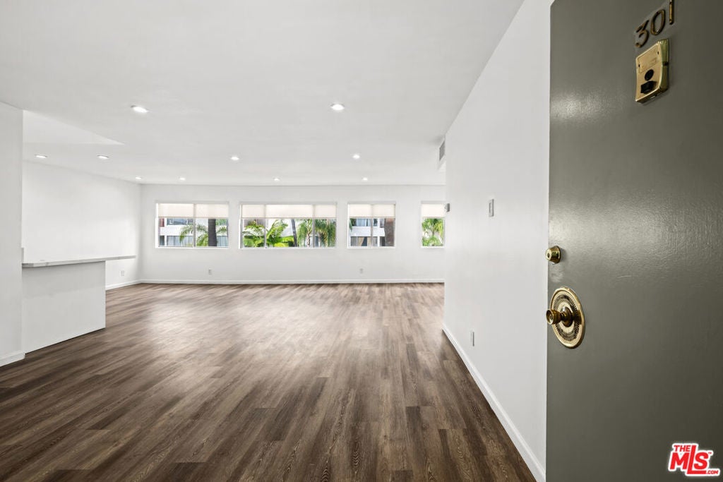 Perched on the 3rd floor in the heart of Beverly Hills, this fully remodeled 2-bedroom, 2-bath residence is bright, airy, and move-in ready. The expansive living and dining area is flooded with natural light from a wall of oversized windows, creating an ideal space for both relaxing and entertaining. The updated kitchen features sleek modern cabinetry, quartz-style countertops, and stainless steel appliances, with a clean, contemporary finish throughout. Both bathrooms have been thoughtfully renovated with designer-style fixtures, modern vanities, and crisp tilework for a spa-like feel. The spacious primary suite offers great scale and comfort, plus direct access to a private balcony perfect for morning coffee or evening downtime. Additional highlights include recessed lighting, wide-plank flooring, and a fresh, modern palette that complements the home's abundant light.