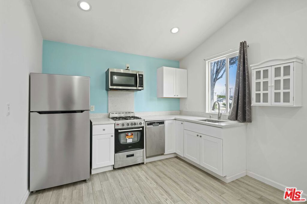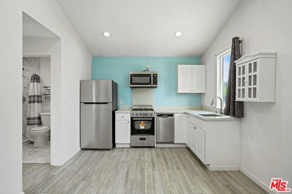 Modern and well maintained ADU located in a quiet West Hills neighborhood with private entrance and bright open layout. High ceilings in the living room and kitchen area create an open and airy feel with abundant natural light throughout. The kitchen features stainless steel appliances including refrigerator, gas range, microwave, and dishwasher, along with modern cabinetry and quartz countertops. In unit washer and dryer provide everyday convenience. Multi zone ductless mini split system delivers efficient heating and cooling in both the living area and bedroom. The bathroom showcases updated finishes and a tiled shower. Comfortable, low maintenance living in a peaceful residential setting. Move in ready.
