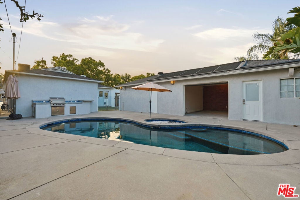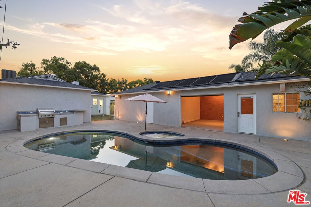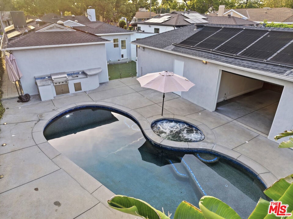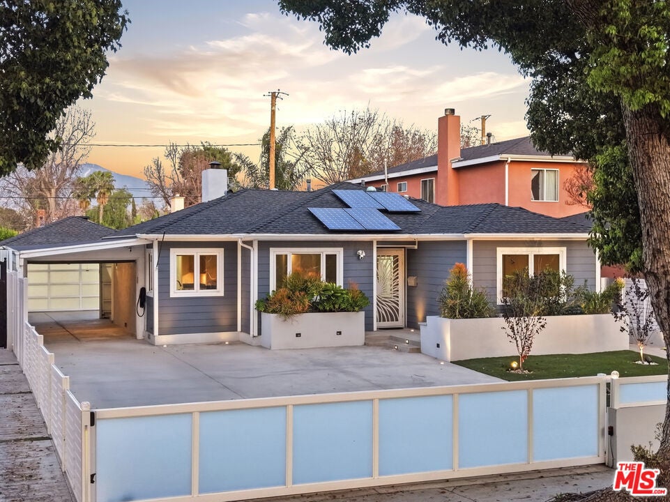 Welcome home to this beautifully updated Burbank retreat offering the perfect blend of modern comfort, privacy, and California outdoor living. Set behind a gated entry, this property welcomes you with clean contemporary curb appeal, manicured landscaping, and an expansive driveway with ample parking and electric car charging station. Inside, the home exudes warmth and style, equipped with heated floors in the living room, kitchen and hallway while owned solar panels provide energy efficiency and long-term savings. The real showstopper awaits in the backyard, a private resort-style setting featuring a newly finished pebble-tech sparkling pool and spa, spacious patio for entertaining, and a bonus ~500SF game room with a vaulted ceiling and finished interior ideal for a home office, gym, studio, or creative space. Framed by mountain views and glowing sunset skies, this home offers the indoor-outdoor lifestyle Southern California buyers dream of. Located in the heart of Burbank, you're minutes from top-rated schools, major studios, parks, dining, and shopping all while enjoying the charm of a quiet residential neighborhood. A rare opportunity for a new homeowner to step into comfort, style, and long-term value in one of Burbank's most desirable communities.