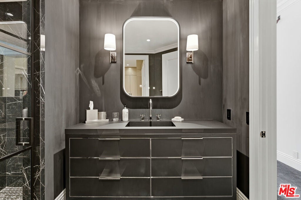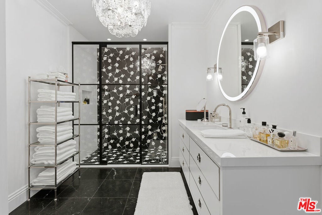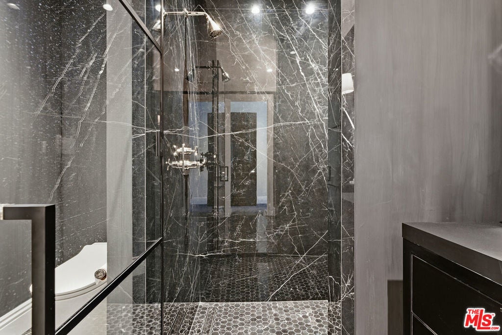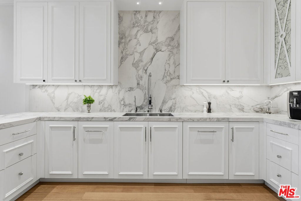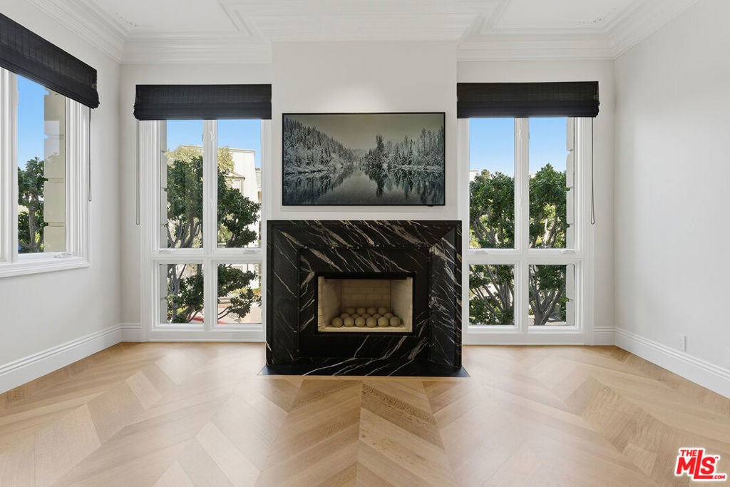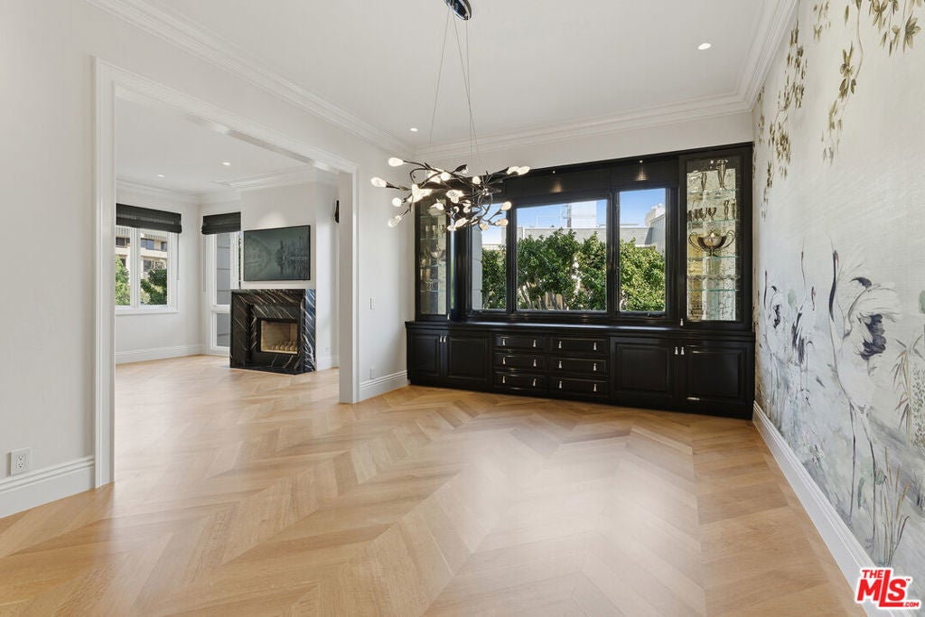 Experience elevated living in this extensively upgraded and elegantly remodeled 2-bedroom, 4-bath residence in the prestigious Le Parc, one of Century City's most sought-after full-service communities. A striking black and white marbled checkered entry area creates an unforgettable first impression, evoking timeless European elegance and setting the tone for the sophisticated interiors beyond. Designer-decorated and meticulously curated, the residence showcases soaring ten-foot ceilings, dramatic white oak chevron floors, and custom solid wood doors that bring architectural richness and warmth throughout. Large-scale double-paned windows bathe the home in natural light while maintaining exceptional quiet, enhancing the bright and open floor plan. A marble fireplace anchors the gracious living space, offering both refinement and comfort for entertaining or everyday living. The gourmet Viking kitchen is beautifully appointed with premium appliances, generous cabinetry, and a layout designed for seamless flow. Two expansive bedroom suites provide privacy and luxury, each featuring walk-in closets and elegantly finished baths. Additional baths accommodate guests with ease. LED lighting highlights the clean, contemporary aesthetic, while abundant built-in storage and dedicated extra storage offer rare practicality. Two private balconies overlook lush greenery, creating a serene indoor-outdoor connection and peaceful retreat in the heart of the city. Residents of Le Parc enjoy 24-hour guard-gated security, concierge services, pools, tennis courts, fitness facilities, and manicured European-inspired grounds, all moments from Century City's world-class shopping, dining, and entertainment. A turnkey, designer-quality residence that embodies timeless sophistication, tranquility, and elevated luxury living.