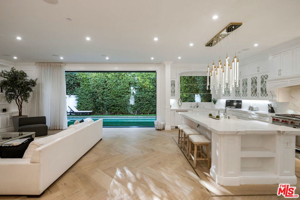Welcome to a modern Cape Cod masterpiece offered fully furnished, that blends timeless design, high-end finishes, and cutting-edge smart home technology in one of West Hollywood's most coveted neighborhoods. Thoughtfully designed with effortless indoor-outdoor flow, this residence offers the perfect balance of warmth, sophistication and innovation. Step inside to find elegant, light-filled living spaces, including formal living and dining rooms, a cozy family lounge and a sun-drenched breakfast nook. The chef's kitchen is a showpiece in itself, anchored by Sub-Zero and Wolf appliances, custom cabinetry and exquisite designer detailing. Retractable glass doors open to a private backyard oasis, featuring a covered patio, a white-pebble pool, and an automated spa, ideal for entertaining or everyday retreat. Upstairs, the primary suite serves as a serene sanctuary, complete with dual couture closets and a marble-clad spa bath featuring a soaking tub, steam shower, and dual vanities. Two additional flexible spaces, a custom-built office and a state-of-the-art soundproof home theater, offer unmatched versatility for modern living. Every inch of this home is elevated by smart technology and security, including a fully integrated Control4 system, Bose surround sound, and a gated entry. This is a rare opportunity to own a home that perfectly embodies sophistication, innovation, and the best of West Hollywood living.
