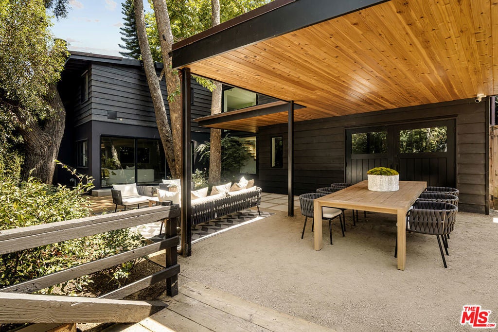 Tucked away in the idyllic enclave of Santa Monica Canyon, 327 E Rustic Rd is a 3-bedroom, 3.5-bathroom retreat with 2,834 square feet of thoughtfully curated living space. Extensively and tastefully renovated, the home was reimagined over the years in collaboration with Amber Interiors and architect Scott Prentice to blend organic elegance with elevated functionality. A 2022 renovation achieved a near-complete reconfiguration of the lower level and an expansion of the home's footprint. The result is a refined and inviting interior anchored by an open chef's kitchen featuring marble countertops, white oak flooring, custom cabinetry and top-of-the-line Wolf and Sub-Zero appliances. Oversized windows throughout bring in soft natural light and frame views of the canyon's surrounding beauty. Upstairs, two secondary bedrooms with en suite baths sit down a hallway from the serene primary suite, which features a spa-like marble clad bath with soaking tub, walk-in shower, dual vanities, hand painted terracotta floor tile, and a generous walk-in closet. A flexible open den once served as a fourth bedroom. Accessed by a private bridge and nestled alongside a creek, the property is surrounded by mature sycamores and soaring eucalyptus trees, offering both privacy and a deep connection to nature with easy indoor-outdoor living. An extensive landscape redesign added a flat grassy backyard, ideal for play, entertaining, or quiet reflection. Just moments from the beach, local restaurants, Canyon Square, and within the coveted Canyon Elementary School district, this one of a kind property pairs privacy, design pedigree, and location in one of LA's most treasured communities.