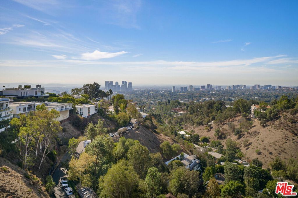 Perched on a scenic hillside in coveted Lower Beverly Hills Post Office, this beautifully renovated four-bedroom contemporary home offers breathtaking panoramic canyon, city, and ocean views just minutes from the heart of Beverly Hills. Designed to maximize natural light and indoor-outdoor living, oversized windows across multiple levels frame stunning vistas and create a bright, airy atmosphere throughout the home. The main level great room features a spacious living area with a gas fireplace and private view balcony, seamlessly flowing into a sunlit dining space and a modern chef's kitchen. The kitchen is outfitted with high-end Viking and Miele stainless steel appliances, granite countertops, and a seated center island, making it ideal for both everyday living and entertaining. The lower level offers an expansive family room with a state-of-the-art home theater system, opening directly to a large outdoor deck with a built-in jacuzzi, ideal for relaxing or hosting gatherings while enjoying the spectacular canyon and sunset views. Three bedrooms are located within the main residence, including a lower level suite with direct access to the deck and a luxurious primary suite complete with a walk-in closet and spa-inspired bathroom featuring a double vanity, soaking tub, and steam shower. A separate guest suite or private office with its own entrance, along with an additional storage room, provides flexible space for guests, work-from-home needs, or creative use. Fully remodeled with modern conveniences, the home includes smart home automation, Nest thermostats, built-in surround sound throughout, and energy-efficient solar panels. An attached two-car garage and spacious driveway present ample off-street parking, adding to the home's functionality. Ideally located just minutes from Rodeo Drive, world-class shopping, fine dining, and top Beverly Hills amenities, 1433 Summitridge Drive offers a rare combination of privacy, luxury, and sweeping views in one of Los Angeles' most desirable neighborhoods.