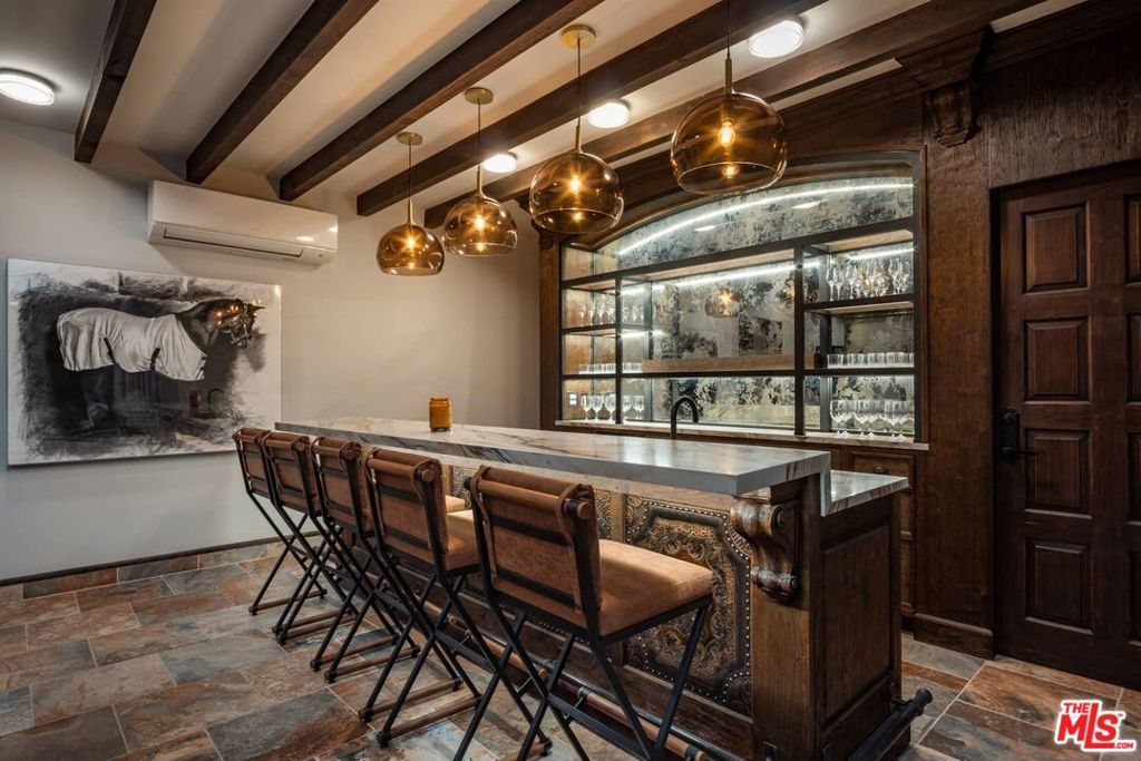 Beamed Ceilings, Wet Bar, Ceiling Fan(s), Eat-in Kitchen, Furnished, Bar, Dressing Area, Walk-In Pantry, Wine Cellar, Walk-In Closet(s)
