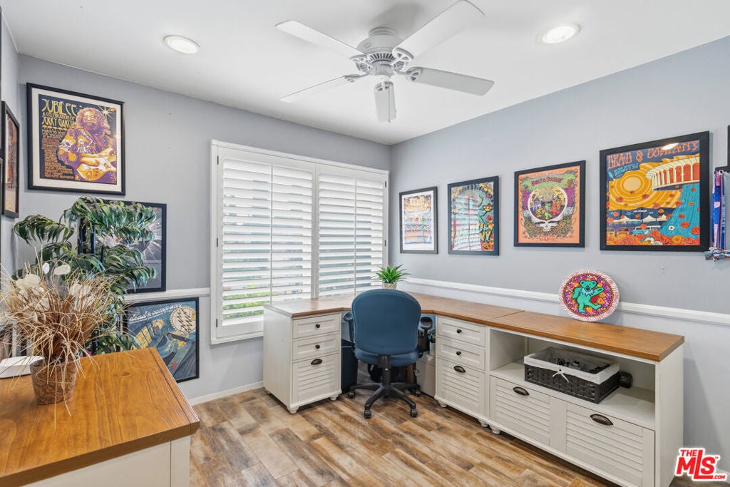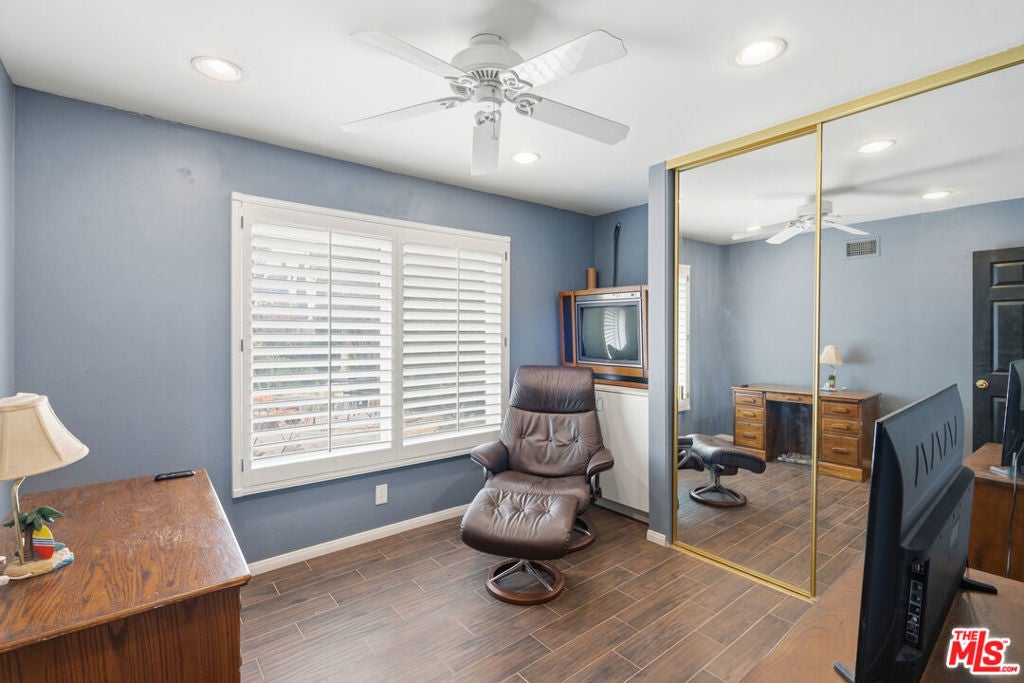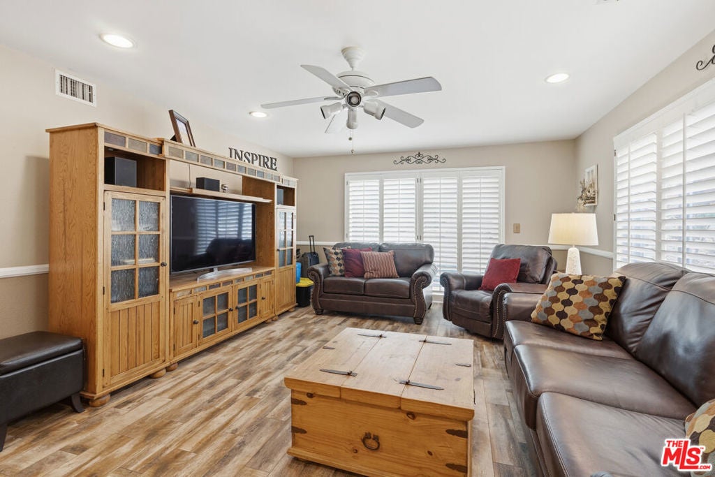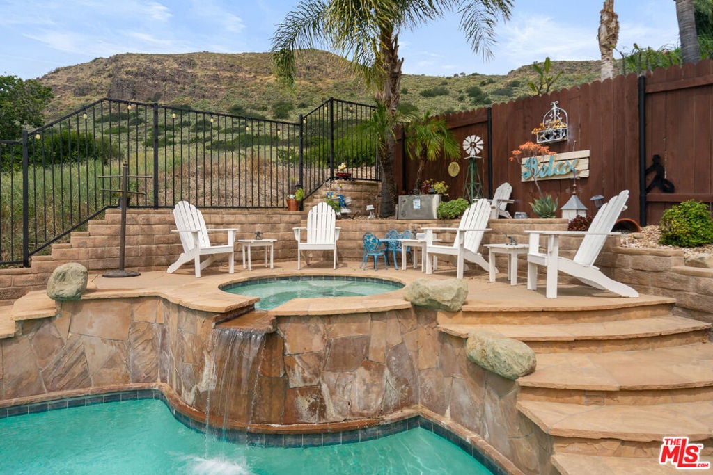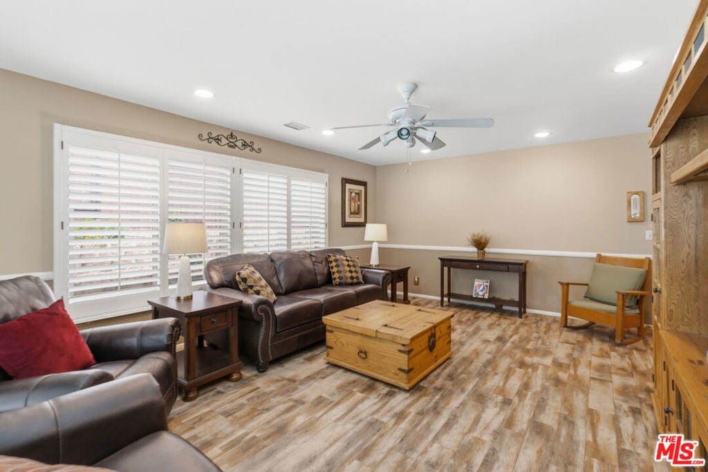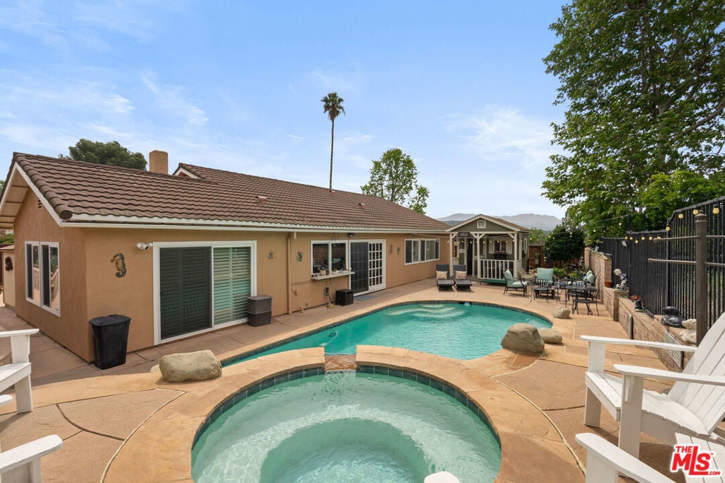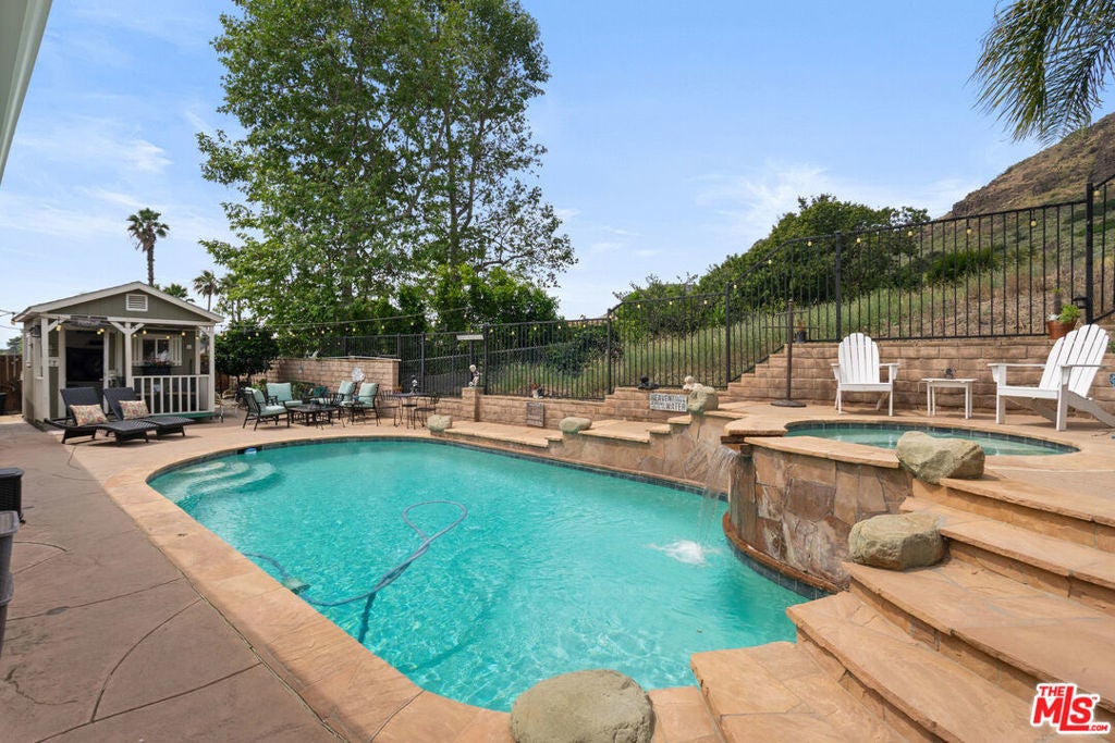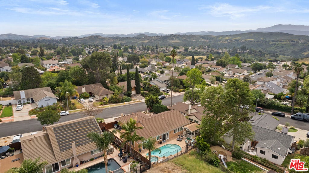 Nestled in the highly desirable Wildwood enclave of Thousand Oaks, this beautifully maintained 4-bedroom, 2-bath residence offers 1,765 square feet of comfortable living with serene natural surroundings. Backing to the scenic trails of Wildwood Regional Park, the home enjoys peaceful hillside views and direct access to one of the area's most treasured outdoor amenities - a rare and coveted backdrop for everyday living. Inside, the home features a thoughtful, functional layout with inviting living spaces designed for both relaxation and connection. Natural light fills the interiors through dual-pane windows, complemented by plantation shutters and recessed lighting that enhance the bright, welcoming atmosphere throughout. The bedrooms are generously sized, offering flexibility for family, guests, or a home office. Step outside to a private backyard retreat where a sparkling pool and tranquil setting provide the perfect space for entertaining or unwinding. The grounds feature hardscaping in both the front and back yards, along with low-maintenance landscaping enhanced by a drip irrigation system and custom front yard lighting. A mature navel orange tree adds charm and character, while wrought iron fencing in the backyard preserves the scenic views beyond. With open trails just beyond the property, nature truly becomes an extension of your backyard. Additional highlights include RV access with a 30-amp hookup, a spacious garage with custom-built cabinetry, and an existing storage shed for added functionality. Located within the award-winning Conejo Valley Unified School District and moments from parks, hiking trails, shopping, and dining, this home offers the ideal balance of peaceful living and everyday convenience. A wonderful opportunity to own in one of Thousand Oaks' most sought-after neighborhoods.