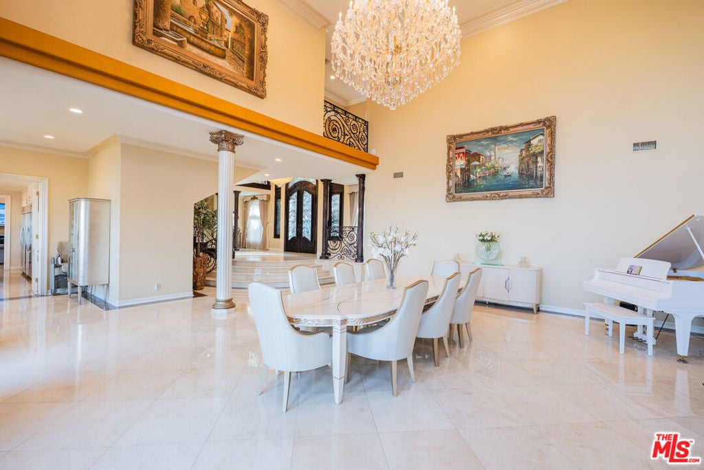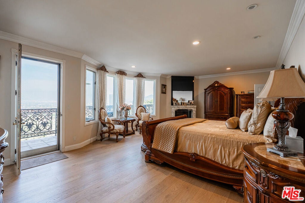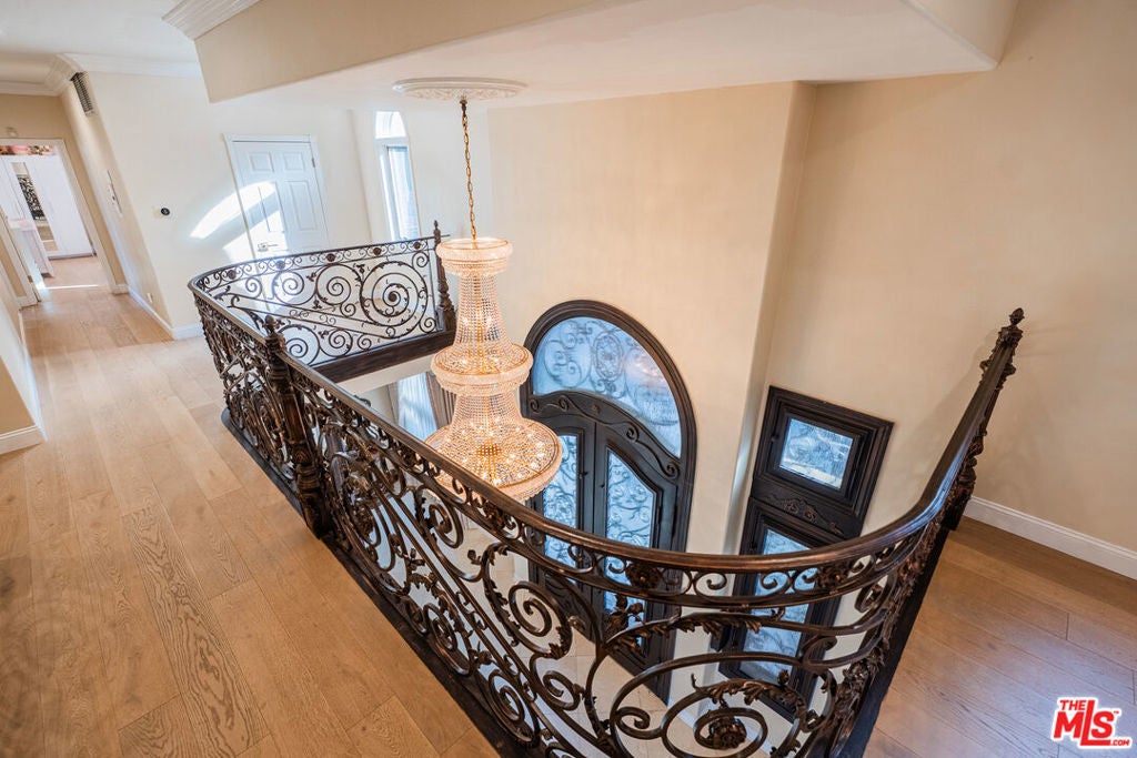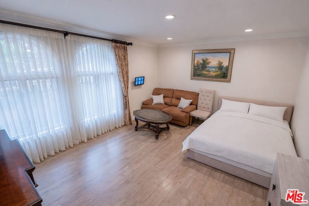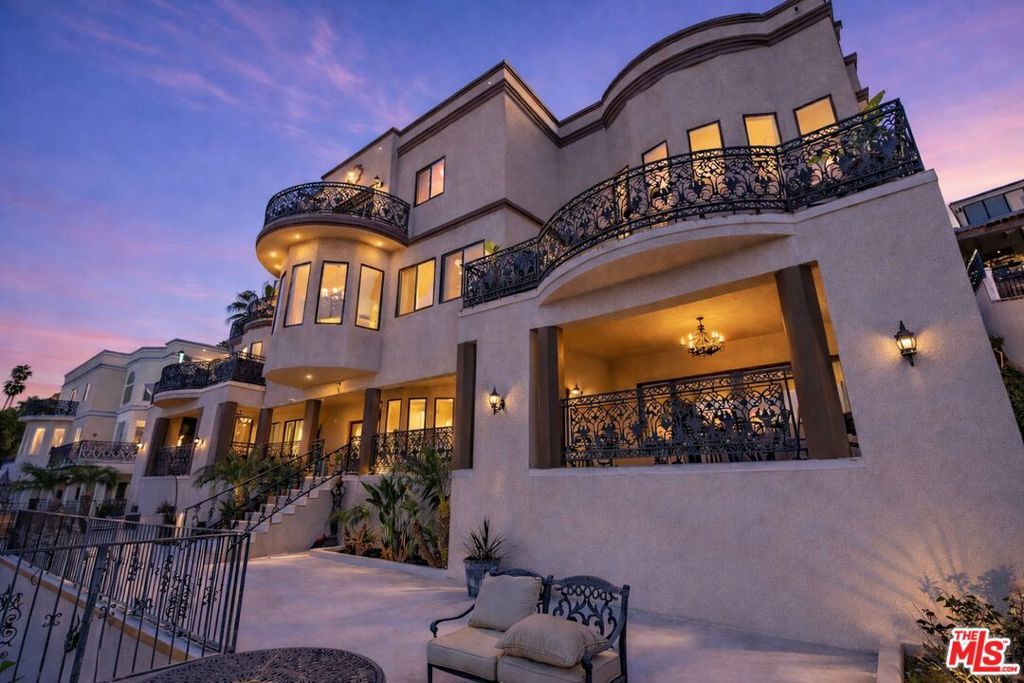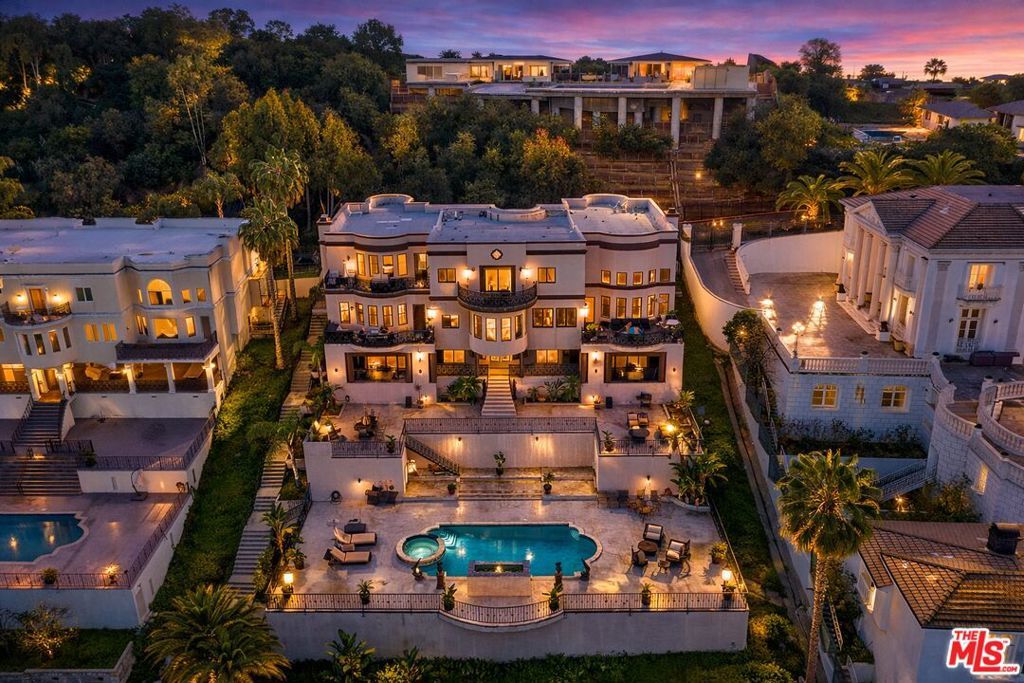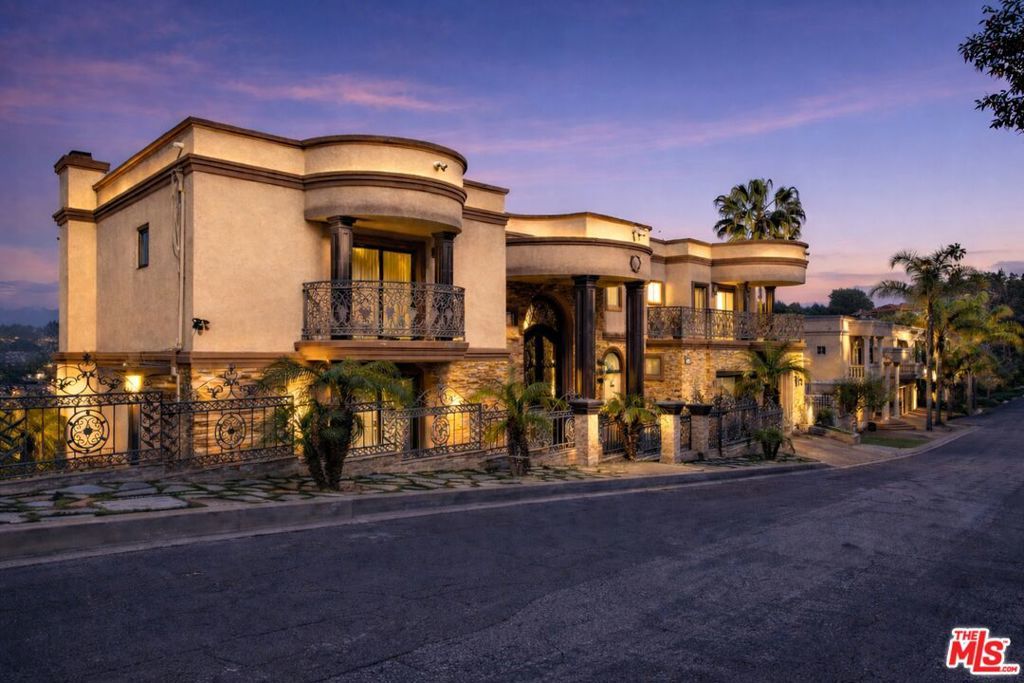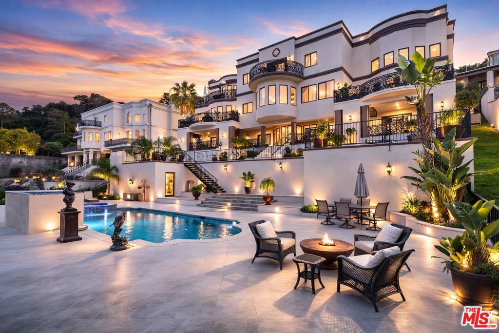 Positioned at the end of a cul-de-sac in the Studio City hills, this custom-built estate captures sweeping panoramic views of the valley, Universal City, and surrounding city lights. Offering 5 bedrooms and 7 bathrooms across approximately 6,528 square feet of living space (per appraiser) on an approximately 0.54-acre lot, the residence blends scale, craftsmanship, and functionality. A custom double-door entry opens to a grand interior featuring cathedral ceilings, a sweeping split staircase, bronze-framed windows, marble and hardwood flooring, custom ironwork, granite countertops, and multiple fireplaces. The home is further enhanced by copper plumbing, dual-pane windows, central vacuum, and a security system. Six private balconies extend the living experience outdoors, providing multiple vantage points throughout the property.The lower level includes a spacious game room, full wet bar, sauna, additional bedroom, and full bathroom ideal for guests or extended living. Expansive terraces lead to the outdoor setting with a pool, spa, and fountain feature, designed for entertaining and relaxation. A three-car garage completes the offering.Conveniently located near Ventura Boulevard, Universal City, and major studios.