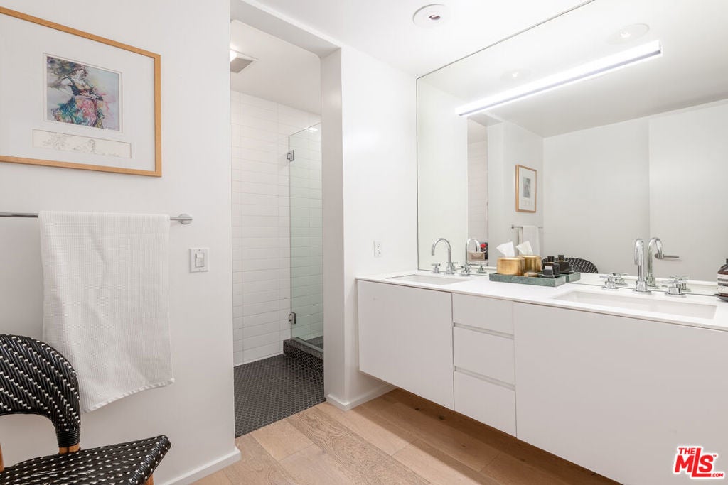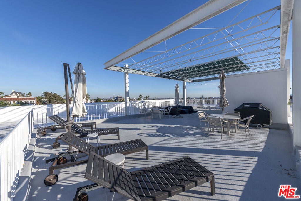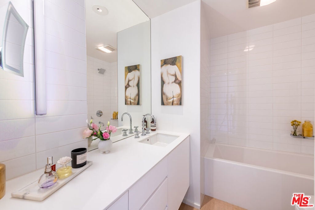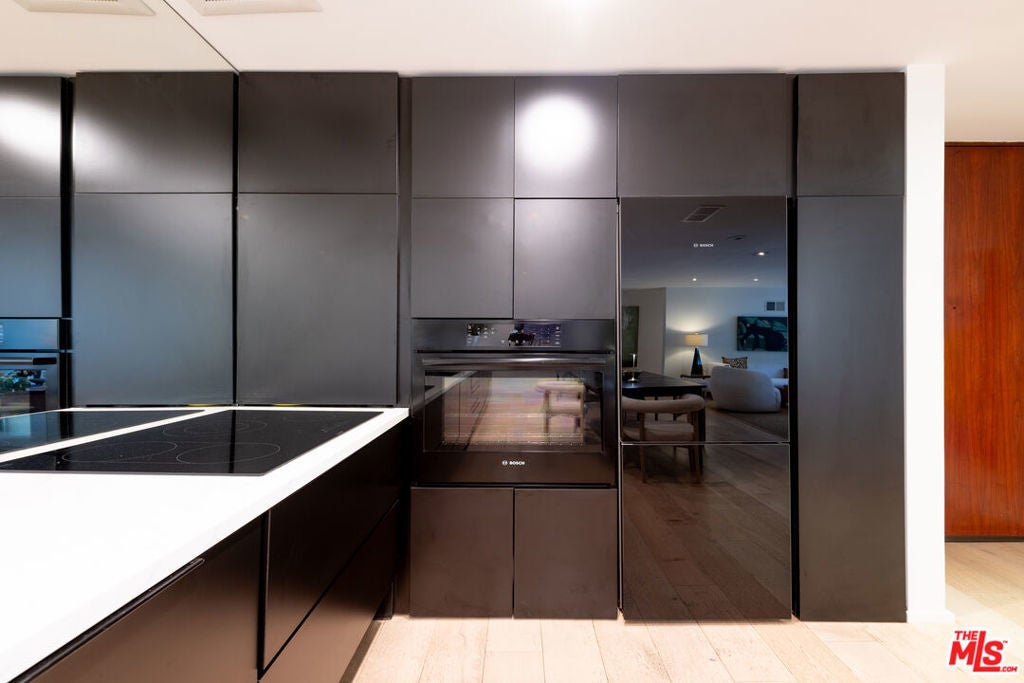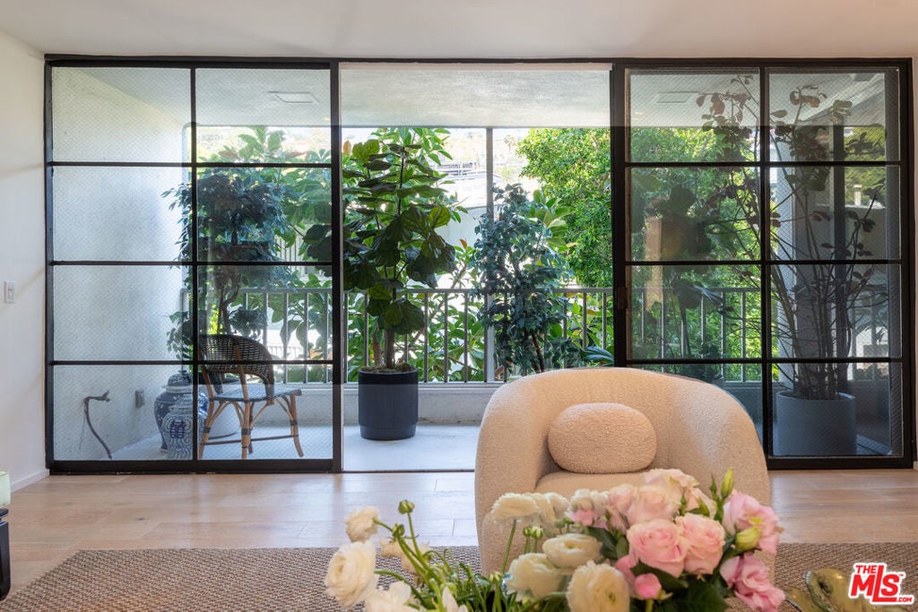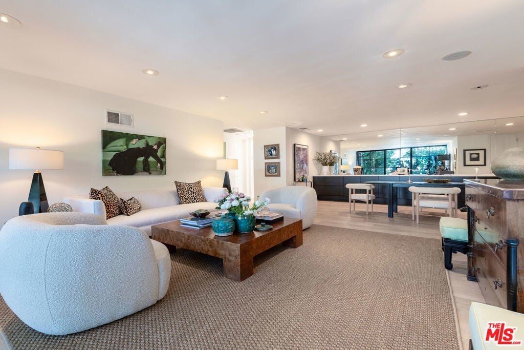 Elevated living at the iconic Sunset Penthouse, a striking example of mid-century architecture designed by renowned architect Frank P. Schneider, in the heart of West Hollywood. This 2-bedroom, 2 bath corner residence underwent an extensive, high-end renovation and has been thoughtfully reimagined with refined, modern finishes while honoring its architectural roots. The open-concept floor plan is flooded with natural light, highlighted by a dramatic full-width, floor-to-ceiling loft-style steel grid window in the living room. Soaring smooth ceilings, recessed lighting, in-ceiling speakers, and wide-plank oak hardwood floors create a seamless blend of warmth and sophistication. The sleek European-style kitchen is both functional and visually stunning, featuring premium Bosch appliances and clean, contemporary lines. Each bathroom has been tastefully updated with timeless finishes. Indoor-outdoor flow comes effortlessly, with a private patio accessible from both the living room and a bedroom ideal for morning coffee or evening relaxation. Additional features include an in-unit stackable washer and dryer, two side-by-side parking spaces in a secure gated garage, and wired for EV charger exclusively for your designated spaces. Residents enjoy access to the spectacular rooftop sundeck offering panoramic 360-degree views. With exceptional walkability to the Sunset Strip, La Cienega Boulevard, and Santa Monica Boulevard, this residence delivers the quintessential West Hollywood lifestyle, architectural pedigree, mid-century character, modern luxury, and an unbeatable location.