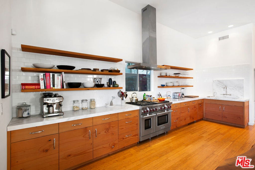 Inspiring private gated Venice home close to Abbot Kinney, Main Street, and the beach! This reimagined modern gem is perfect for entertaining or a quiet retreat. Lush landscaping welcomes you home to a seamless sun filled indoor outdoor lifestyle that features soaring 12' high ceilings, hardwood flooring throughout, floor to ceiling windows, private yard and patios, and an al fresco dining area. The gorgeous contemporary kitchen features Calacatta marble counters, and top of the line Viking and Sub Zero appliances. A wall of windows and sliding doors opens to a deck with built-in bench seating and fire pit for relaxing evenings under the stars. Three spacious bedrooms include a master with private patio. Stunning bathrooms are Italian designed with dual vanity and Walker Zanger tile. Additional features include: Central HVAC, tankless water heater, and reverse osmosis drinking water filtration system, and access through your own gates to a two car garage or ample driveway parking