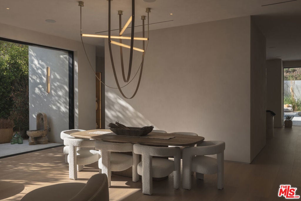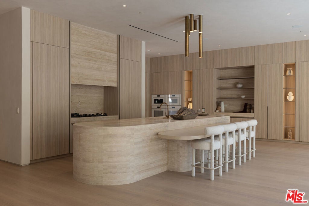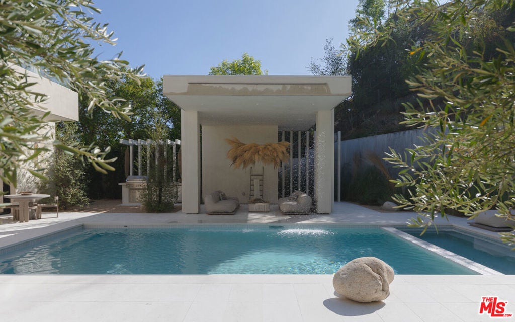 Welcome to a private, design-forward architectural masterpiece in the Encino Hills. Gated, secluded, and set on nearly 25,000 sq ft of lush grounds, this newly built 8,500+ sq ft modern sanctuary delivers uncompromising luxury with effortless indoor-outdoor living, curated natural textures, and a resort-inspired backyard. A dramatic double-height entry sets the tone sculptural lines, gallery-scale volumes, and floor-to-ceiling glass flood the interiors with warm natural light. An organic material palette of travertine, stone, and custom millwork forms a calming, tonal aesthetic that feels as much a world-class resort as it does a home. The bespoke chef's kitchen is a showpiece of modern craftsmanship, wrapped in custom cabinetry with integrated Miele appliances, a monumental stone island, and hidden prep spaces. Vast living and dining areas open seamlessly to the outdoors through oversized pocket doors, creating a true California indoor-outdoor flow. The primary suite is a private retreat, featuring a spa-level bath, boutique-style dressing room, and a serene terrace capturing tree-top and canyon views. Five additional en-suite bedrooms offer exceptional scale and privacy, complemented by a state-of-the-art screening room, wellness / fitness space, and a smart-home system controlling lighting, climate, audio, security, and more. Outside, the grounds feel like a boutique resort: a sparkling pool and spa, open-air lounge areas, a full outdoor kitchen and bar, and a dramatic sunken fire pit carved into the landscape. Mature olives, sculpted grasses, and minimalist hardscape blend into the surrounding hillside for complete tranquility. A rare combination of architectural pedigree, privacy, and natural serenity yet moments from the Westside, Ventura Blvd, and the best dining, shopping, and schools in the Valley. An uncompromising statement property for the buyer seeking world-class design and an effortless luxury lifestyle.