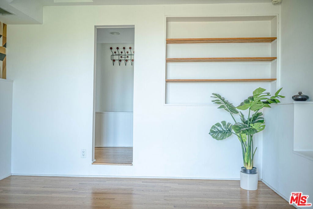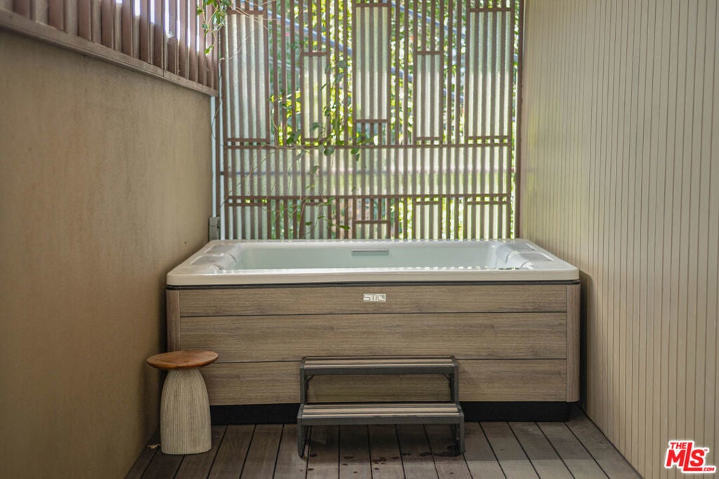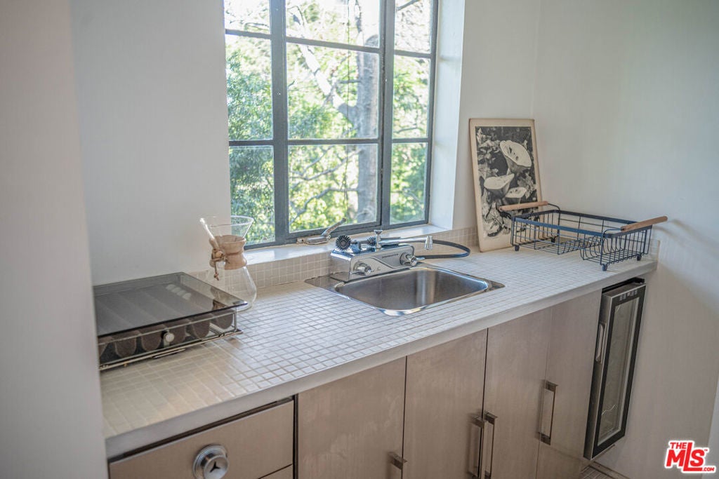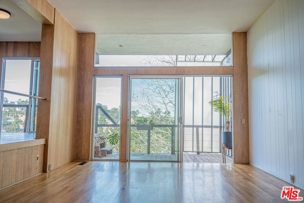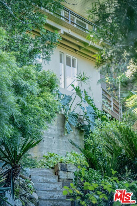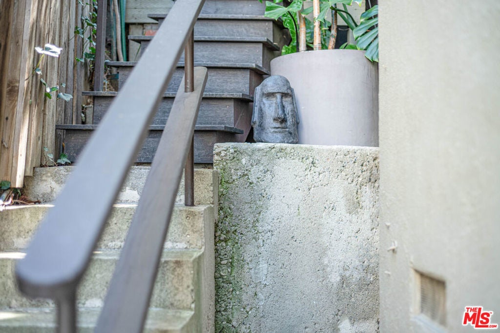Perched on the crest between historic Laurel Canyon and Sunset Plaza, this classic mid-century post-and-beam retreat captures the very essence of Westside canyon living in the coveted Hollywood Hills.Featured in Dwell, this private and gated treehouse-style oasis welcomes you with a mahogany-planked forecourt and the tranquil sounds of a water feature setting the tone for a home designed equally for elevated entertaining and serene retreat. Surrounded by lush greenery and layered canyon views, the property feels worlds away, yet remains moments from the energy of the city.Inside, timeless mid-century architecture shines through oak floors, soaring ceilings, floor-to-ceiling glass, and sweeping canyon vistas from nearly every room. A stunning travertine fireplace anchors the dramatic step-down living room, creating an architectural focal point that is both warm and striking. Natural light floods the interiors, blurring the lines between indoors and out.The eat-in kitchen, outfitted with updated appliances, opens to a BBQ deck perfect for al fresco dining under the trees. A bedroom and full bath complete the main level, offering flexibility for guests or family. Upstairs, the primary suite serves as a peaceful sanctuary with its en-suite bath and private deck overlooking the hills and canyons an idyllic perch for morning coffee or sunset unwinding. An additional guest bedroom and bath complete the upper level. Exterior stairs lead to a third-level private-entry guest quarters/home office with kitchenette and bath (not included in square footage or bed/bath count), ideal as a separate in-law studio, creative workspace, or income opportunity. The attached garage provides convenience, while the expansive backyard unfolds into a true jungle-like retreat a curated array of mature trees and abundant plantings create total privacy. A tucked-away hot tub offers spa-like relaxation beneath canyon skies, with views that stretch endlessly across the hills.Just minutes from the iconic Sunset Strip, historic Hollywood, and award-winning Wonderland Avenue Elementary School, this is Laurel Canyon living at its finest architectural, soulful, private, and effortlessly California cool.