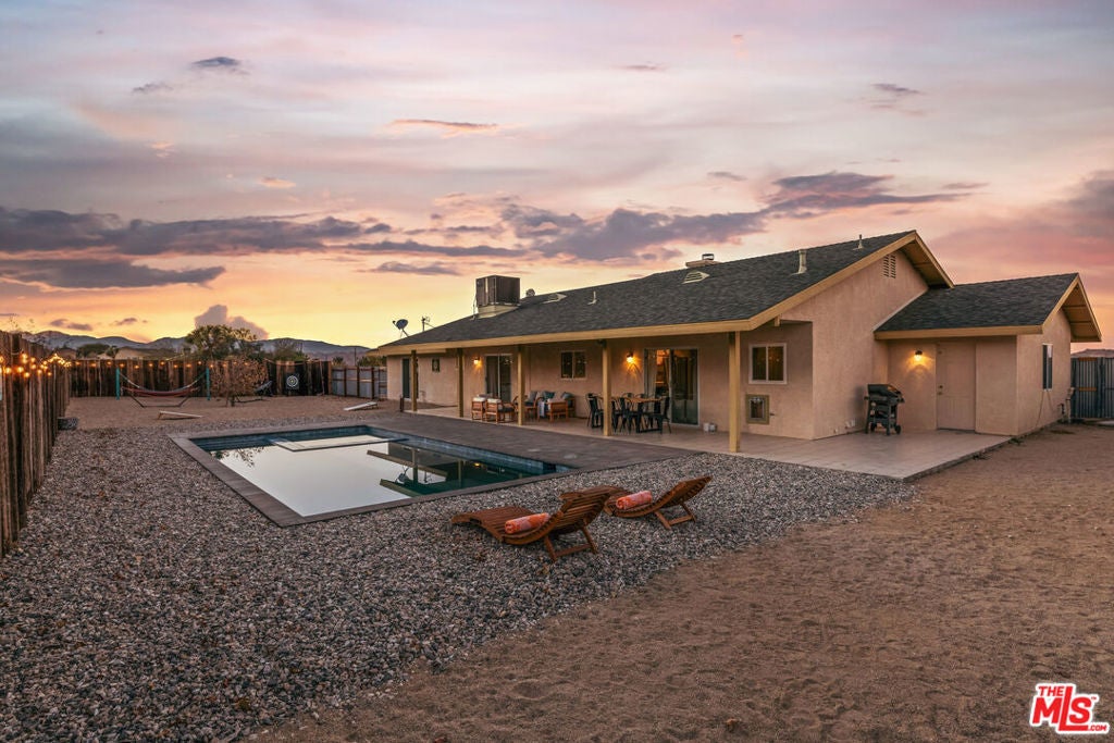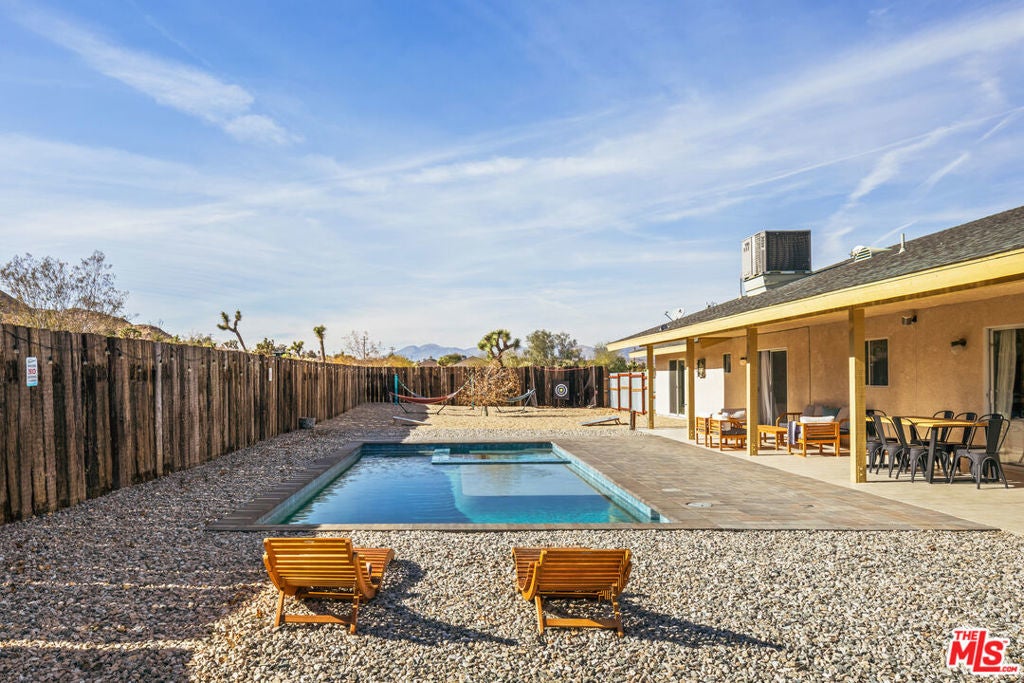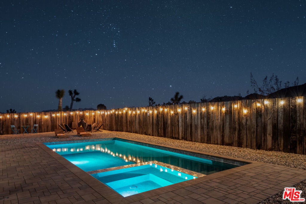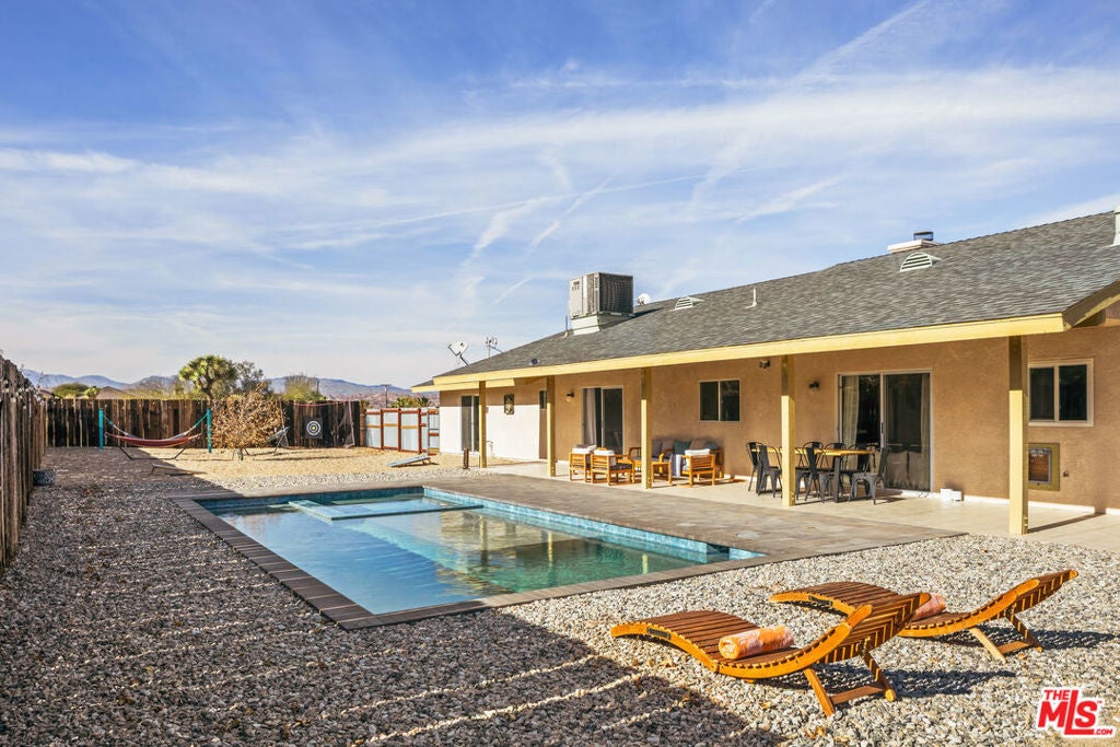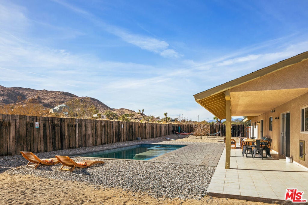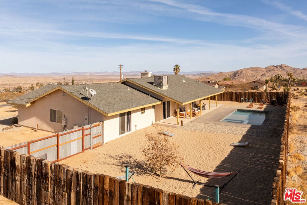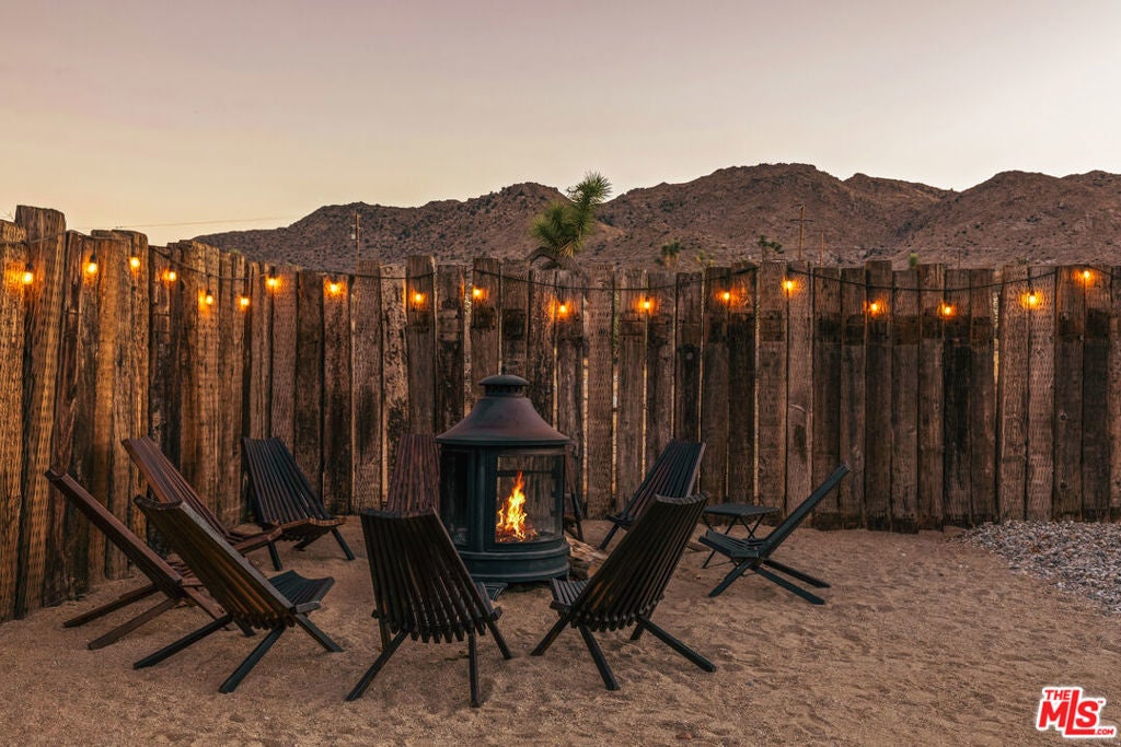 Welcome to your new home in the highly desirable Upper Friendly Hills neighborhood of South Joshua Tree. This beautifully maintained four-bedroom, two-bath residence is dramatically positioned high on a 2.28-acre lot, capturing sweeping mountain views and exceptional privacy, while offering convenient access to everyday amenities and proximity to Friendly Hills Elementary School. Designed for both comfort and refined desert living, the home features an open-concept floor plan filled with natural light and bright, inviting spaces. A striking stone wood-burning fireplace serves as the focal point of the living area, creating warmth and ambiance. The spacious kitchen blends into den, dining and living areas. The outdoor space is equally impressive. The backyard is fully fenced with rustic railroad ties, providing privacy and space for animals, recreation, or entertaining. With over two acres, there is ample room for outdoor adventure equipment, expansion, or simply embracing the wide-open landscape. Located just minutes from downtown Joshua Tree and the iconic Joshua Tree National Park renowned as one of the world's most extraordinary natural desert treasures and home to its protected namesake trees this property offers the rare combination of serenity, accessibility, and breathtaking surroundings. Meticulously maintained and thoughtfully upgraded, this exceptional home delivers tranquility, comfort, and elevated desert living. It will not disappoint.