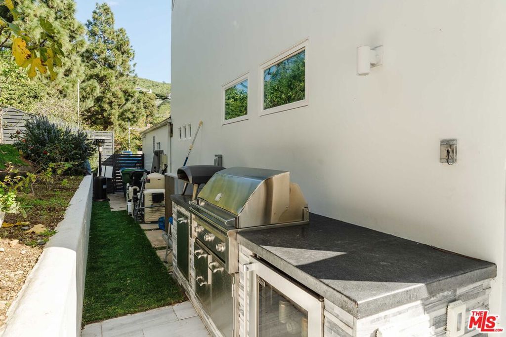 Set in the famed Marquez Knolls, this contemporary residence offers serene privacy in a truly bucolic setting. Guests are welcomed by a stately foyer with gallery walls, leading into an expansive open floorplan designed for seamless entertaining. The great room, anchored by a sophisticated fireplace and formal dining area, is bathed in natural light from large southern-facing windows. The chef's kitchen is a masterclass in design, featuring a Wolf 6-burner double oven, Sub-Zero fridge/freezer, and custom cabinetry centered around a striking waterfall countertop with informal dining. An inviting family room adjoins the kitchen, creating a perfect hub for daily life. Upstairs, the primary suite serves as a private sanctuary, detailed with custom built-ins, skylights, and a large custom closet. The spa-like ensuite bath features dual vanities and an oversized shower with a bench. Three additional bedrooms off the landing offer breathtaking canyon and ocean vistas, sharing a bright, designer bathroom with tub and shower. The resort-caliber backyard is an entertainer's dream, featuring a saltwater pool with a baja shelf, a spa, and a built-in firepit lounge. A dedicated BBQ station services the alfresco dining terrace, while a lush, fenced lawn wraps around the home. The home is completed by a 2-car garage that also functions as a gym along with a laundry area. Located in a tight-knit community known for its resilience and charm, this home offers the quintessential Palisades lifestyle.
