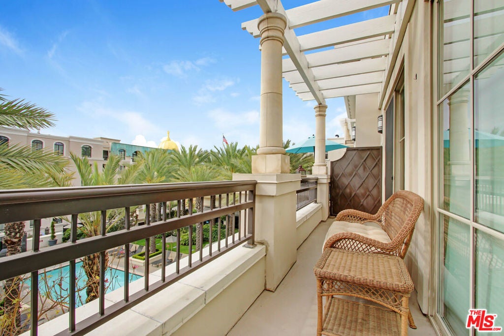 FULLY FURNISHED 4th floor 2Bedroom/2bath apartment with hardwood flooring and long private balcony overlooking the newly renovated rooftop resort style pool and spa at the Americana @ Brand! Two spacious bedrooms with primary en suite and guest baths with shower+ tub enclosure+ walk in closet. Fully equipped kitchen with stainless steel appliances and Corian counters with pull up bar stools+ additional dining area with seating. Centralized A/C & heat+ en suite washer-dryer+ 2 secure tandem garage parking spaces. Community amenities include valet parking available for guests, resident concierge, gorgeous resort style pool/spa, cutting edge fitness center, clubhouse, rooftop meditation garden, gated entrance/controlled access, Amazon lockers, car charging stations and more!