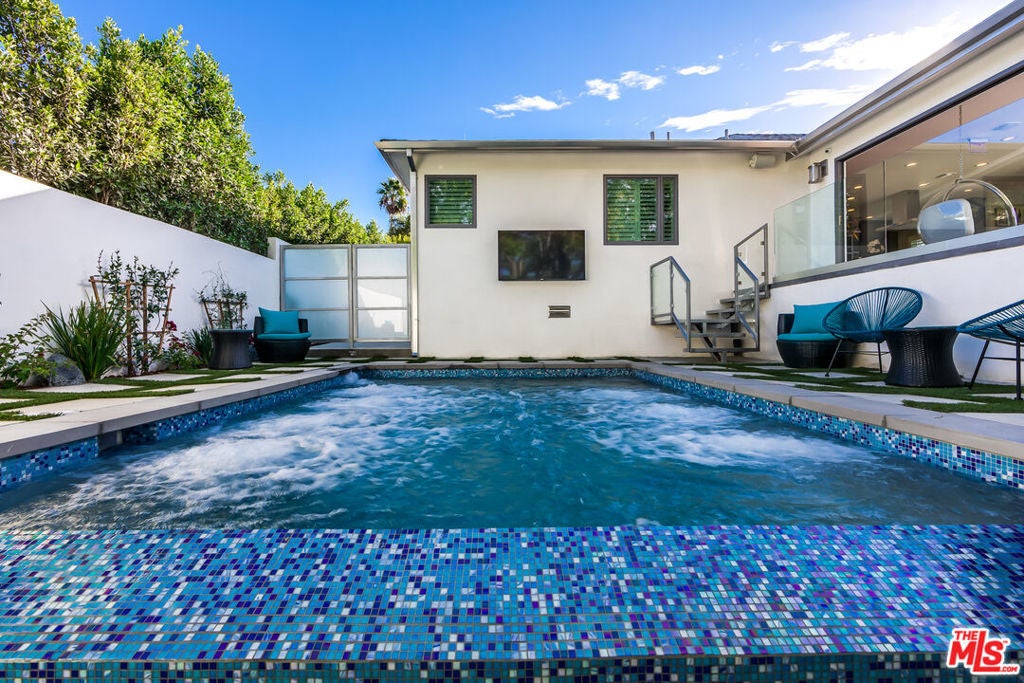 Gated, up a driveway with magnificent grounds, infinity-edge pool, and perfect for entertaining patio all come together for a truly important piece of architecture. The home features hardwood floors, stylish updates, and jetliner views throughout. This rare gem boasts 3 bedrooms, an updated chef's kitchen, automated smart home features, and a beautifully landscaped backyard featuring a pool/spa, custom large fire pit and built in BBQ station. This turnkey home comes loaded with every detail thought through. Fully Furnished.