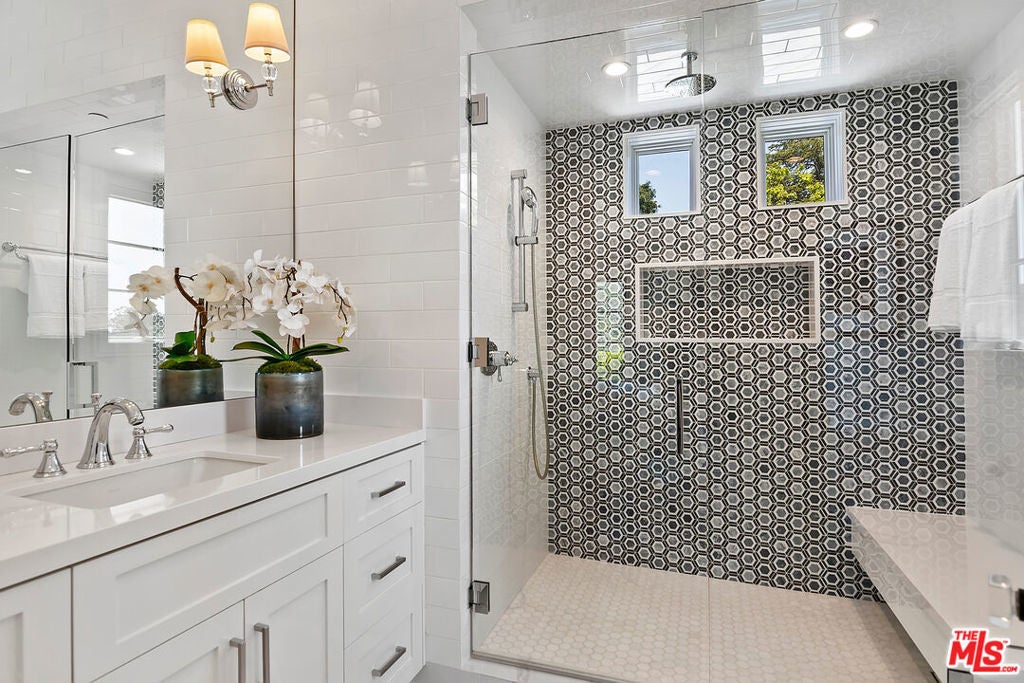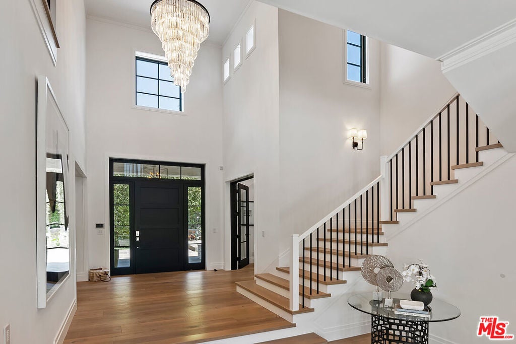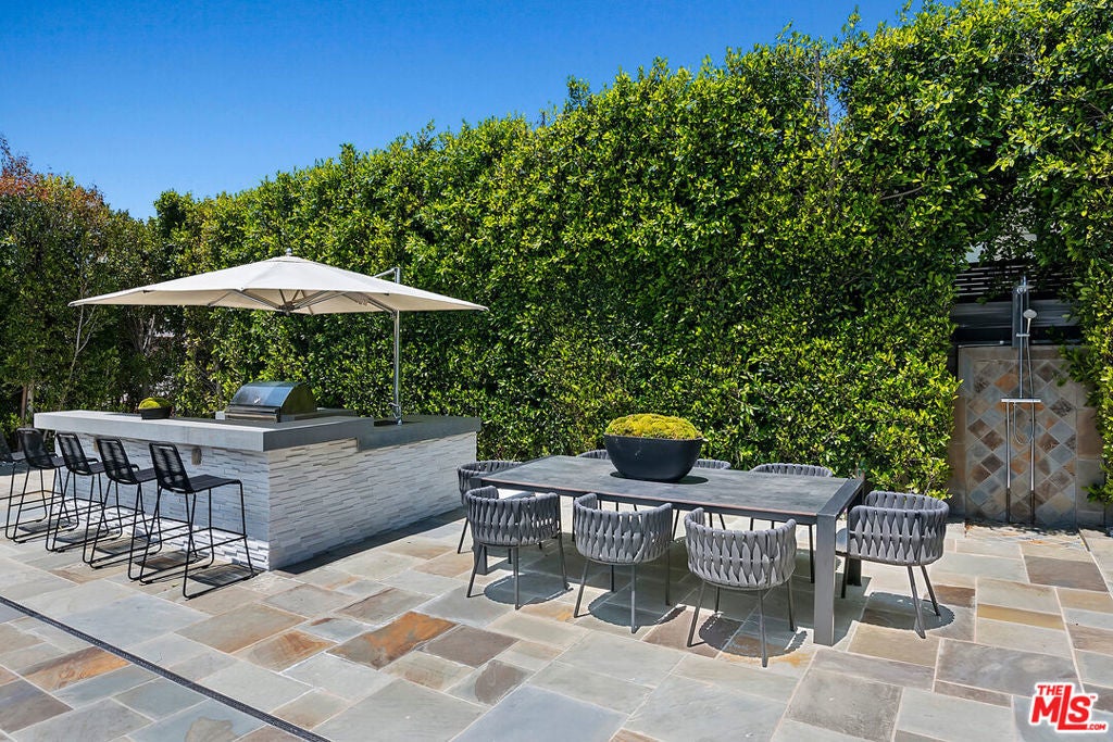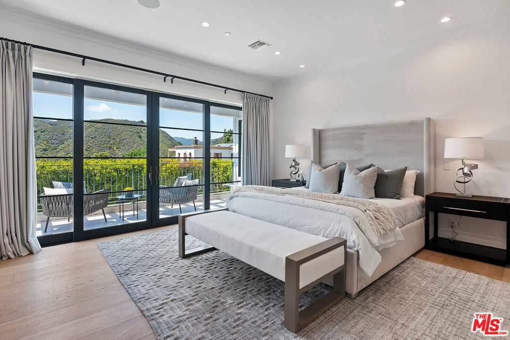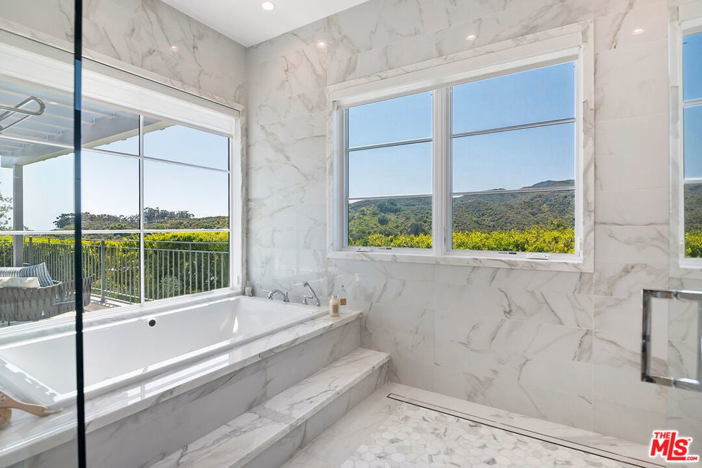 This meticulously crafted estate is located in the highly desirable Riviera of Pacific Palisades, which is known as one of Los Angeles's most sought-after neighborhoods. The house is designed in a grand Nantucket modern style and is surrounded by the beautiful Santa Monica Mountains, allowing for a sun-filled ocean breeze. As you enter the property through tempered glass and iron gates, you are greeted by the stunning 3D white marble exterior. Inside, European oak floors extend throughout the entire house, adding an elegant touch. The main level of the house offers a spacious living room with a fireplace, an open dining room, an office with a separate entrance from the front yard, a guest bedroom suite, Chef's kitchen with top-of-the-line appliances and features an oversized waterfall suede island that serves as a focal point. Slide open the La Cantina pocket doors, and you'll find yourself on the raw bluestone patio, where you can enjoy the zero-edge pool and soak in the serene ambiance. Additionally, there is a custom outdoor BBQ area and a Tuuci lounge canopy, creating a resort-like experience in your own backyard. Moving upstairs, the primary suite is the highlight of the home. It boasts a generous size, a sitting area, a fireplace, and a balcony overlooking the surroundings. The primary bathroom offers dual vanities, a spa shower adorned with lavish Italian Calacatta marble, and a luxurious dressing room. Each of the secondary and third bedrooms also features its own private patio, allowing for an ultimate indoor/outdoor lifestyle. The lower level of the house is designed for entertainment and includes an acoustic theater, a temperature-controlled wine cellar, a bar, a guest bedroom, and a patio area. This level is perfect for hosting gatherings and enjoying leisure activities. In total, this remarkable estate offers 5 bedrooms, 8 bathrooms, and a 6-car collector's garage. For convenience, an elevator connects all three floors, providing easy access to every part of the house. This exquisite property presents an opportunity to embark upon a new chapter of luxurious living, combining elegance, functionality, and the beauty of its natural surroundings.