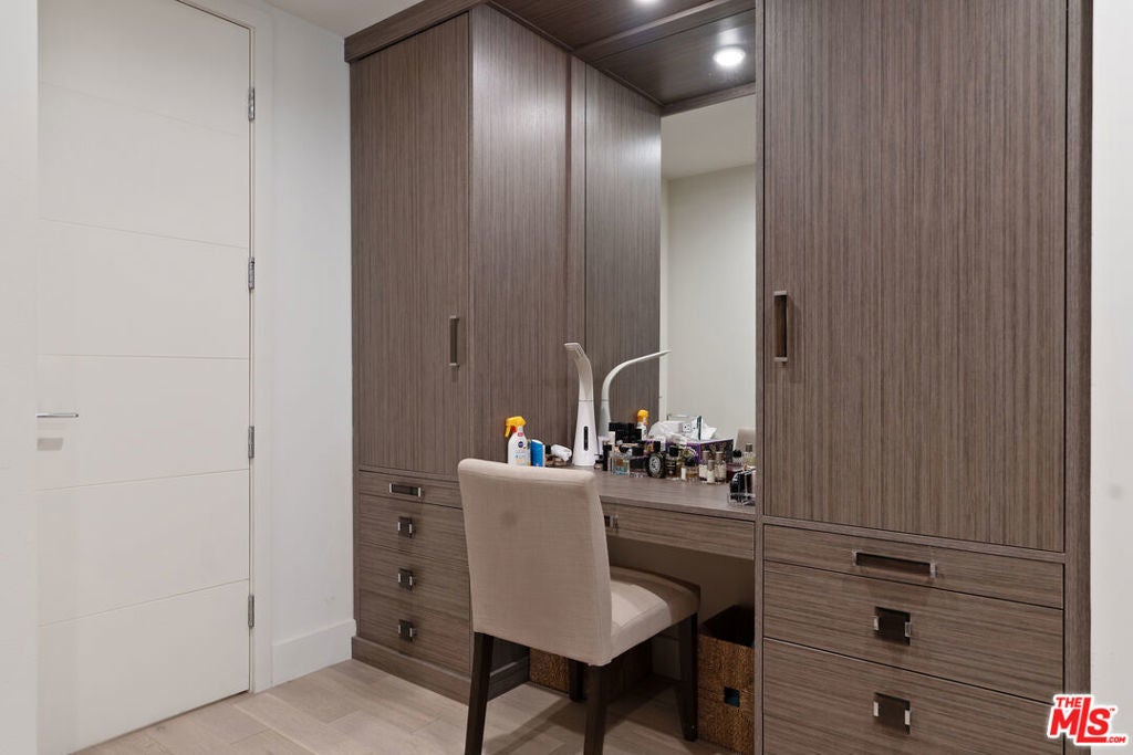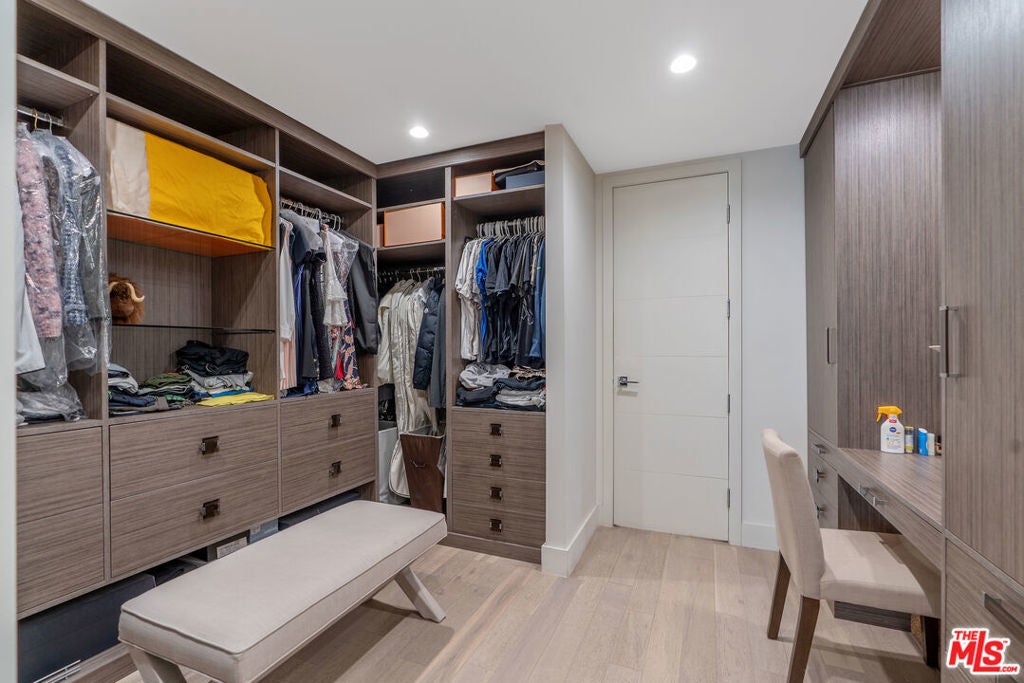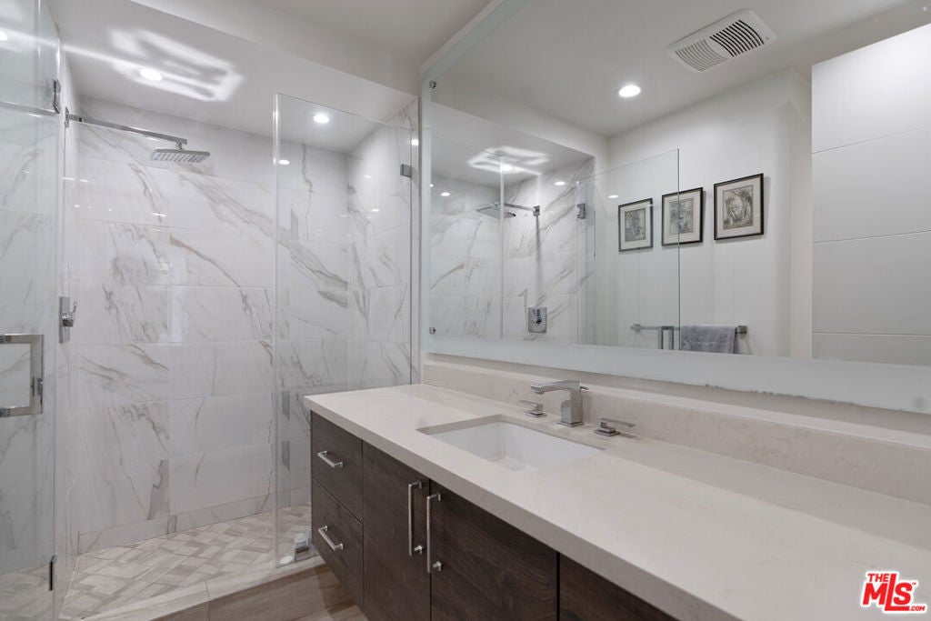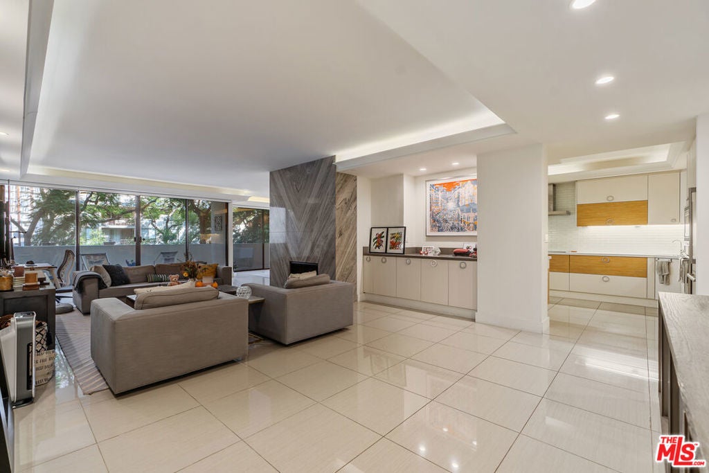 Located in one of Beverly Hills' most respected full-service buildings, this 2,112-square-foot residence has been completely remodeled with a focus on quality and contemporary design. The home features an open, light-filled living room with high ceilings, a marble fireplace, and a large balcony. The adjacent dining area also opens to its own balcony, creating a natural flow for indoor-outdoor living. The kitchen is designed for both style and utility, finished with marble floors, Caesarstone countertops, and high-end stainless steel appliances. The primary suite is a generous retreat that includes a sitting area, hardwood floors, a private balcony, and custom walk-in closets. Its ensuite bath is finished in marble with dual sinks and ample counter space. A second ensuite bedroom with a walk-in closet provides a comfortable and private space for guests or an office. Oakhurst Terrace offers a range of practical and luxury amenities, highlighted by a rooftop deck with a pool, gazebo, and 360-degree views of the city. Residents also benefit from a 24-hour doorman, concierge services, a fitness center, a large community room with a bar and kitchen, guest parking, and the unit comes with two assigned parking spaces + private storage. Ideally situated moments from Rodeo Drive, the Four Seasons, Cedar Sinai, and some of the city's finest dining, shopping, and lifestyle experiences. Truly a must see unit on one of the best streets in a prime neighborhood.