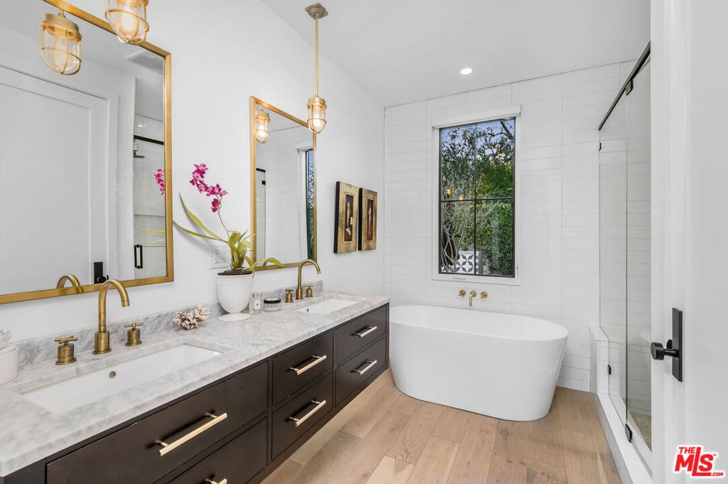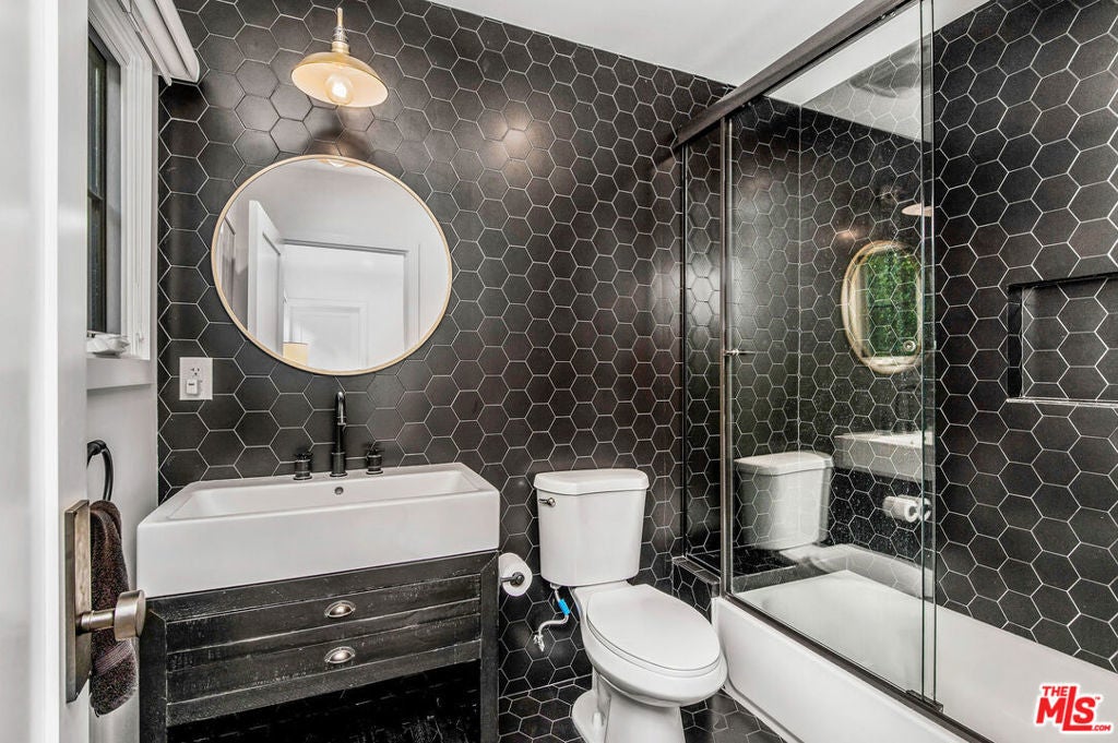 Beautifully reimagined 1940s East Coast traditional residence, meticulously expanded and finished with an eye for both craftsmanship and modern sophistication. The heart of the home is an open-concept living and dining area, anchored by multiple living spaces that offer effortless flow for relaxation and entertaining. A custom kitchen, appointed with top-tier finishes including Viking Pro Line appliances and artisan fixtures, seamlessly integrates with the communal spaces, making it perfect for both casual gatherings and formal occasions. Each of the three bedrooms boasts a spa-inspired en-suite bath, embodying tranquility and elevated design. The primary suite is a true retreat, featuring an expansive walk-in closet and a custom barn door that leads to a sumptuous bath. Floor-to-ceiling, aluminum-clad Lincoln doors open to reveal direct access to the lush backyard. Outdoors, the property transforms into a private oasis framed by high hedges. A resort-style pool with a jacuzzi spa serves as the centerpiece, complemented by a fire pit lounge and ample seating areas designed for alfresco entertaining. The detached finished garageaccessed via bespoke custom carriage doorsoffers flexible use as a studio, office, or guest suite.Additional design highlights include curated fixtures from Rejuvenation Hardware, SchoolHouse Electric, and Emtek, as well as furnishings valued over $100,000, making this turnkey offering truly one-of-a-kind. Situated within the award-winning Colfax Charter School district, this residence is an exquisite blend of character, privacy, and modern luxury.