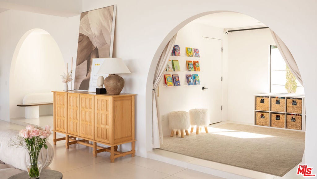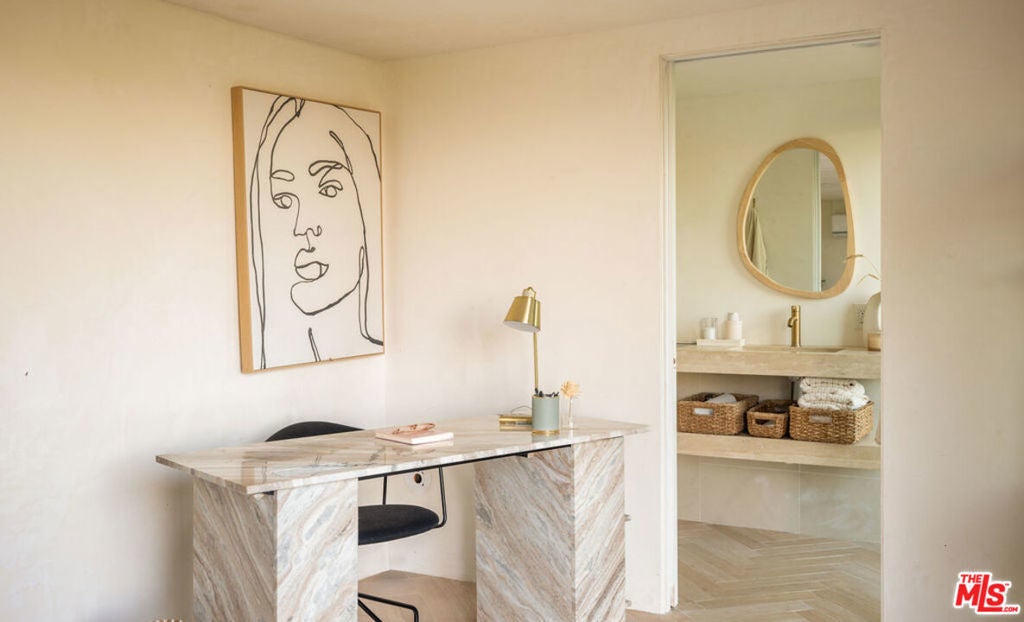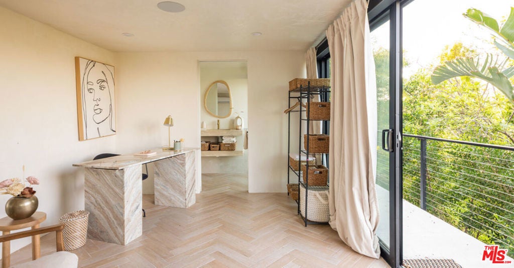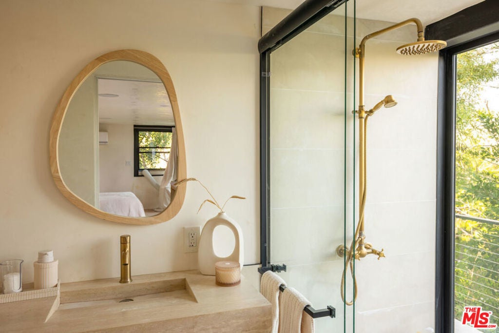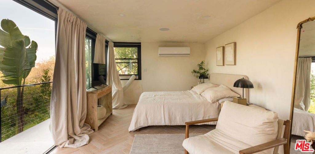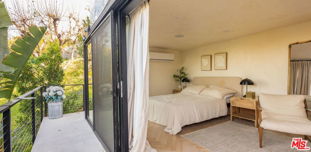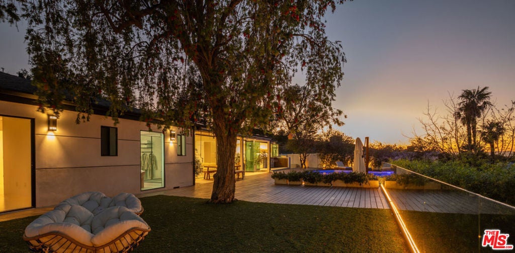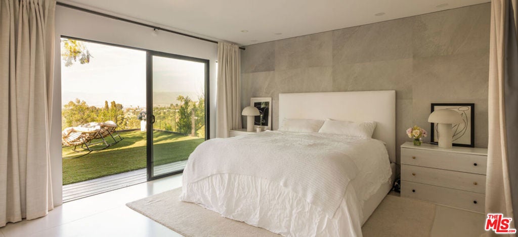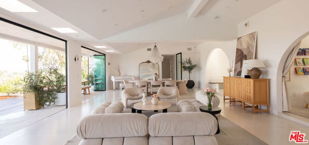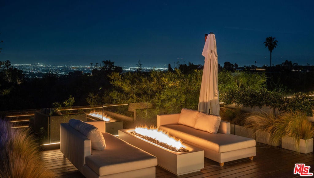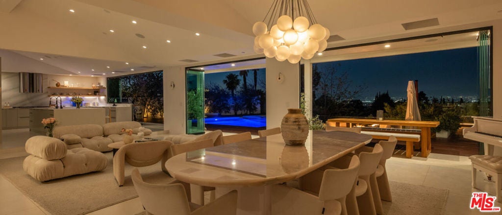Introducing "The Scadlock MCM," an exceptionally renovated Mid-Century Modern residence ideally positioned on one of Sherman Oaks' most coveted view streets, offering breathtaking north-facing valley vistas enjoyed from nearly every vantage point. Rebuilt from the studs with meticulous craftsmanship, this architectural retreat blends timeless designer finishes with modern luxury and thoughtful functionality. Dramatic 14-foot vaulted ceilings with skylights flood the home with natural light, while expansive large-format Italian flooring and custom walnut built-ins create a warm modern aesthetic throughout the living spaces. The chef's kitchen features premium Miele appliances including dual stovetops, double ovens with steam capability, warming drawers, and a built-in espresso system, complemented by a Sub-Zero refrigeration system and striking Neolith Spanish stone waterfall countertops. Designed for privacy and comfort, the home features SolidCore accordion glass doors, sound-insulated interior walls, and glass hallway doors separating the sleeping quarters from the main entertaining areas. Outdoor living showcases a saltwater infinity-edge pool with Baja shelf, wood decking, fire pit lounge, and outdoor kitchen, surrounded by mature citrus trees. A private detached guest house evokes the feeling of a Bali treehouse retreat, ideal for guests, studio, or wellness space. A dedicated fitness room frames the valley views while a fixed glass panel into the garage creates a striking architectural car gallery moment. Additional amenities include 400-amp electrical service, Lutron smart lighting, Sonos audio, EV charging capability, and advanced fire protection safeguards featuring roof-mounted sprinkler systems and perimeter fire defense protection. Located within the award-winning Roscomare Road Elementary School District and close to the premier dining, shopping, and entertainment the Valley has to offer, with convenient access to the Westside and Beverly Hills. Truly one of the most compelling offerings in the area at this price point.
