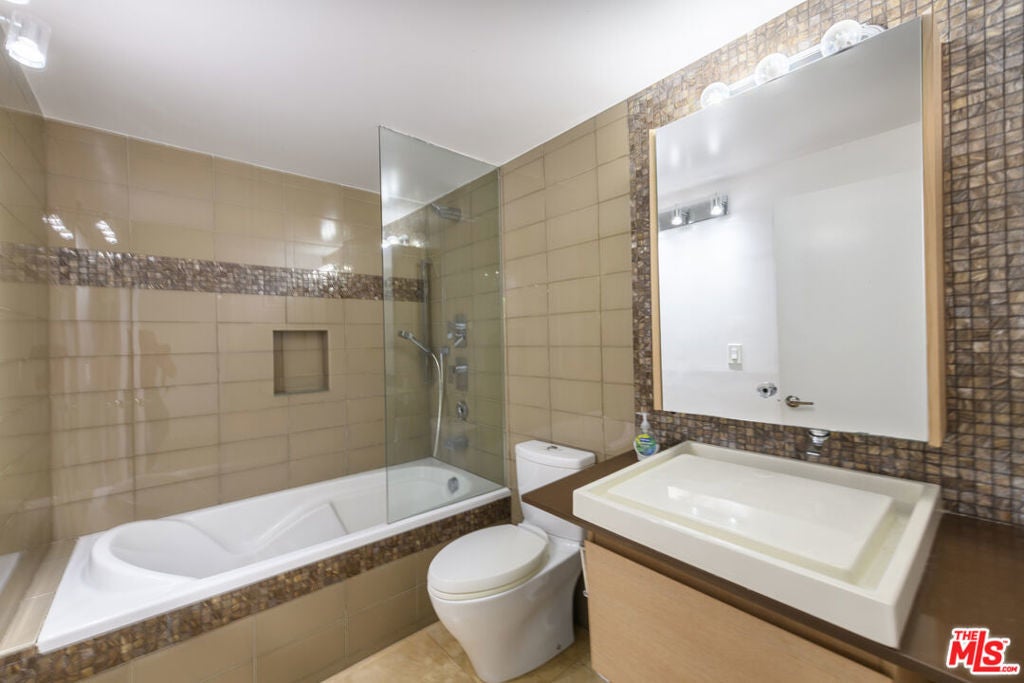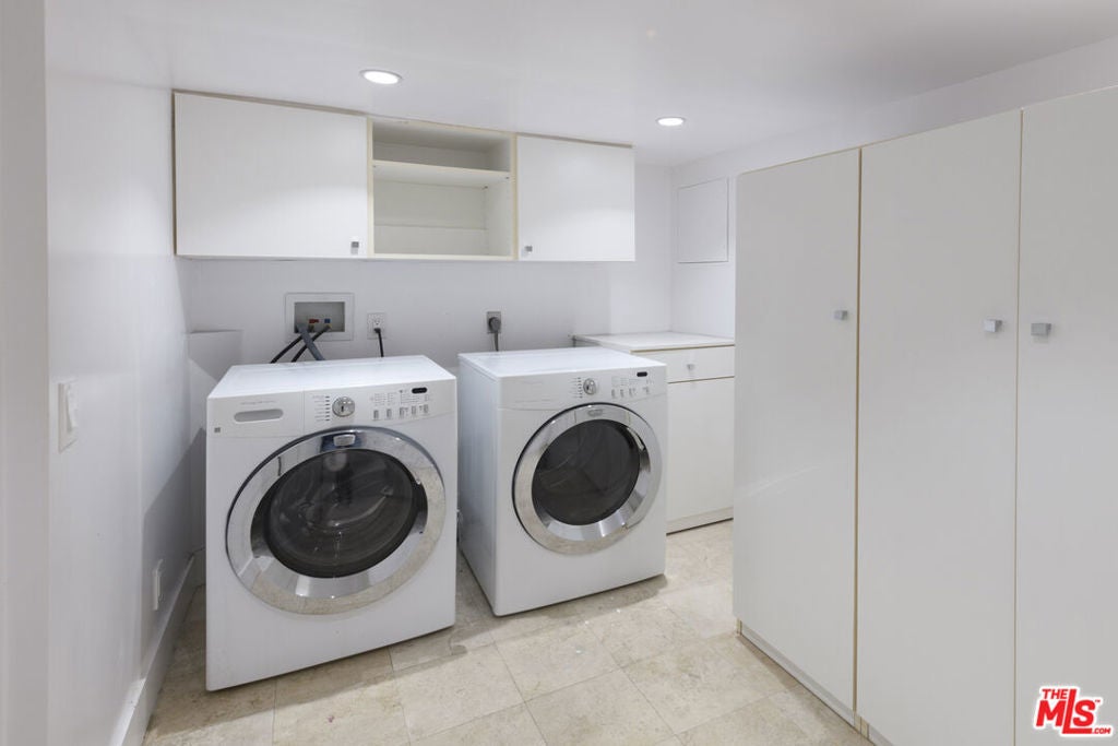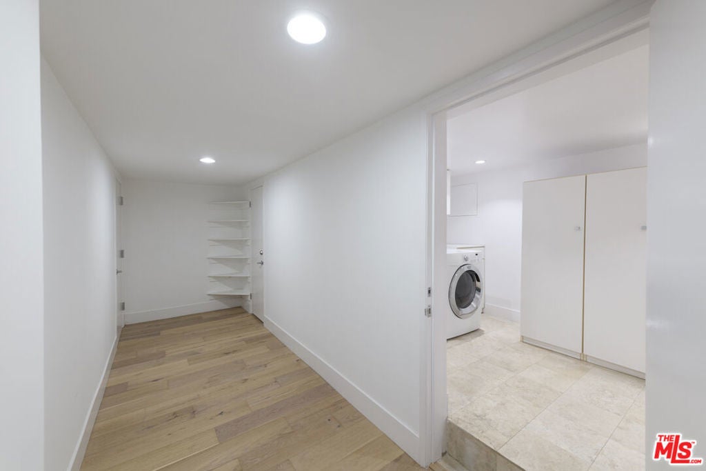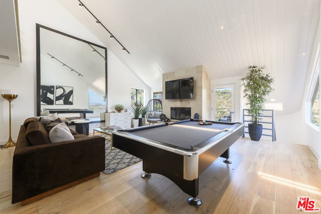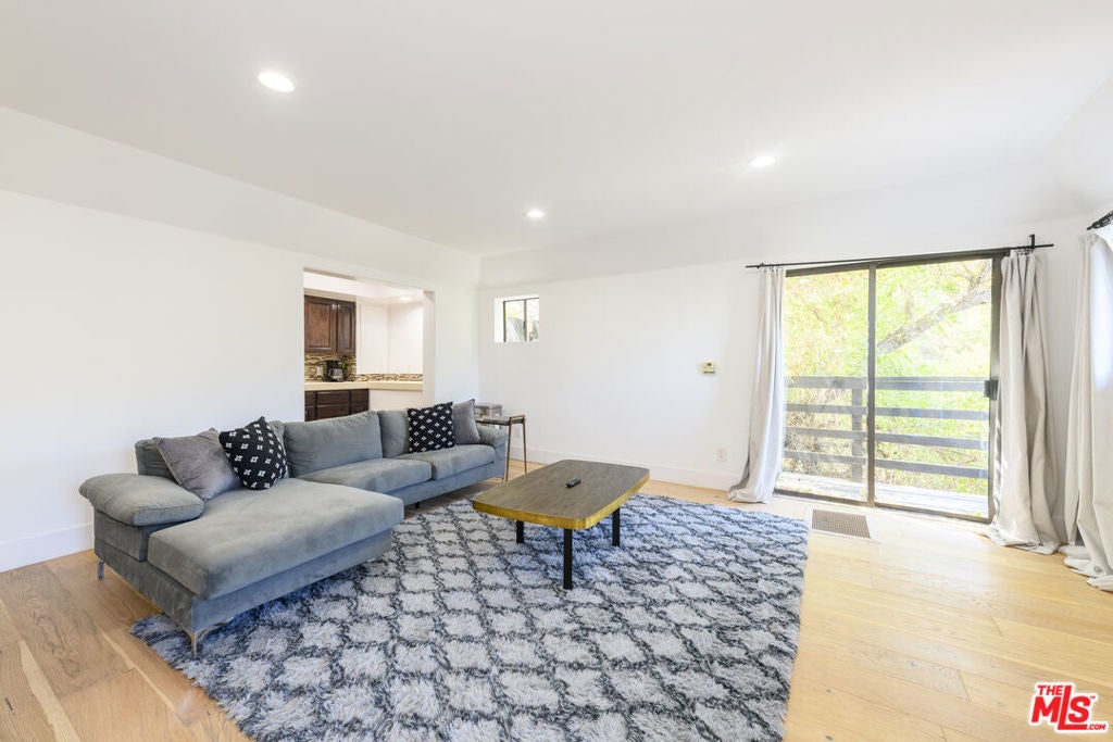 In a secluded part of the Hollywood Hills, enjoy views of the Hills, Hollywood Sign, and the Griffith Observatory from this 5 bedroom/5.5 bath, contemporary home. Tons of light pours into the house from oversized windows and skylights. Welcomed by incredible volume and a huge living room with a fireplace, wet bar, and a tremendous outdoor terrace. Super modern kitchen jeweled with stainless steel Bosch appliances, walk-in pantry, and a breakfast area. Adjacent is the formal dining room and office nook. All bedrooms are primary-sized suites with full baths. One of the suites has a private entrance with its own kitchenette (use as a separate ADU). Main primary suite boasts dual shower, separate spa tub, cedar walk-in closet, and a huge outdoor deck. Secure and gated. Other features include French oak floors, tons of storage area, 2-car garage, and (2) sets of washer-dryers. Great space for guests, tenants, studio, gym, and/or office space. Just minutes away from the heart of Hollywood, West Hollywood, Studio City, and easy SFV access.