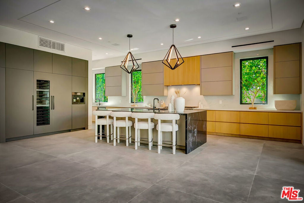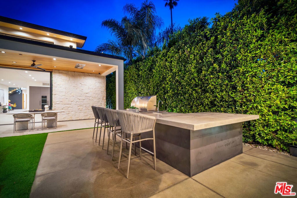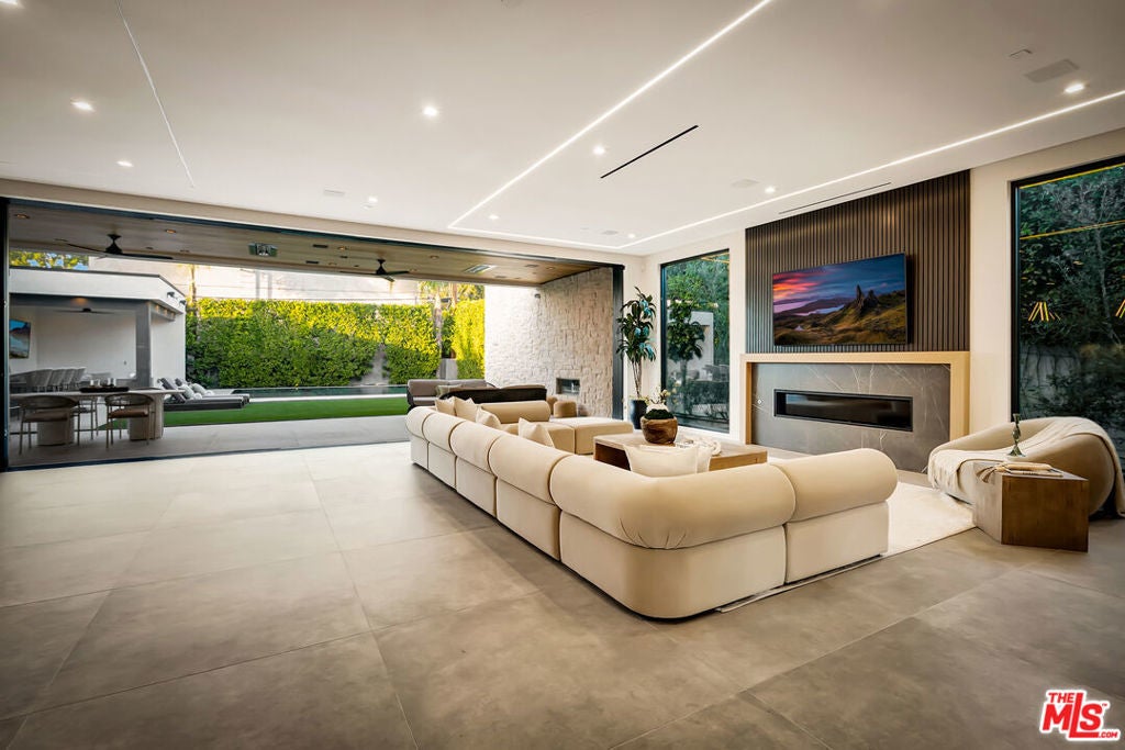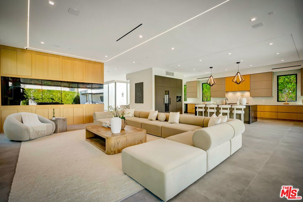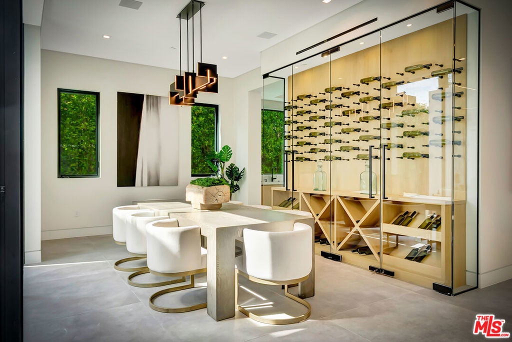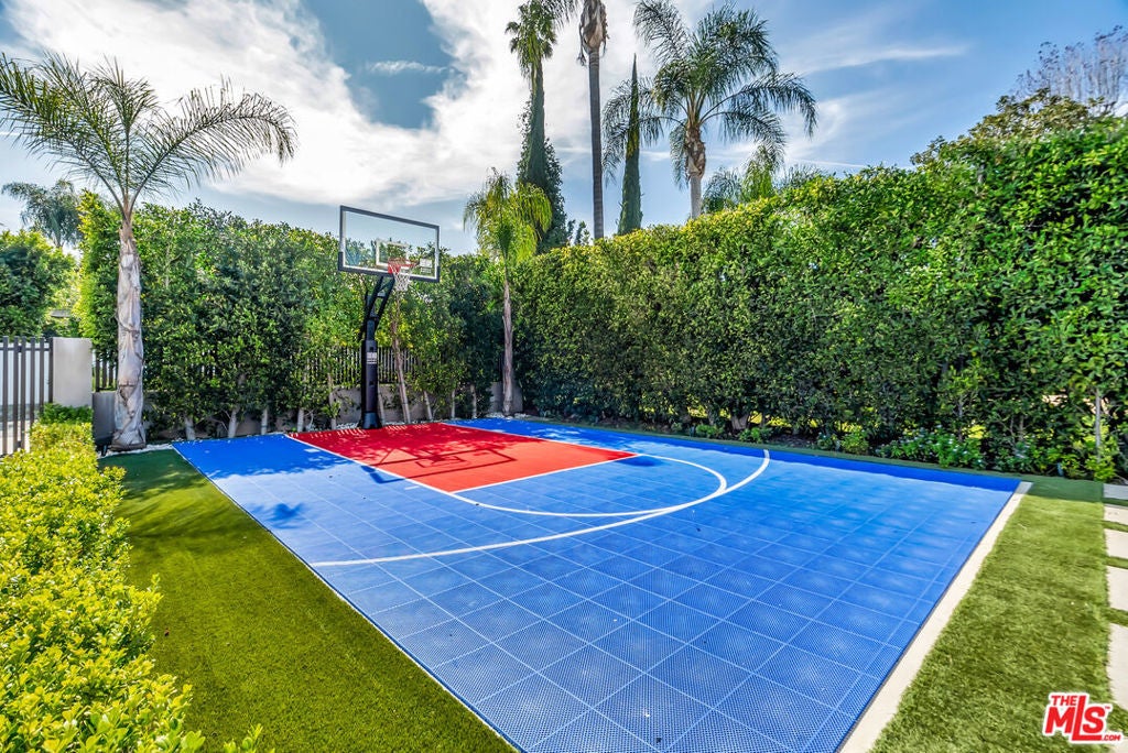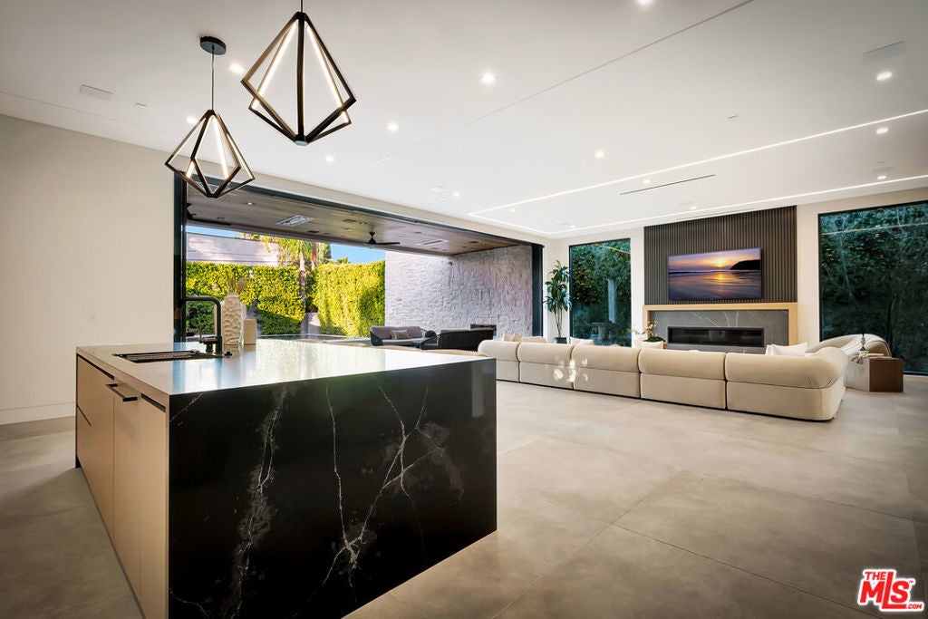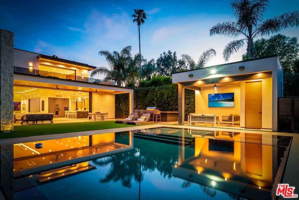 Sleek, modern newer construction in the heart of Encino, located within the sought-after Hesby Oaks School District and just moments from Ventura Blvd. This gated and private residence offers over 7,000 square feet of thoughtfully designed living space on a 12,000+ square foot lot and is equipped with solar panels for added energy efficiency. The home features 6 bedrooms, 7.5 bathrooms, and a well-designed open floor plan that connects the main living areas, creating a functional layout ideal for entertaining and comfortable daily use. The oversized kitchen is equipped with high-end appliances, custom cabinetry, generous counter space, and a large center island that anchors the home. Additional highlights include a sports court, private theater, a built-in aquarium, and a striking wine display feature that adds visual interest to the interior. Large sliding doors open to a spacious covered patio, extending the living space outdoors. The backyard is designed for entertaining, complete with a fire pit, built-in BBQ, pool and spa, pool cabana with an outdoor bathroom. Offering scale, privacy, and a prime location in one of Encino's most desirable neighborhoods, this property combines modern design with practical functionality just minutes from Ventura Blvd's dining and shopping.