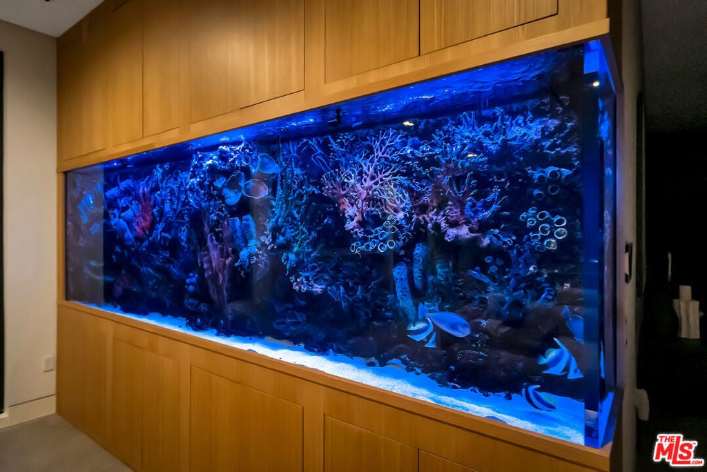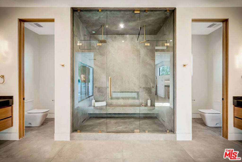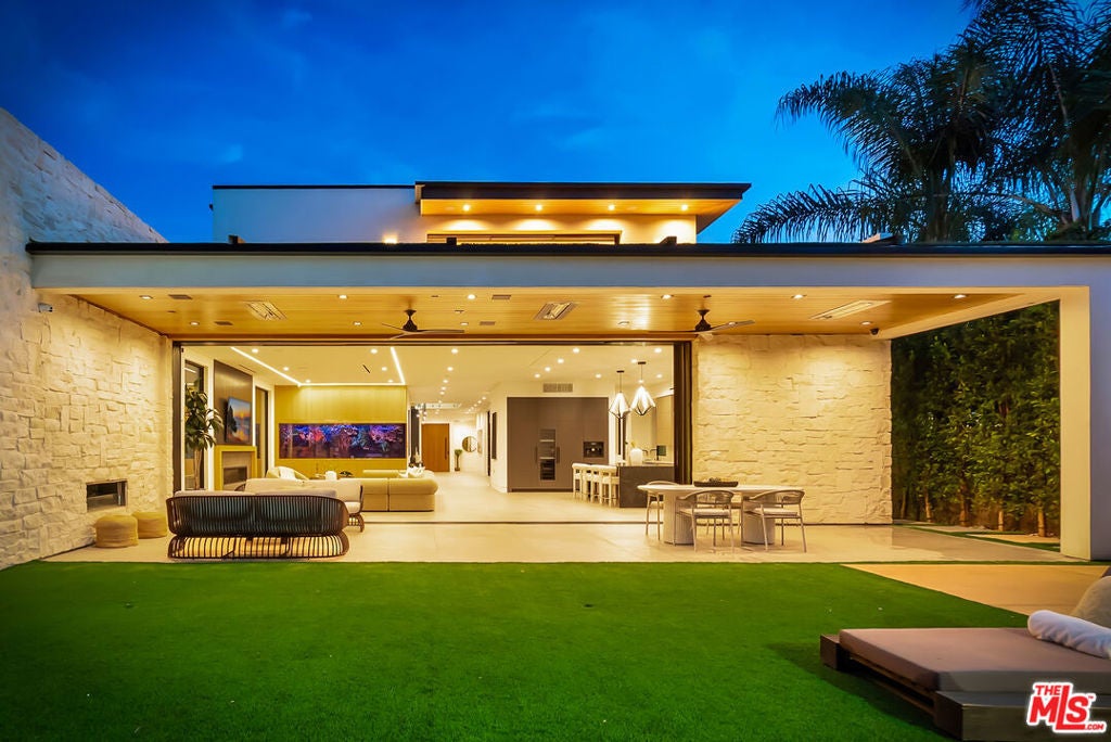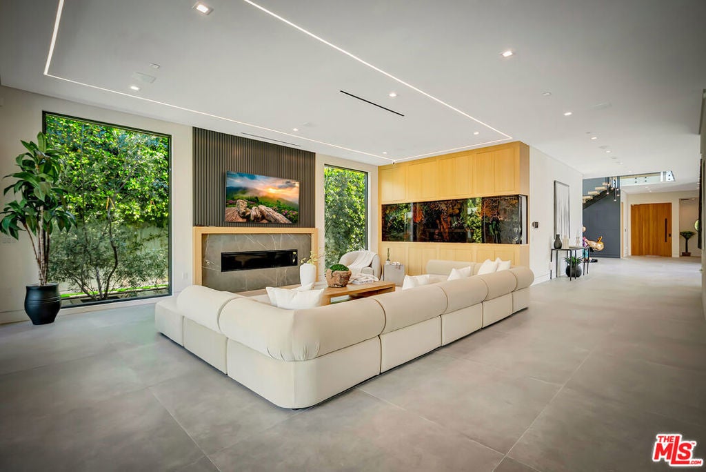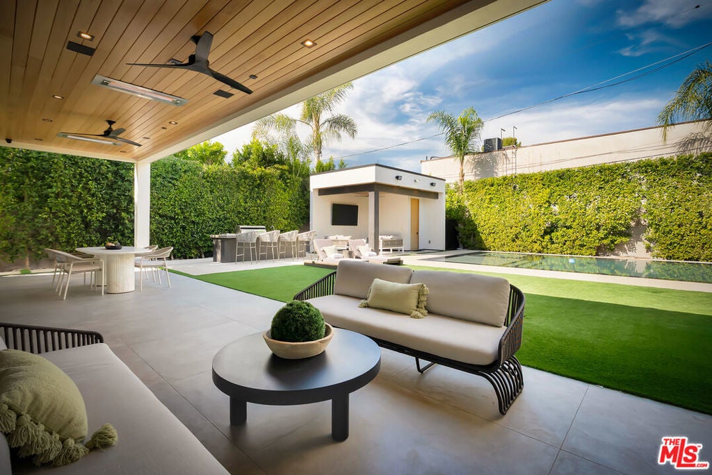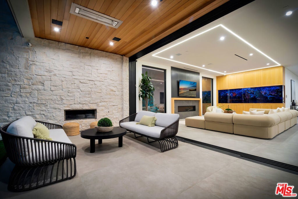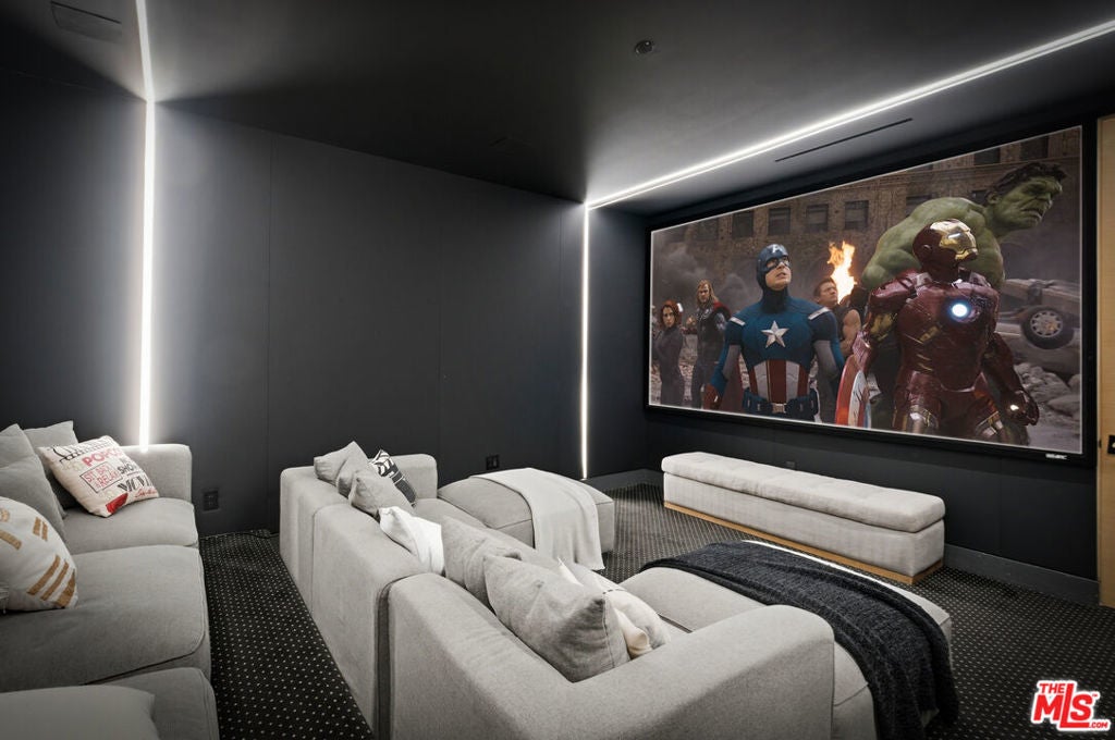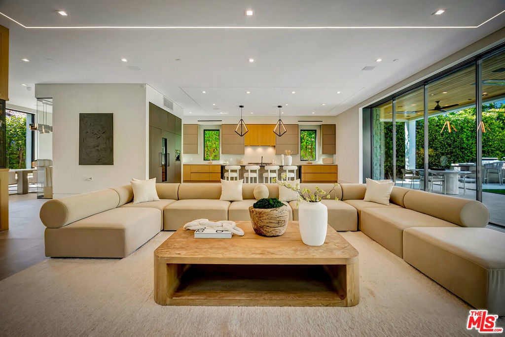 Sleek, modern newer construction in the heart of Encino, located within the sought-after Hesby Oaks School District and just moments from Ventura Blvd. This gated and private residence offers over 7,000 square feet of thoughtfully designed living space on a 12,000+ square foot lot and is equipped with solar panels for added energy efficiency. The home features 6 bedrooms, 7.5 bathrooms, and a well-designed open floor plan that connects the main living areas, creating a functional layout ideal for entertaining and comfortable daily use. The oversized kitchen is equipped with high-end appliances, custom cabinetry, generous counter space, and a large center island that anchors the home. Additional highlights include a sports court, private theater, a built-in aquarium, and a striking wine display feature that adds visual interest to the interior. Large sliding doors open to a spacious covered patio, extending the living space outdoors. The backyard is designed for entertaining, complete with a fire pit, built-in BBQ, pool and spa, pool cabana with an outdoor bathroom. Offering scale, privacy, and a prime location in one of Encino's most desirable neighborhoods, this property combines modern design with practical functionality just minutes from Ventura Blvd's dining and shopping.