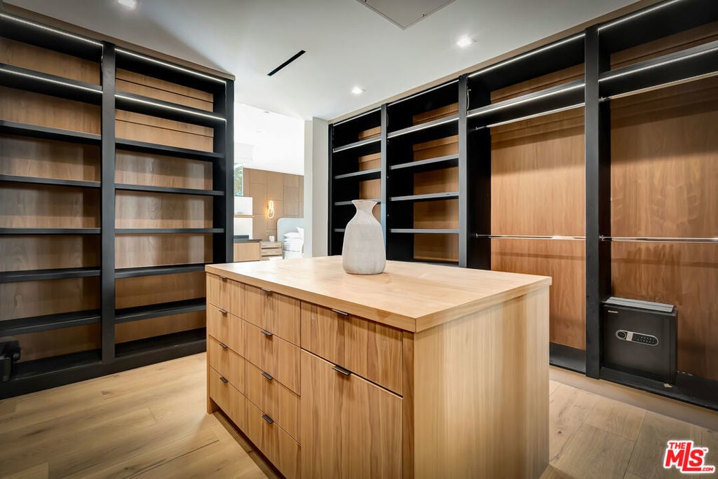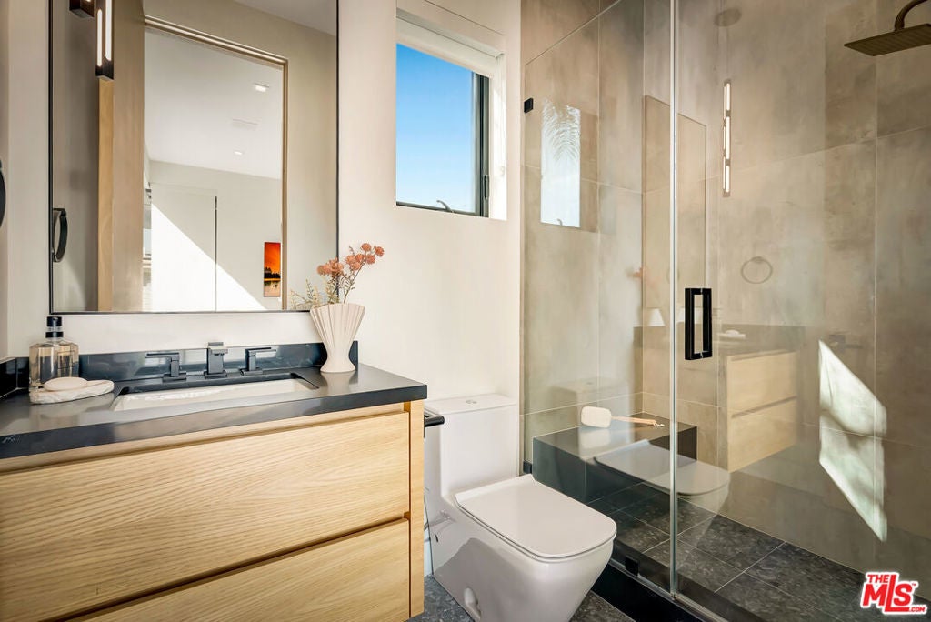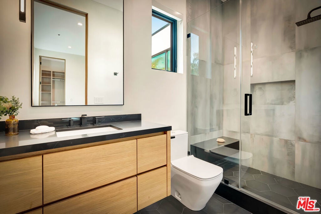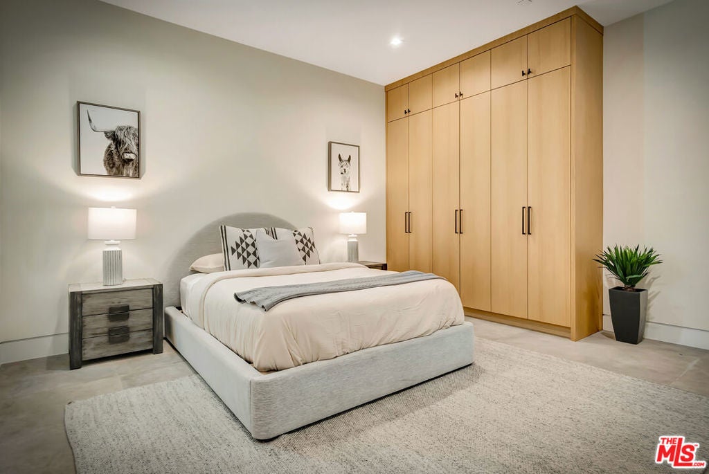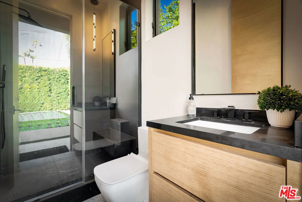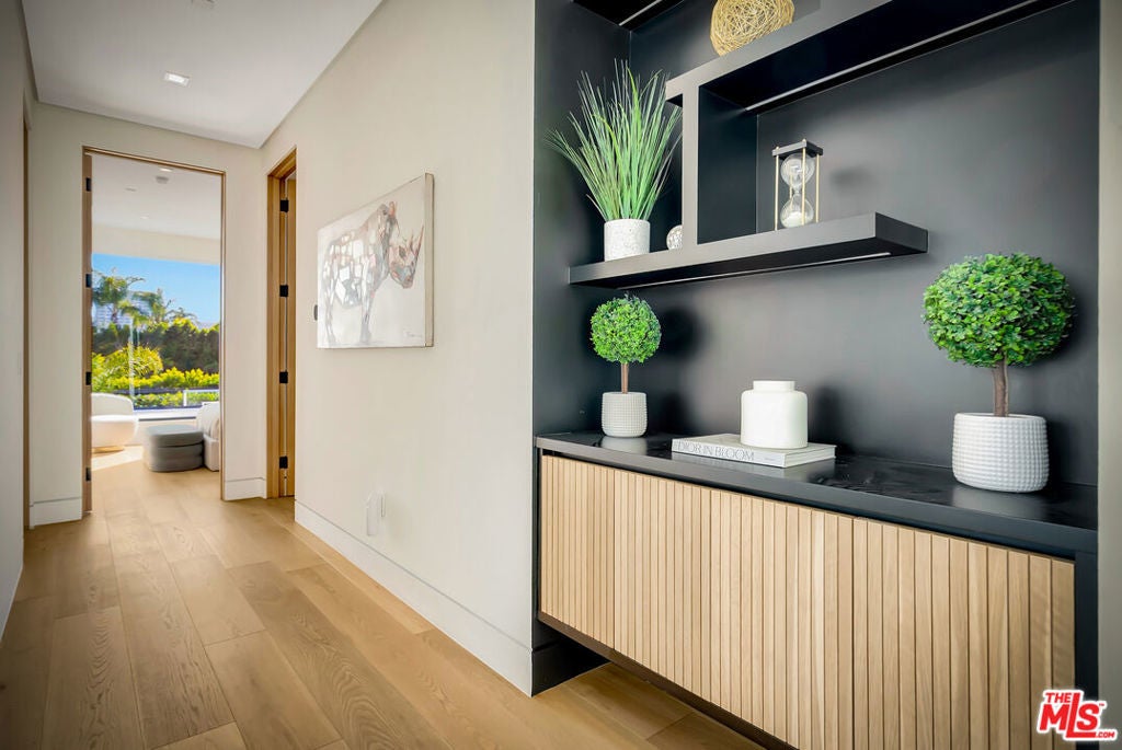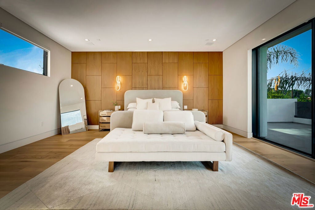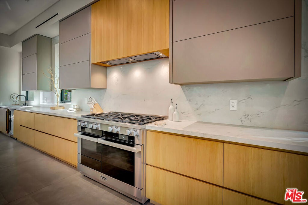 Sleek, modern newer construction in the heart of Encino, located within the sought-after Hesby Oaks School District and just moments from Ventura Blvd. This gated and private residence offers over 7,000 square feet of thoughtfully designed living space on a 12,000+ square foot lot and is equipped with solar panels for added energy efficiency. The home features 6 bedrooms, 7.5 bathrooms, and a well-designed open floor plan that connects the main living areas, creating a functional layout ideal for entertaining and comfortable daily use. The oversized kitchen is equipped with high-end appliances, custom cabinetry, generous counter space, and a large center island that anchors the home. Additional highlights include a sports court, private theater, a built-in aquarium, and a striking wine display feature that adds visual interest to the interior. Large sliding doors open to a spacious covered patio, extending the living space outdoors. The backyard is designed for entertaining, complete with a fire pit, built-in BBQ, pool and spa, pool cabana with an outdoor bathroom. Offering scale, privacy, and a prime location in one of Encino's most desirable neighborhoods, this property combines modern design with practical functionality just minutes from Ventura Blvd's dining and shopping.