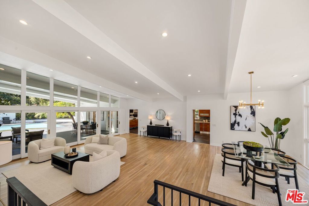 Unique Single-Story Contemporary luxury living home. 4 Bedroom, 3 baths plus an office in the most desirable location. Live amongst celebrities just minutes from the gated Beverly Park Estates & near the iconic Beverly Hills Hotel. Renovated w/ the finest materials. Welcome entry, magnificent high ceiling w/ barn beams, exquisite open dining & family room lead to walls of glass that open up to a covered patio, very spacious & private flat paradise backyard w/ sparkling pool, built-in wood burning barbecue & pizza oven. Perfect indoor/outdoor living & great for entertaining. Stunning new chef's kitchen w/ Viking stainless-steel appliances & top-of-the-line imported Italian cabinets. Laundry room w/ sink & lots of cabinets. Grand primary suite w/ two separate dual walk-in closets and private office. Primary bath w/ jetted spa tub & separate large shower w/ double sink. Three additional spacious bedrooms & baths. Warner Avenue Elementary school district!