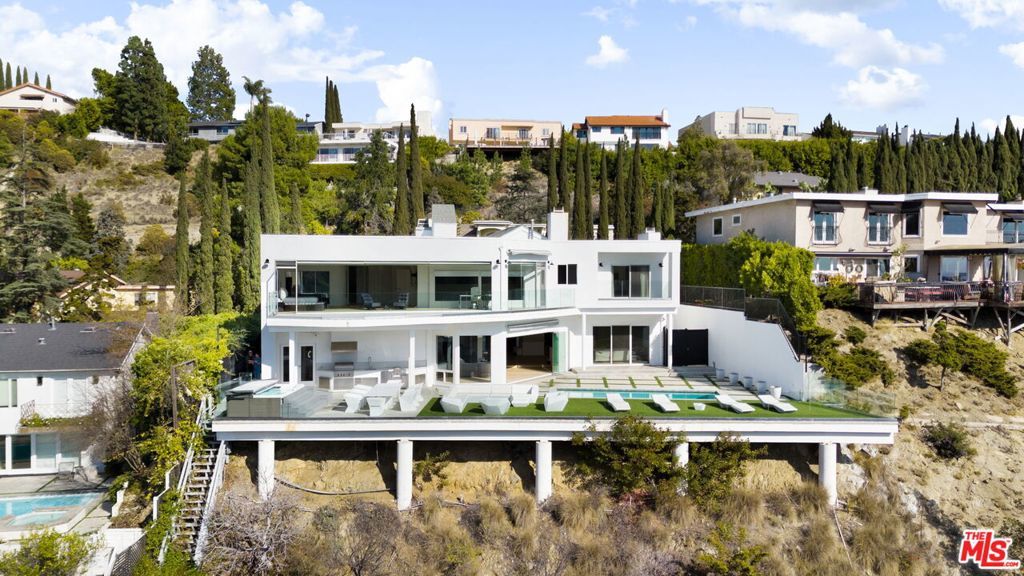 A stunning contemporary, perched atop the city with panoramic views to the ocean. Quietly sited in Mt. Olympus, but only a moment from the Sunset strip and all the city has to offer. Public rooms on the ground level that open out to the pool with western exposure that baths the house in light throughout the day and offers unmatched sunsets. A primary suite with a wall of windows that frame the Hollywood Hills and the city below, and an ensuite bathroom with 2 walk in closets, a steam shower and soaking tub. In total 3 ensuite bedrooms upstairs, and a 4th bedroom/office on the ground level. Perfect for entertaining; easy access and the rarity of ample parking in hills - all located in the heart of the city. This is consummate Indoor-outdoor living at its finest - privacy and proximity - the best of life in LA.