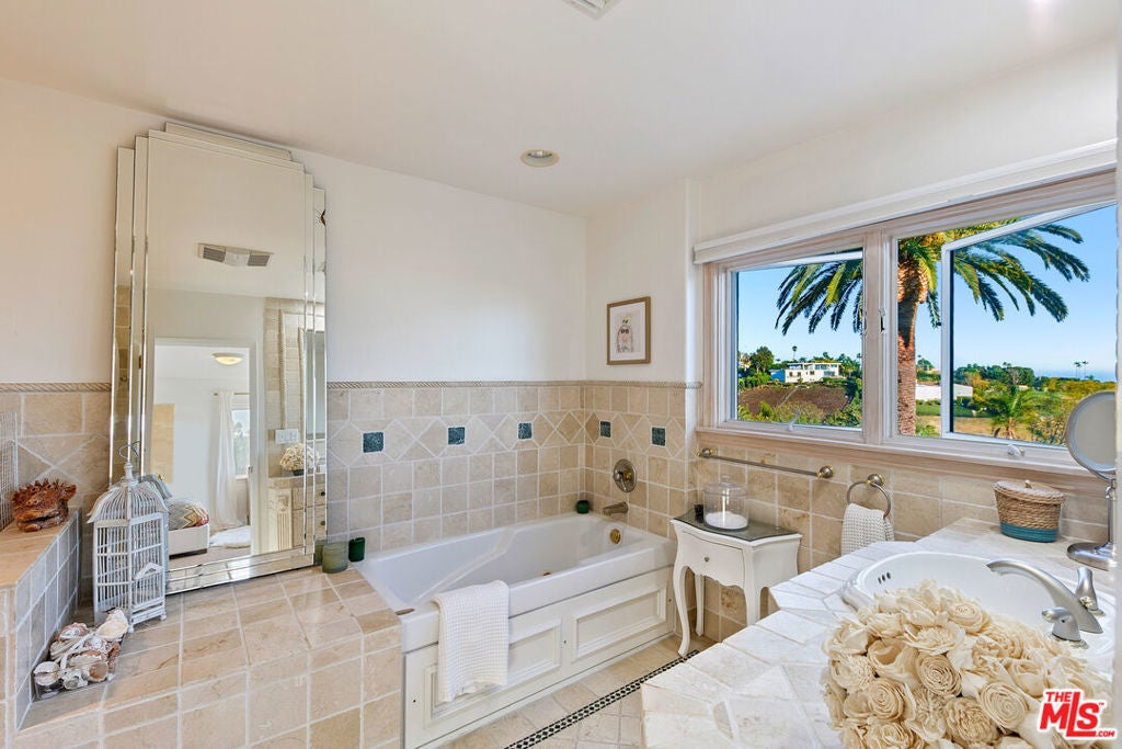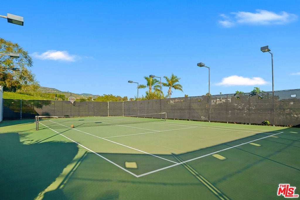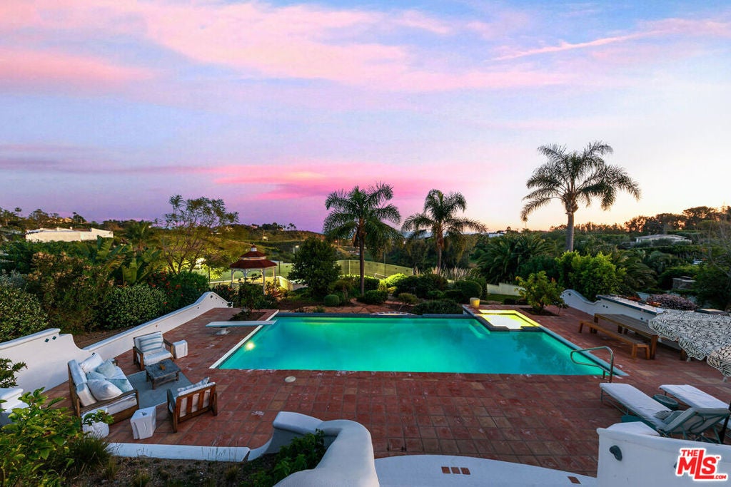 Sitting on nearly an acre, this exceptional home offers sweeping ocean views, resort-like amenities, and privacy within gated Cavalleri estates. A double gated driveway opens to a beautifully landscaped property designed for relaxation and grand-scale entertaining. The light-filled residence captures the essence of coastal living, with expansive patios and outdoor spaces that take full advantage of the stunning surroundings. The ocean view primary is on the entry level, along with another bedroom and bath. Upstairs are two more bedrooms, both en-suite, along with a huge bonus room, also with beautiful ocean and hillside views. A sparkling pool and spa sit at the heart of the grounds, complemented by a lighted tennis court, lush lawns, and vibrant gardens dotted with mature fruit trees. Multiple outdoor gathering areas create the perfect setting for hosting, including a charming outdoor fireplace lounge and a barbecue area ideal for sunset dinners and weekend gatherings. The generous grounds, which are fully walled and gated, provide a sense of serenity and seclusion while still being just minutes from Malibu's shops, restaurants, and beaches. Private, picturesque, and designed for effortless indoor-outdoor living, this Mediterranean retreat offers the ultimate Malibu lifestyle whether enjoying quiet coastal mornings or entertaining under the stars.
