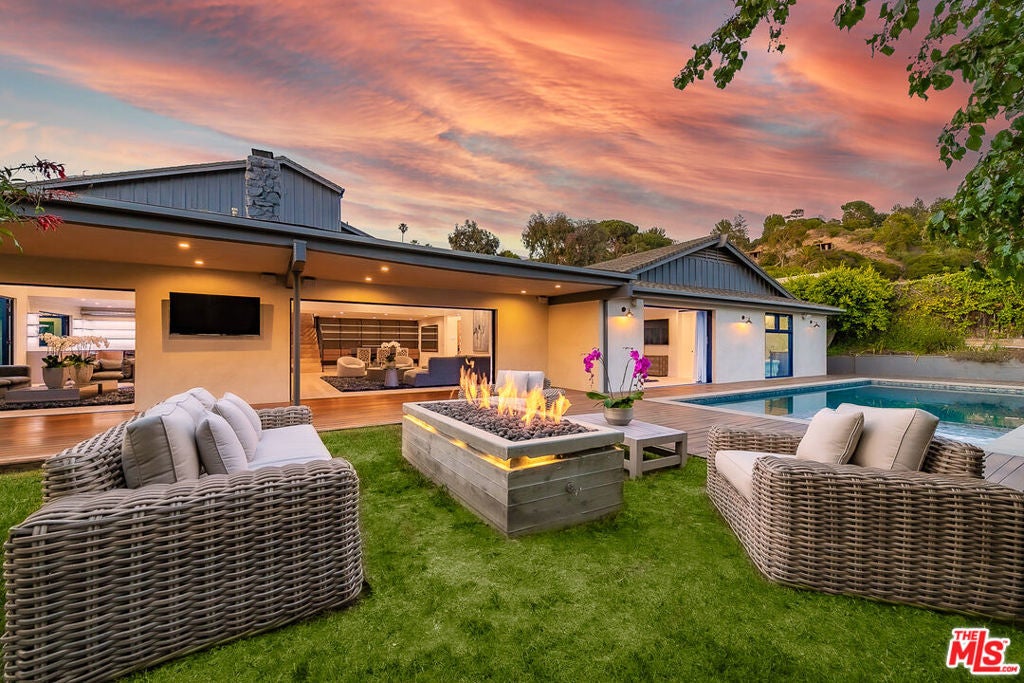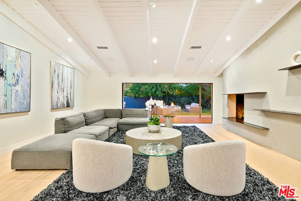 Stunning Mid-Century Modern farmhouse with seamless 6,500 Sq. ft. of indoor/outdoor living. This brand new remodeled home is located on a quiet cul-de-sac in prime Trousdale Estates in Beverly Hills. The 1st floor offers a beautiful, bright open floor plan w/ high ceilings at the entry, recessed lighting throughout, and hardwood & tile flooring. A gourmet kitchen w/ high-end appliances opens to a private, grassy patio. A dual-sided fireplace centers the living room & family room, leading to a magnificent, private backyard w/ pool, sun deck, & fire pit lounge. The backyard features lush landscaping w/ mature, architectural trees & complete privacy. The 2nd floor has an expansive entertainment room with a patio overlooking majestic views! There is a 5th bedroom/ office on the 2nd-floor w/ full bath & wet bar. This beautiful property has its own unique touches, and meticulous attention to detail, and is the quintessential example of California Indoor/Outdoor living. Available for long term rentals and/or short term rentals with flexible lease terms.
