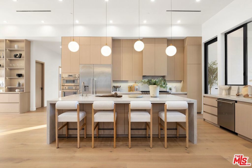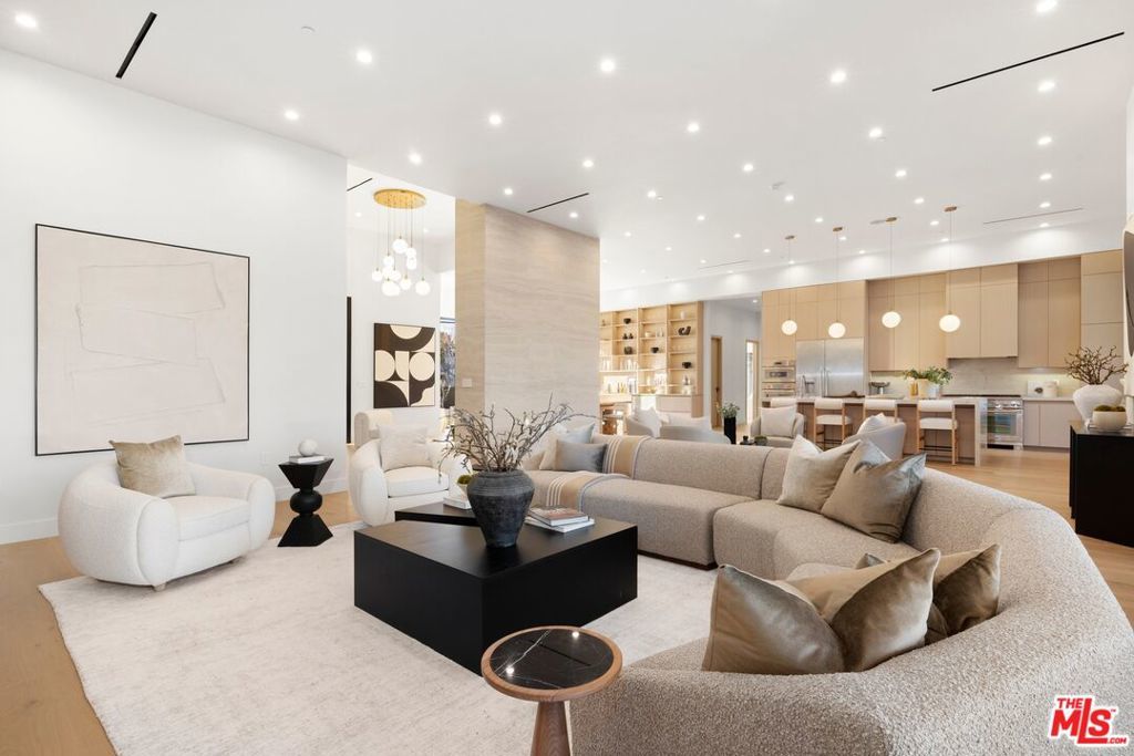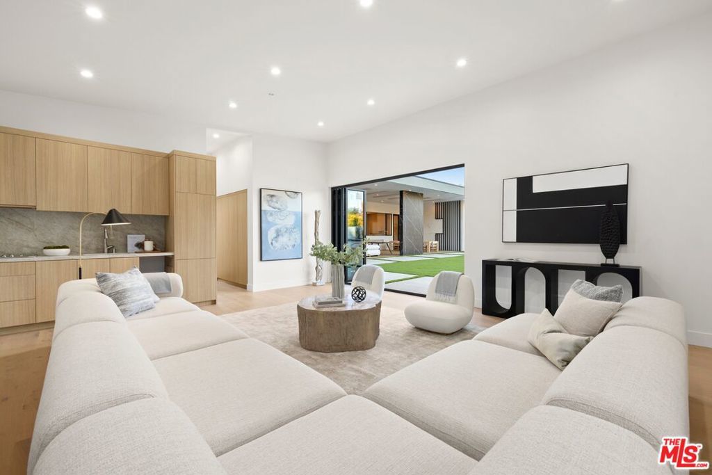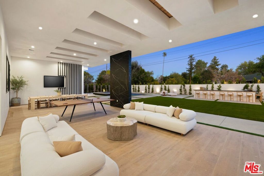 Presenting a rare and exceptional newly constructed single-story architectural residence, thoughtfully designed to deliver refined modern living and seamless indoor-outdoor sophistication in one of Woodland Hills' most coveted settings. Set on a flat 17,847sqft lot, this striking estate offers contemporary elegance, exceptional craftsmanship, and an effortless lifestyle tailored for both everyday comfort and elevated entertaining. A dramatic entry leads into an expansive open concept interior where living, dining, and culinary spaces flow beautifully together, enhanced by sliding pocketing doors that open to a generous covered patio. The chef's kitchen is appointed with top of the line appliances, custom cabinetry, and an oversized island, complemented by a fully equipped butler's kitchen for discreet prep and service. A temperature controlled wine cellar sits alongside the dining area, serving as both a functional element and architectural statement. The residence features 6 bedrooms and 6.5 bathrooms, with each bedroom offering its own en-suite bath for privacy and comfort. A dedicated private office and a state of the art home theater provide refined spaces for work and leisure. The primary suite is a serene retreat overlooking the backyard oasis, with direct views of the pool and spa, a spa inspired bathroom, and expansive his and her walk-in closets. Finishes have been carefully curated, showcasing natural stone surfaces, wide plank hardwood flooring, quartzite slabs, custom tilework, and designer lighting, reflecting superior quality and timeless taste throughout. Presenting a rare and exceptional newly constructed single-story architectural residence, thoughtfully designed to deliver refined modern living and seamless indoor-outdoor sophistication in one of Woodland Hills' most coveted settings. Set on a flat 17,847sqft lot, this striking estate offers contemporary elegance, exceptional craftsmanship, and an effortless lifestyle tailored for both everyday comfort and elevated entertaining. A dramatic entry leads into an expansive open concept interior where living, dining, and culinary spaces flow beautifully together, enhanced by sliding pocketing doors that open to a generous covered patio. The chef's kitchen is appointed with top of the line appliances, custom cabinetry, and an oversized island, complemented by a fully equipped butler's kitchen for discreet prep and service. A temperature controlled wine cellar sits alongside the dining area, serving as both a functional element and architectural statement. The residence features 6 bedrooms and 6.5 bathrooms, with each bedroom offering its own en-suite bath for privacy and comfort. A dedicated private office and a state of the art home theater provide refined spaces for work and leisure. The primary suite is a serene retreat overlooking the backyard oasis, with direct views of the pool and spa, a spa inspired bathroom, and expansive his and her walk-in closets. Finishes have been carefully curated, showcasing natural stone surfaces, wide plank hardwood flooring, quartzite slabs, custom tilework, and designer lighting, reflecting superior quality and timeless taste throughout. Outdoors, a resort-style sanctuary awaits, featuring a sparkling pool and spa, expansive lounge and dining areas, and a built-in BBQ bar ideal for relaxed afternoons or sophisticated evening gatherings. Completing the property is a newly constructed approximately 600 sq.ft. accessory dwelling unit (ADU) with its own address, a full kitchen and bathroom, and tranquil views into the backyard, offering exceptional flexibility for guests, extended family, rental income, or a private office or studio. A newly constructed single-story estate of this caliber, design, and setting enhanced by a fully independent ADU is exceptionally rare in Woodland Hills. This is modern luxury living at its finest.