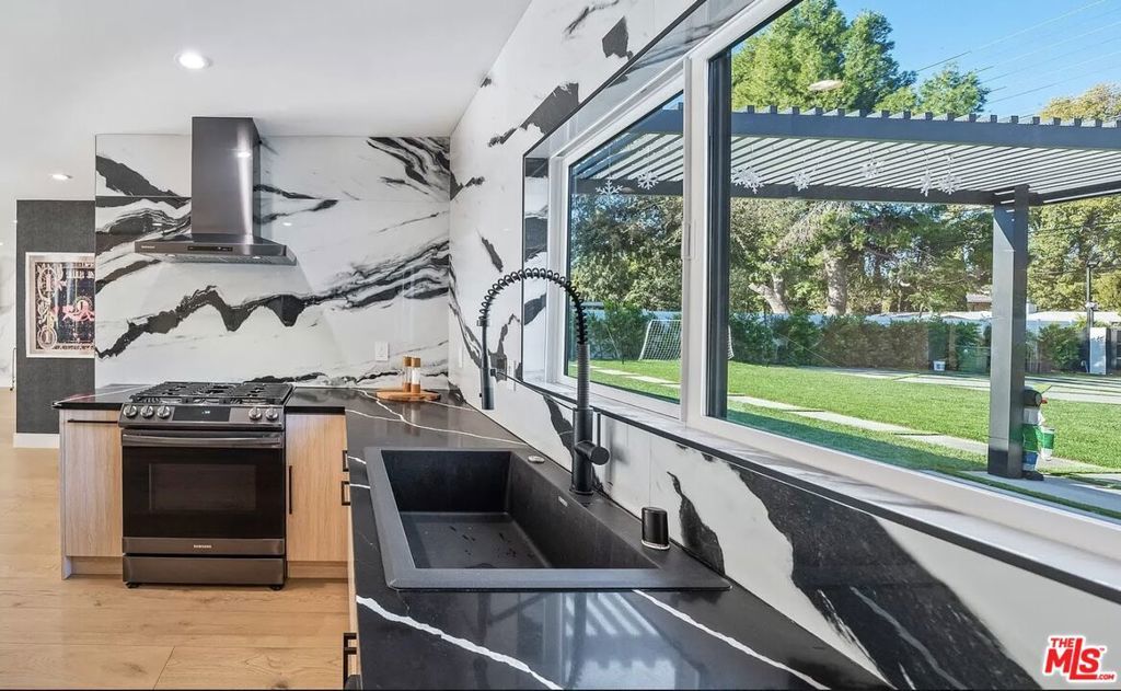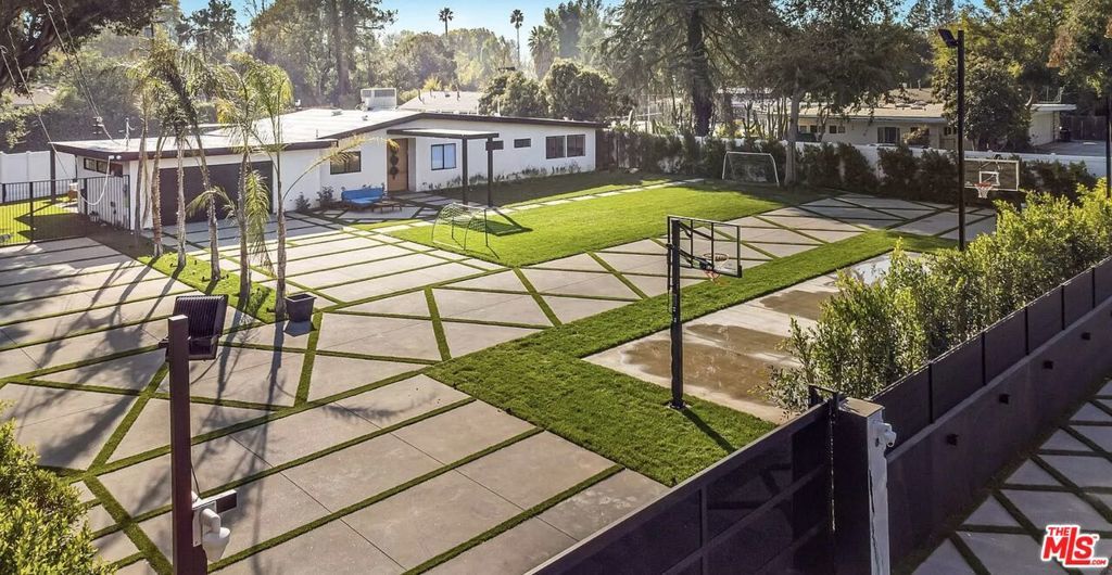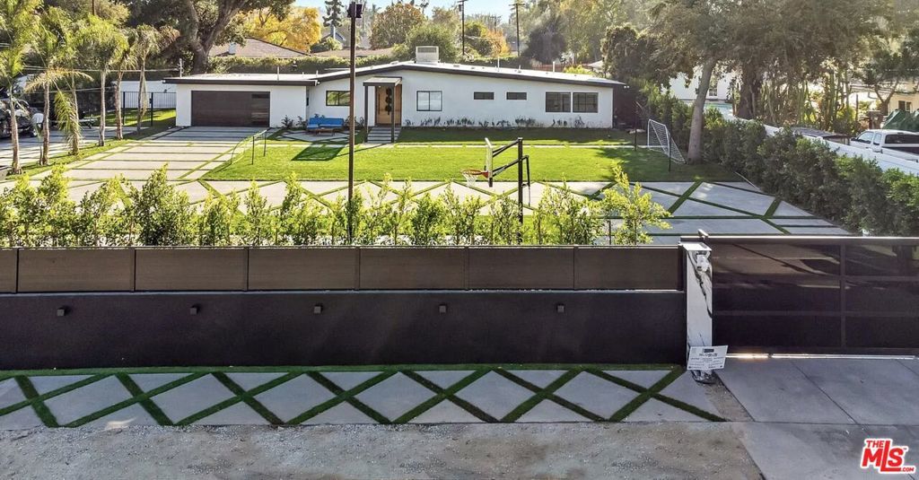 ** FULLY FURNISHED AND FULLY EQUIPPED ** Walnut Acres adjacent and set on an expansive 19,000 sq ft flat lot, this gated estate offers privacy, scale, and endless opportunity in one of Woodland Hills' most desirable pockets.Arrive through automatic gates to a grand circular driveway framed by mature trees and impressive frontage, offering substantial parking and a true sense of arrival. The property's layout and lot size make it ideal for elevated entertaining, luxury living, or permitted events and productions.Inside, the home features granite countertops, newer windows, integrated surround sound, smart home technology with security cameras and Nest system, and custom touches including a bold Los Angeles mural that adds character and edge. The expansive primary suite serves as a private retreat, complete with a spa-style double shower and an oversized walk-in closet.The backyard is a true resort-style escape. An oversized pool and jacuzzi with sun beds anchor the space, complemented by a full outdoor kitchen setup with two grills, refrigerator, sink, and outdoor heater designed for effortless indoor-outdoor living. A private basketball court, sprawling grounds, and generous open space create a setting that feels both luxurious and versatile.With its scale, privacy, and premier location, this property delivers the rare combination of lifestyle, flexibility, and future potential a standout opportunity in Woodland Hills.