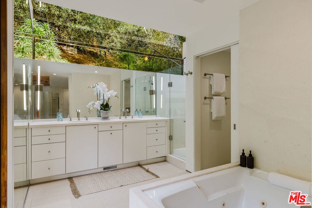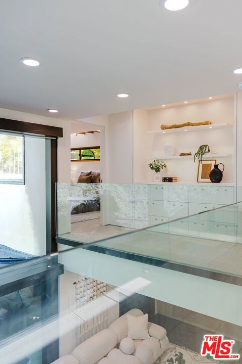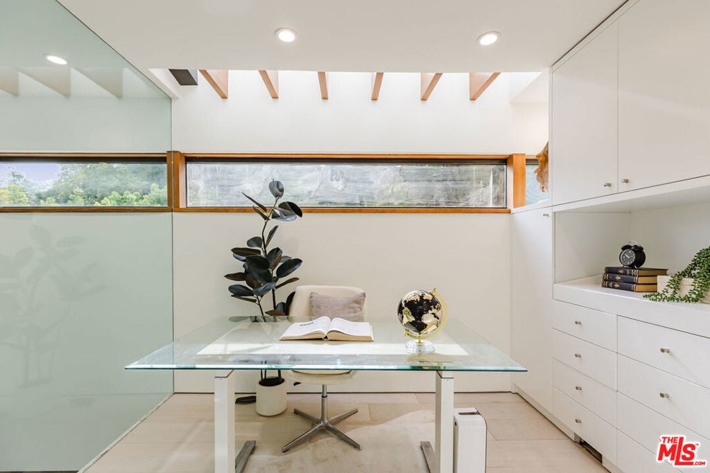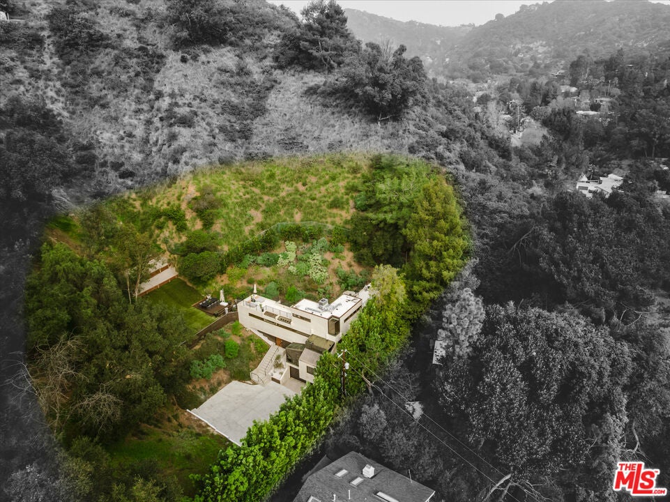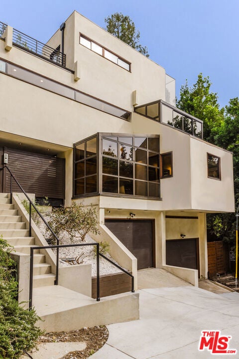 Tucked at the end of a quiet cul-de-sac in a secluded Bel Air canyon, this reimagined, architecturally designed modern residence offers exceptional privacy, while remaining just five minutes from Sunset Boulevard, a few minutes from the Beverly Hills Golden Triangle, and approximately ten minutes from UCLA. Enjoy effortless access to Hotel Bel-Air, Rodeo Drive, and the premier shopping and dining corridors of Beverly Hills and Bel Air, plus Westfield Century City, with quick access to the 405 Freeway for convenient connectivity across the Westside and beyond. Originally designed by local architect John Kilbane in the tradition of John Lautner, this one of a kind residence sits on approximately 1.5 acres and spans across approximately 3,000 square feet. The home features three bedrooms and three-and-a-half bathrooms across three levels. The residence has undergone a comprehensive exterior transformation and is finished in new beige stucco, thoughtfully reimagined with materials selected for the Bel Air hillside environment. Inside, walls of glass define the main living spaces, complemented by new and refinished wood flooring, updated electrical systems, and a comprehensive LED lighting upgrade. A Lutron-based lighting system with programmable scenes is paired with automated blinds and smart home security. The kitchen is outfitted with premium appliances, including a Sub-Zero bottom-freezer refrigerator with a new compressor, Gaggenau range, as well as Miele ovens and dishwasher. Situated between the living and dining rooms lies a premium dual-zone wine refrigerator. Living and dining areas extend into multiple sunrooms and outdoor terraces, with two exterior balconies enhancing indoor-outdoor living across levels. The primary suite offers a spa-style ensuite bathroom and a private balcony overlooking the canyon. A sculptural spiral staircase leads to the third level, a true retreat with its own bedroom, steam shower, and refreshed mini kitchen, well suited for a home office, studio, gym, or guest suite. Bathrooms have been refreshed with updated sinks, faucets, shower heads, exhaust fans and new grout throughout. The grounds are designed for enjoyment and ease of ownership, featuring expansive flat outdoor areas, multiple seating and entertaining zones with upgraded fencing. Above the main flat backyard space lies wooden steps leading up above to another flat grass area which allows for additional entertainment space, a dog run, walking trail, and even further possibilities for an additional structure. This vantage point from above allows for even greater mountain views and offers a world of possibilities while keeping total privacy. Conceived as a living landscape by UK arborist Josh Marcuson, the gardens feature curated native plantings, fruit trees, and a butterfly and bee garden with extensive mallow plantings selected to support Monarch butterflies creating a rare and meaningful nature connection. A professionally installed irrigation system supports water-efficient landscaping throughout the property, while outdoor lighting across the front, back and side yards and parking lot adds both ambiance and safety. Additional features include gated entry with smart access, a backup generator, two single-car garages, and six guest parking spaces. The offering includes four additional parcels, five total, providing long-term flexibility and value. The property's size and configuration offer flexibility for future exploration and potential building, subject to buyer due diligence and approvals.