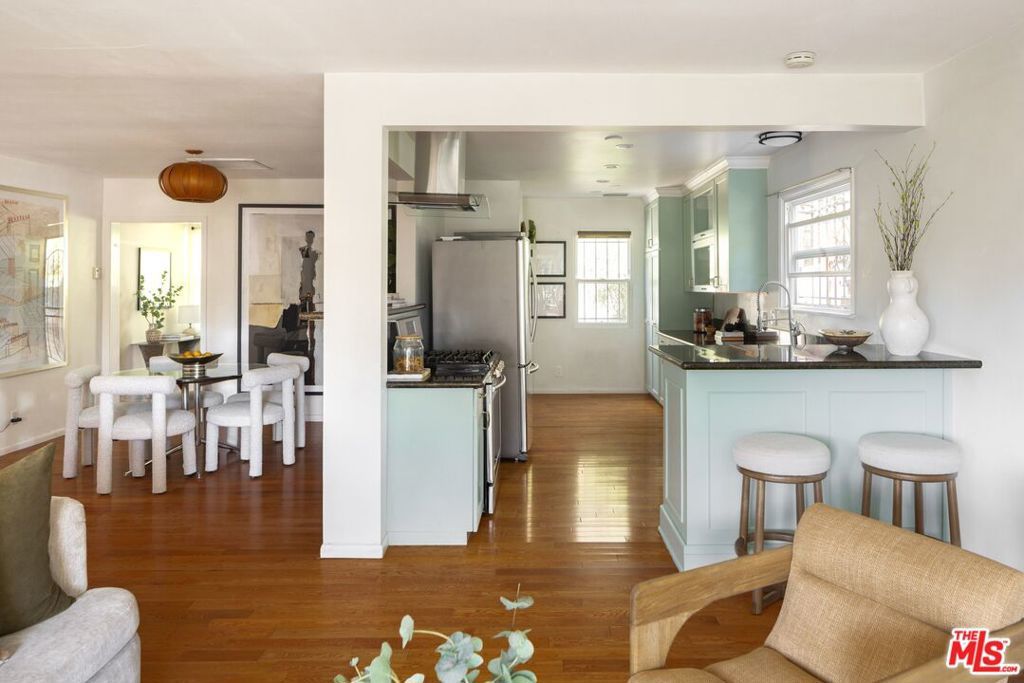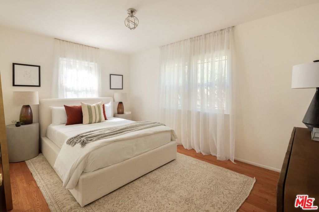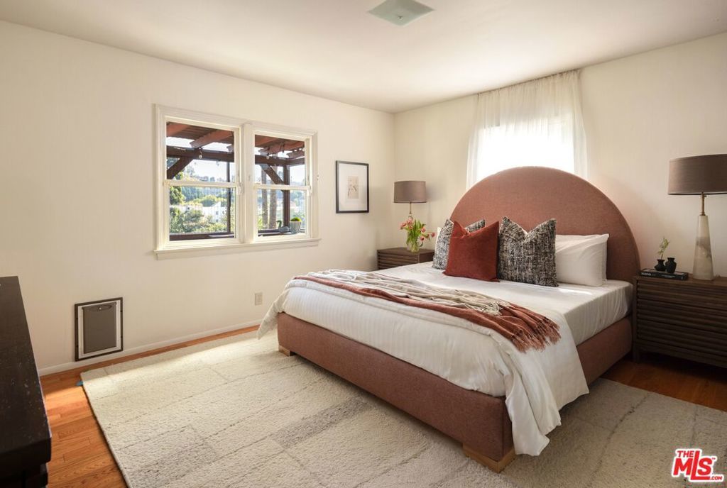 This adorable Silver Lake bungalow is sited in a premier location with easy access to the best restaurants and boutiques of the neighborhood. The property features two bedrooms and two bathrooms with the rare bonus of a four car side by side garage. The interior features hardwood floors, a beautifully updated kitchen and two lovely updated bathrooms as well. With a gated entry and an elevation above street level, the home is incredibly private with large windows and an expansive front porch overlooking a small neighborhood park. The backyard features a terraced hillside of native plants and steps up to a large trellised deck with beautiful views. Located near the historic Music Box Steps, this extra special home is quintessential Silver Lake living.