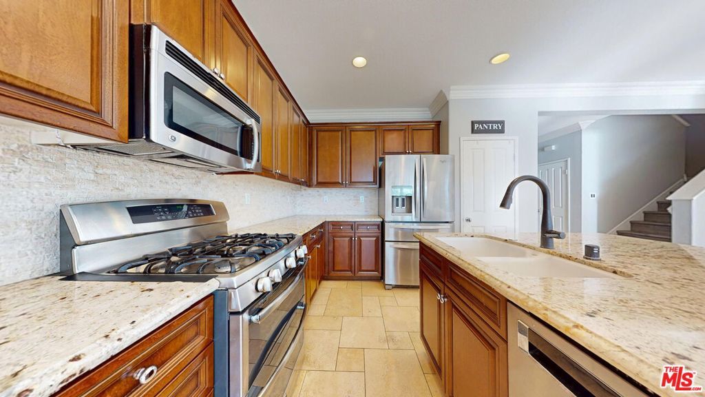 Welcome to your new home situated in a quiet neighborhood in Santa Clarita. This spacious home is conveniently located near Six Flags Magic Mountain, Santa Clarita Performing Arts Center, and the shopping and dining pleasures at Westfield Valencia Town Center. The home is situated near major freeways including the I 5 and SR 14 providing convenient commutes to Los Angeles and the surrounding areas. This 4 bedroom plus 3 bathroom home offers 2,308 square feet of living space and features an attached 2 car garage with Tesla charger, five TVs included with built in surround sound speakers, a downstairs bedroom, spacious bedrooms upstairs, and one flex room. The kitchen includes stainless steel appliances such as a refrigerator, stove, microwave, and dishwasher, along with a center island and granite countertops. The home features vinyl and tile flooring, an upgraded sound system and huge TV for optimal viewing in the formal living area, front and backyard space, a cozy outdoor fireplace, in unit washer and dryer, indoor storage space under the staircase, indoor shed in the garage, solar panels installed to help reduce electricity bills, and central air conditioning and central heat. Small pets under 25 pounds are allowed. Gardener service is included, and residents also have access to a community swimming pool. Rental terms include a $60 application fee per adult, a security deposit equal to one month rent on approved credit with certain exceptions for qualifying small property owners who may charge up to two months rent, a 12 month lease term, renters insurance required, pet rent of 75 to 125 dollars based on PetScreening rating, tenant to pay all utilities except gardener service, attached 2 car garage, and no smoking. Contact us to schedule a showing!