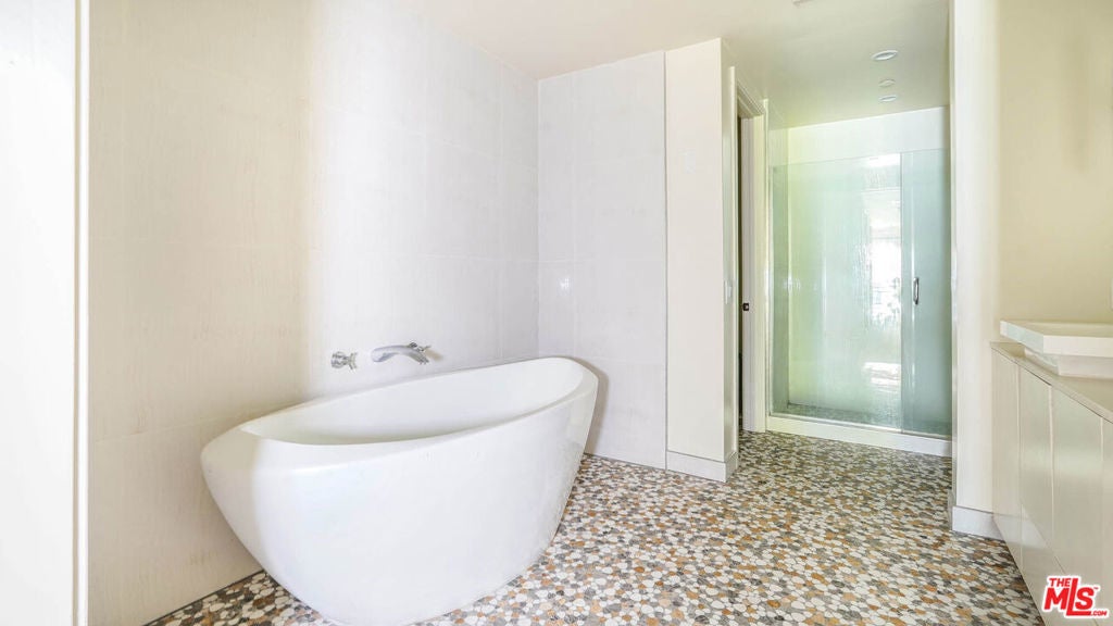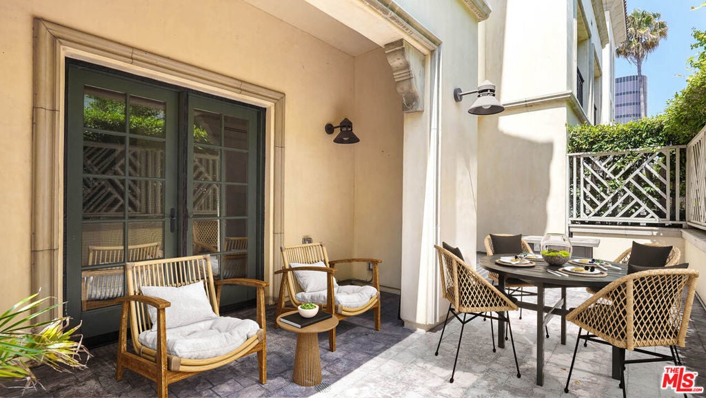 Set within the security of the highly coveted 'Villa Park Hamilton', and ideally located across from La Cienega Park, this beautifully appointed two-bedroom townhouse offers refined Beverly Hills living with exceptional indoor-outdoor flow. Built in 2011 and lovingly maintained, the residence features high ceilings, hardwood floors, and a spacious open-concept layout ideal for both everyday living and entertaining. The main level showcases a chef's kitchen with stainless steel appliances, quartz countertops, and designer cabinetry, flowing seamlessly into the open concept dining and living areas. Sliding doors open to a private patio perfect for al fresco dining or relaxed outdoor living. A convenient in-unit laundry room completes the lower level. Upstairs, both bedrooms provide privacy and comfort. The expansive primary suite features multiple walk-in closets and a spa-inspired bathroom with a soaking tub, while the additional bedrooms are generously sized and versatile. Additional highlights include central heating and air conditioning, a community fitness center, and two assigned side by side parking spaces in a secured subterranean garage. Located moments from Beverly Hills' premier dining, shopping, entertainment, and top-rated schools, this home offers an exceptional opportunity in one of the city's most desirable settings.