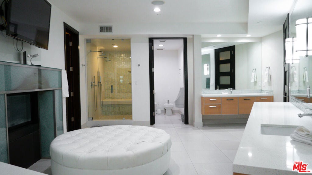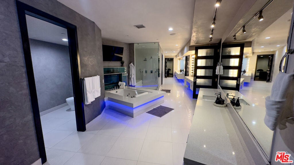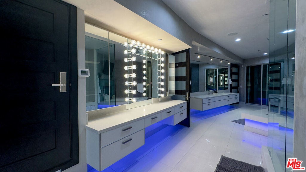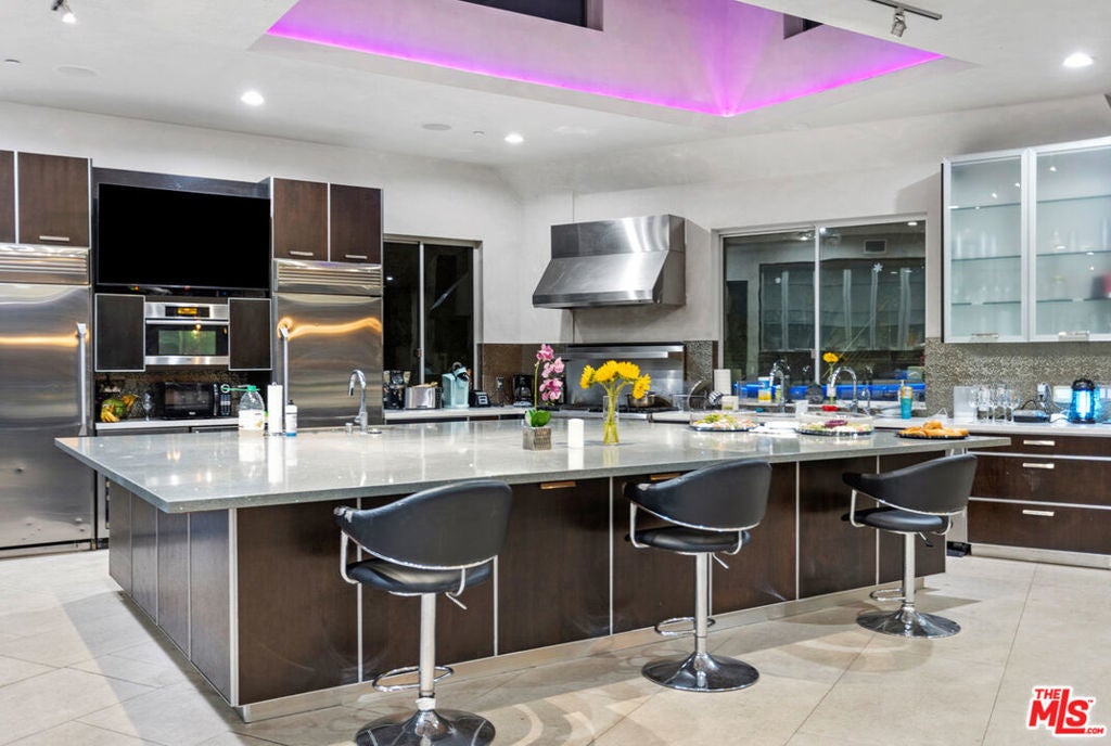Available April 1st! Impressive modern 16,000 sqft all glass mega mansion with simply the finest in quality and design with stunning head-on city & ocean views! This furnished masterpiece features 10 bedrooms+2 offices, 16 baths, 2 master suites each with 2 expansive closets, movie theater with stadium seating + 160 inch screen, 80 ft Nightclub with hanging DJ booth + sports bar, LED colored lighting PLUS 3bd/3ba guest house with recording studio! This incredible estate also offers fully equipped gym facing the views, wine room, pool table, ping pong, 3 sports bars, floating glass staircase & high speed elevator. Huge outdoor deck overlooking the views is perfect for entertaining with an 80ft swimmers pool & spa with Hollywood sign running the entire length of the pool and waterfalls with fire pits. A truly magnetic modern masterpiece with 6 car garage parking at the end of a cul-de-sac steps from multiple Hollywood hiking trails built to Impress!