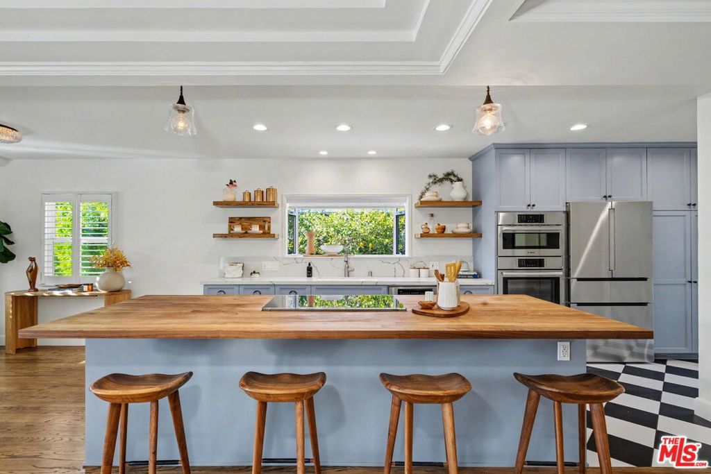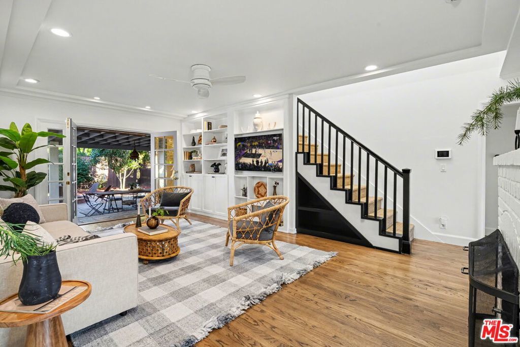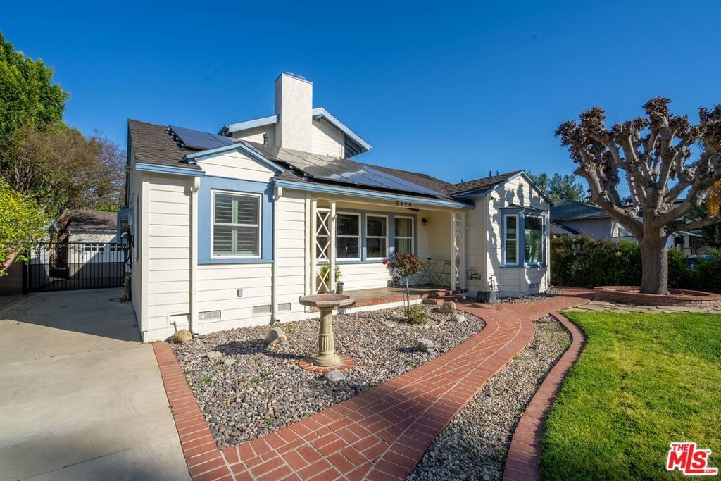 New price, don't miss this! Expanded Traditional Valley Village home set on an expansive 8,100 sq ft lot, thoughtfully renovated to combine timeless character with modern conveniences and a highly flexible floor plan. This beautifully designed 3-bedroom, 3.5-bath residence blends relaxed California living with organic warmth and thoughtful functionality. The welcoming formal entry introduces the home's warm and inviting interiors, leading to a beautifully renovated chef's kitchen designed for both practicality and entertaining. Appointments include a maple butcher block island with counter seating, quartz countertops, Bosch appliances, abundant cabinetry, and a convenient adjacent laundry and storage room. The dining room, highlighted by an elegant tray ceiling, shares a striking dual-sided fireplace with the comfortable den, which includes custom built-ins and a charming brick fireplace. Lovely French doors connect seamlessly to the oversized backyard. Maple-toned hardwood floors, recessed lighting, and thoughtful millwork enhance the main living spaces, creating a cohesive yet relaxed atmosphere. The outdoor setting is rich with mature fruit trees and features a covered patio ideal for al fresco dining, exceptional privacy, and abundant room for a future pool - presenting endless entertaining possibilities. The home's guest bedroom wing is generously sized and thoughtfully arranged for privacy, with two bedrooms, one offering an en-suite full bath. Upstairs, the primary suite serves as a peaceful retreat featuring vaulted ceilings, generous closet space, an updated bath with a custom vanity and steam shower, and an inviting balcony overlooking treetop views. Adding exceptional versatility, the detached two-car garage has been fully finished with mini-split HVAC, recessed lighting, and custom barn doors, making it ideal as a music studio, game lounge, creative workspace, or potential ADU. Additional highlights include owned solar panels, a backup generator, EV charger, central HVAC, Nest thermostat, and security system. Enjoy convenient proximity to the Valley Village/Laurel Canyon Metro station, North Hollywood High, nearby parks, easy freeway access, and close reach to the area's vibrant shops, dining, and entertainment. This Valley Village residence presents a rare opportunity to enjoy classic architecture, modern comfort, and adaptable living spaces in a desirable neighborhood setting.