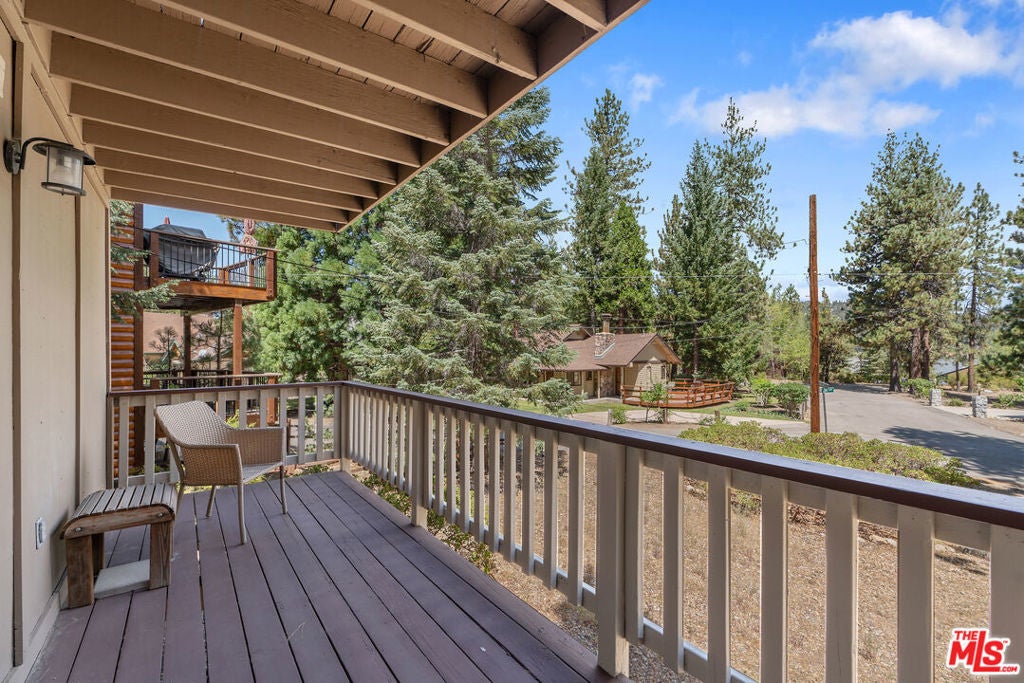 Just moments from the lake, this is the Big Bear cabin you've been waiting for, fully updated, stylishly, and ready to enjoy. Tucked away on a quiet, secluded street with a rare street-to-street lot offering parking on both ends, this modern mountain retreat blends comfort, charm, and convenience. Step inside to a warm and inviting interior, beautifully remodeled with high ceilings, tongue-and-groove accents, and a stunning rock fireplace that anchors the spacious open-concept living area. Large custom wood windows flood the space with natural sunlight and frame tranquil views of sugar pines, blue skies, and even a peek-a-boo lake view from the upper deck. The layout is ideal, with two nicely sized bedrooms and a full bath downstairs, plus a bright and airy upper level featuring a half bath, upgraded kitchen, and plenty of room for family and friends to gather. Outdoors, three decks invite you to relax, entertain, and soak up the mountain air, whether under the sun or beneath starry skies. The property also offers ample space to park a large RV, boat, or trailer in the back, making it as practical as it is charming. Great for a high-end rental property, Airbnb-style investment, or simply your own private getaway, this cabin is equally perfect as a full-time retreat. Cozy, spacious, and move-in ready, your Big Bear escape awaits. Don't miss this rare opportunity. schedule your private showing today!