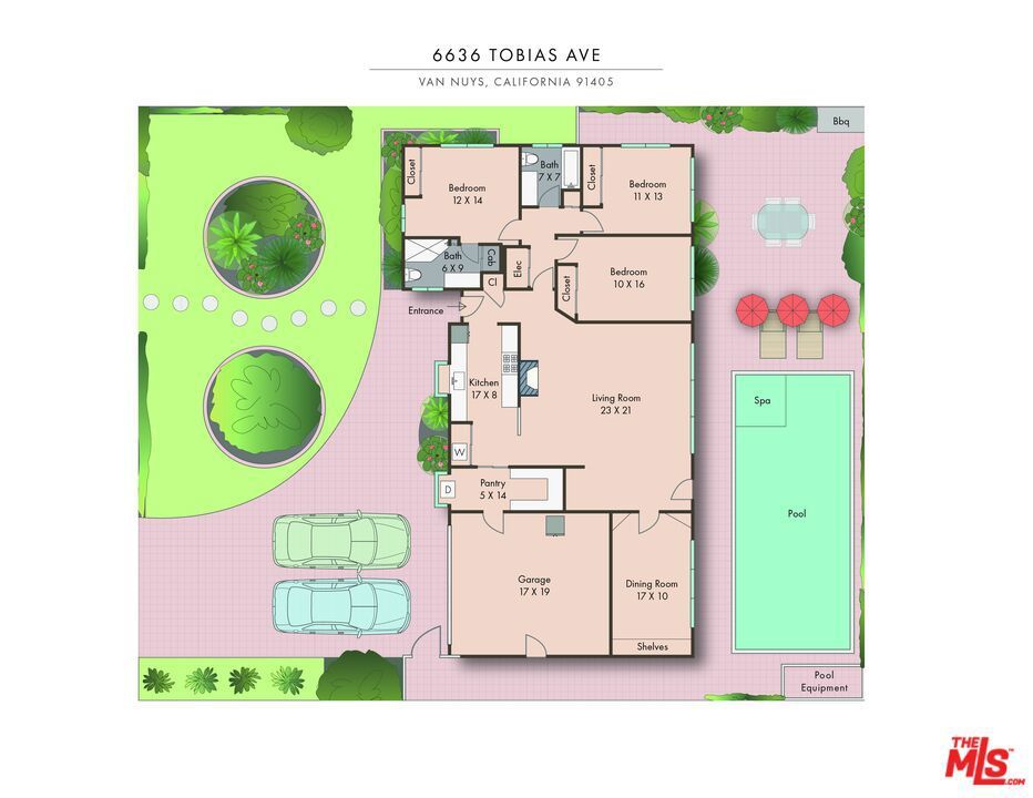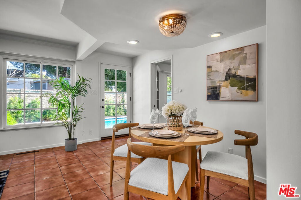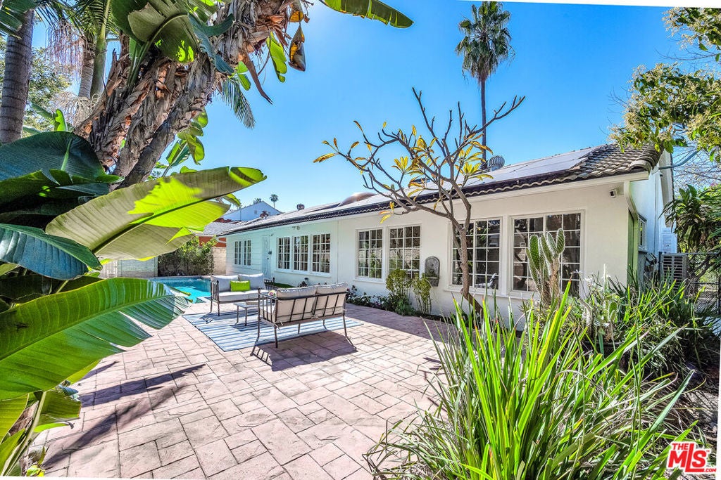 This private and secure compound features a beautifully maintained, freshly painted, bright, warm, and stylish 3-bed, 2-bath home with a den that can serve as a fourth bedroom or a dining room, just minutes from public transit, freeways, schools, shopping, dining, and entertainment. The area is also seeing redevelopment, offering future upside potential. The lushly landscaped, gated grounds feature an entertainer's yard with a pool and spa, along with expansive open space perfect for kids to safely run around, host large gatherings, or simply enjoy life. Features include newer windows, a 2-year-old (owner-owned) solar system, updated air conditioning with a NEST thermostat, tankless water heater, custom lighting, and a remodeled primary ensuite bathroom. The finished 2-car garage offers a separate entrance, its own A/C system, abundant storage, and a Tesla charger. This versatile space could serve as a home office, bonus room, or possibly be converted into an ADU. This home is truly a rare find!