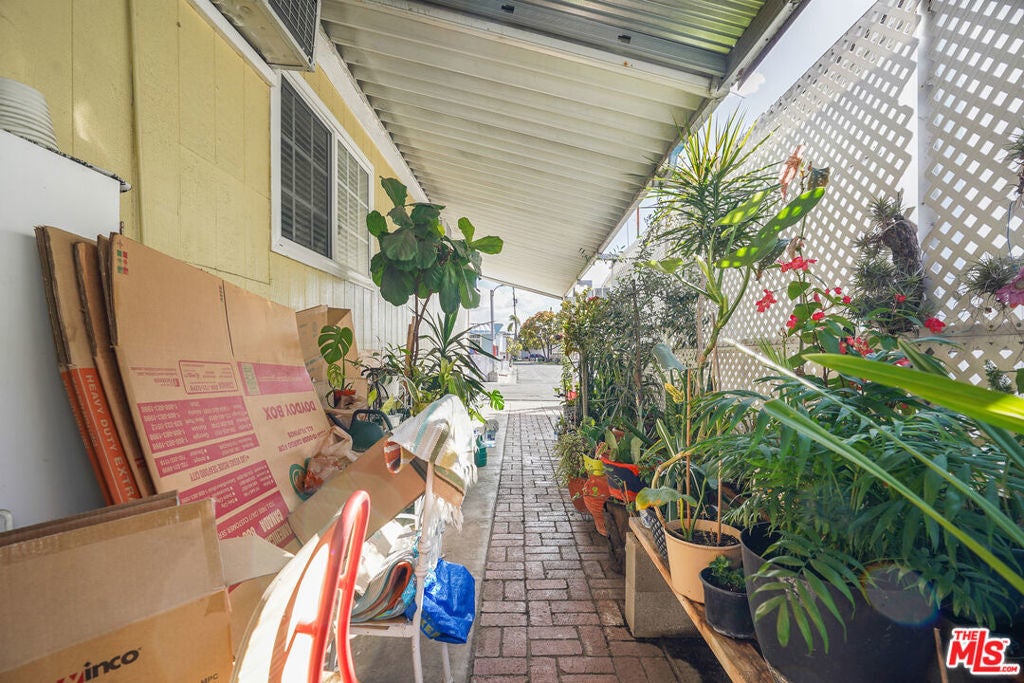 Unit 36 offers an opportunity to join the Bellwood Mobile Home Park, a quiet 55+ community, at an exceptional value. This home features an open floor plan with vaulted ceilings and wood laminate flooring. The remodeled kitchen is spacious, with a large island that serves as a functional dining area. Both bedrooms are equipped with in-wall air conditioning units, while the common area includes a built-in swamp cooler for additional comfort. A dedicated laundry room provides added convenience. Outside, covered parking accommodates two vehicles and extends to a rear space suitable for a garden or additional storage. The community amenities include a lounge and game room, an outdoor patio for entertaining, and an extra laundry facility if needed. Bellwood Mobile Home Park is ideally located near grocery stores, restaurants, and essential services, with easy access to the 105, 605, and 91 freeways.
