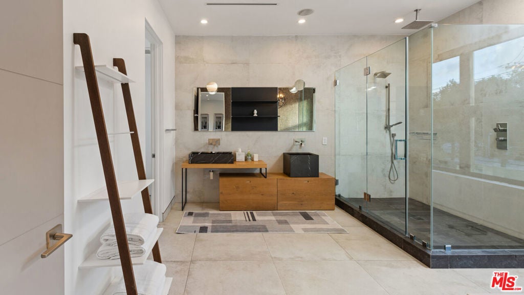 Fully furnished & modern WEHO gated home with rooftop deck near Melrose. 4 Bedrooms & 6 Baths!! Master bedroom, plus a junior master suite + 2 guest bedrooms all with their own en-suite baths, powder room & backyard bath. High ceilings, balconies, patios, floating staircases, sliding pocket glass doors and a rooftop deck. Open floor plan with white Italian porcelain tiles on the main floor with walnut hardwood floors on the second level. Pool, spa, cabana & fireplace. One bedroom downstairs with three bedrooms upstairs including a large junior master suite with it's own balcony. Large and spacious master bedroom with a great walk-in closet and an elegant master bath. 2 car garage + 2 car gated driveway. Laundry area. Pre-wired for automation & security. EMAIL FOR FASTEST RESPONSE!!